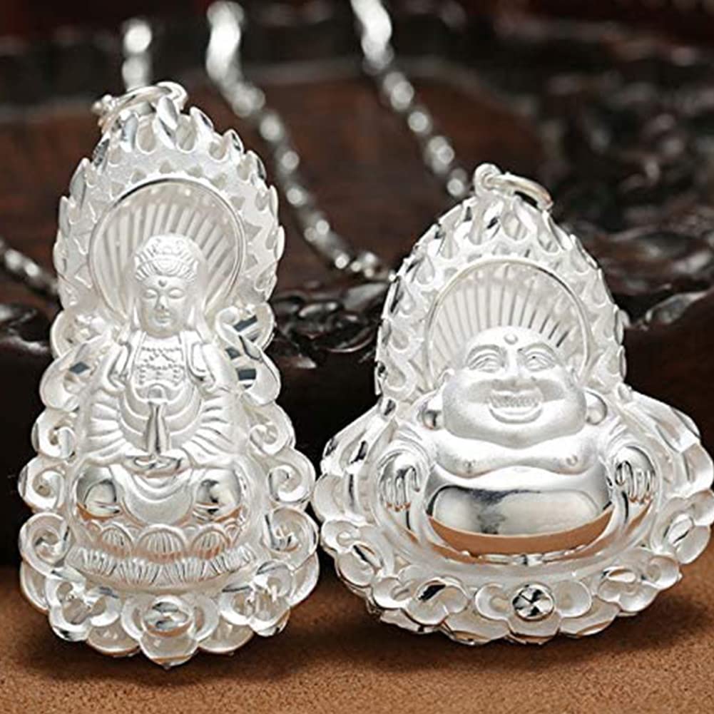 Rockyu ペンダントトップ レディース メンズ S999純銀 仏像 観音菩薩 弥勒菩薩 両面彫り 開運 お守り