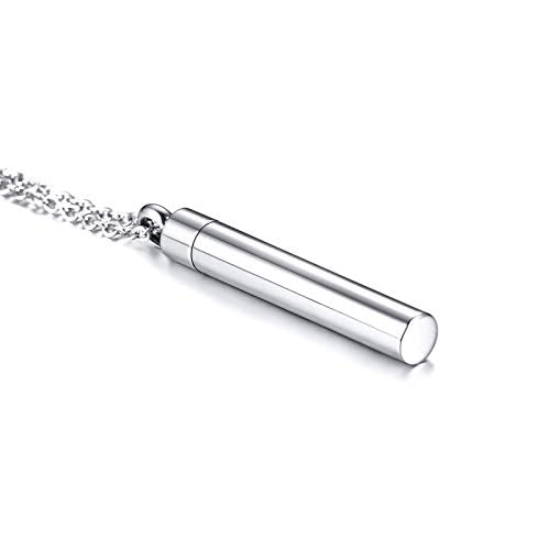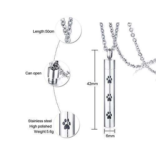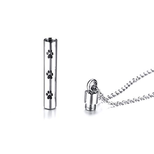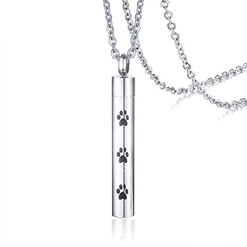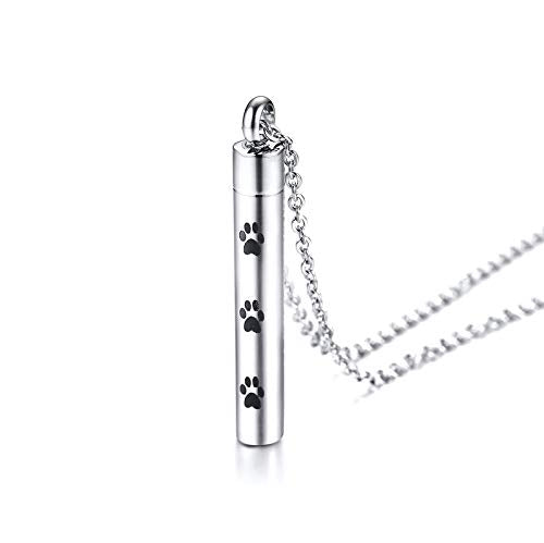 Rockyu メモリアルネックレス ペット 足あと刻印 円柱型 遺骨ペンダント ステンレス製 シルバー 50cmチェーン付き
