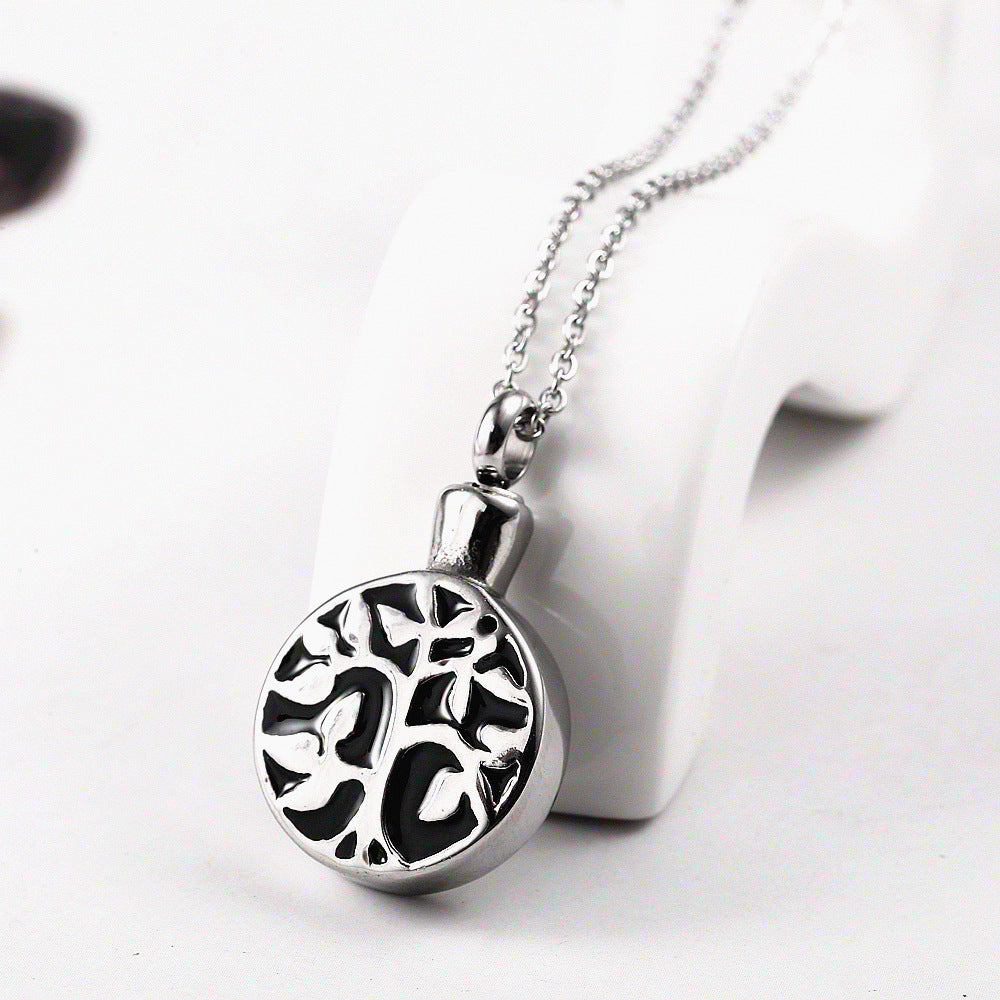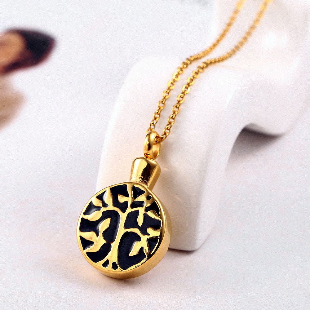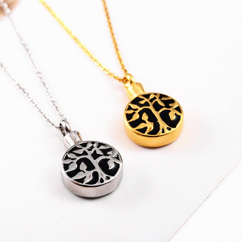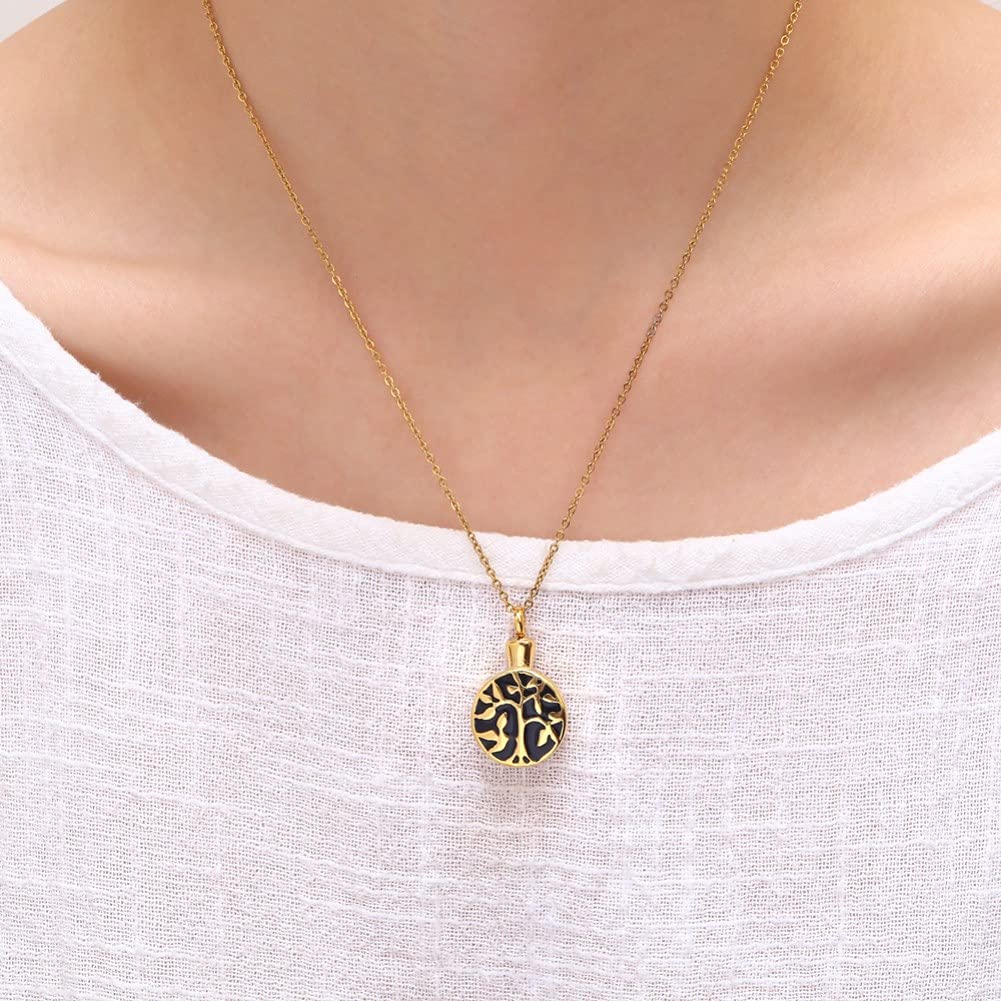 Rockyu メモリアルネックレス レディース 生命の樹デザイン 遺骨入れペンダント チタン製 ゴールド仕上げ