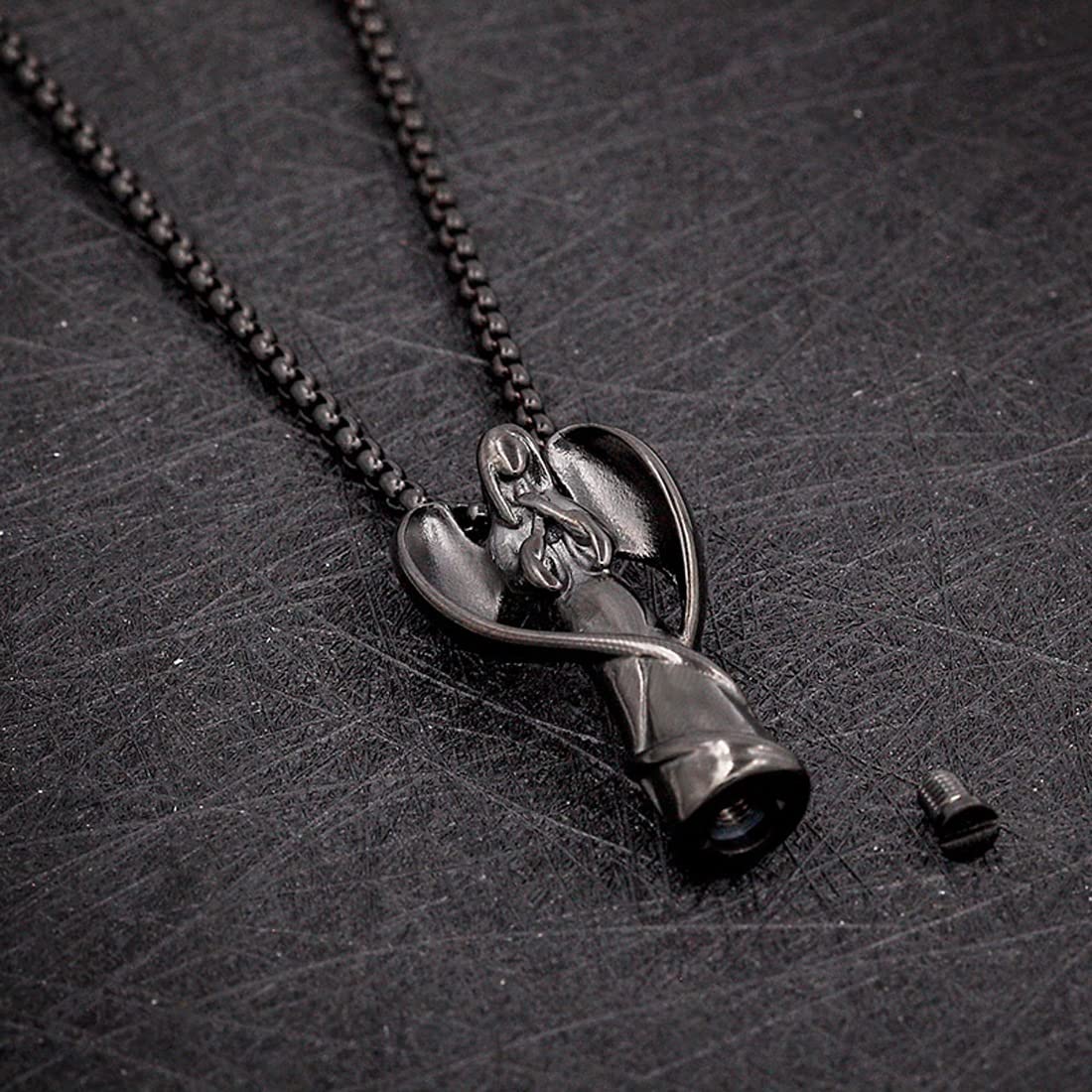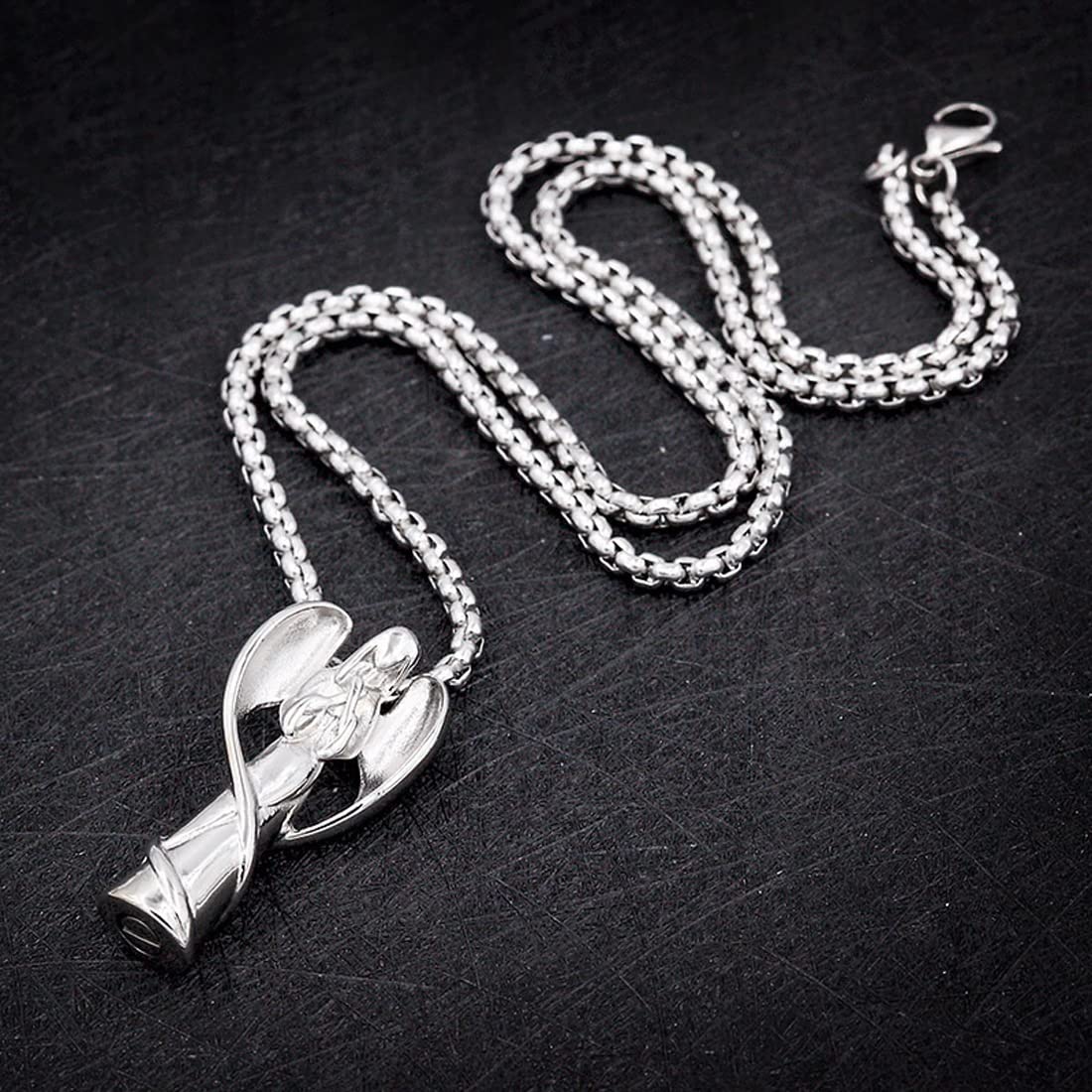 Rockyu メモリアルネックレス エンジェルデザイン レディース メンズ シルバー 羽根付き 天使ペンダント 遺骨入れ
