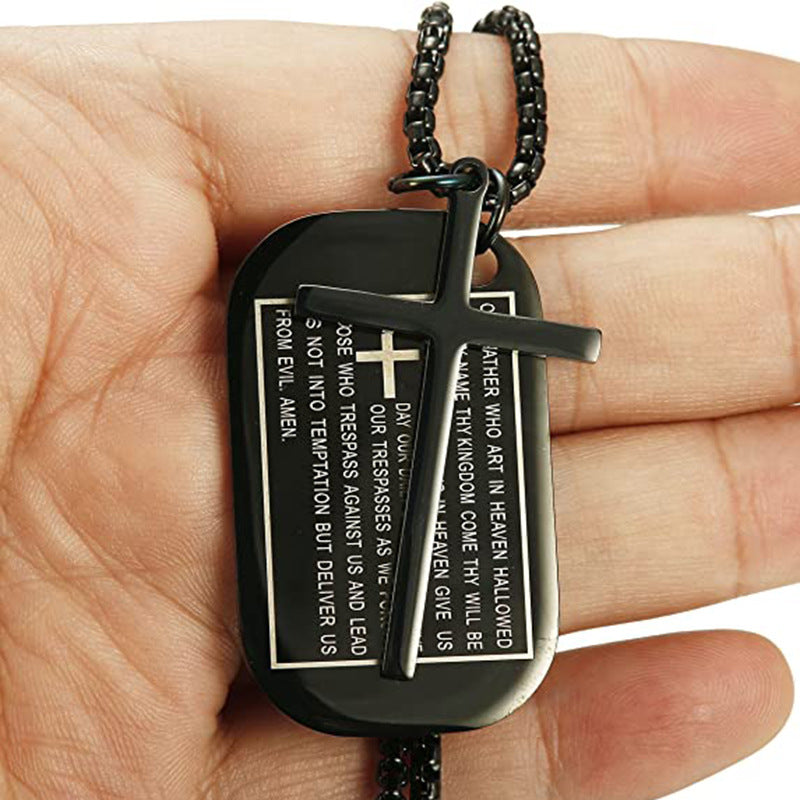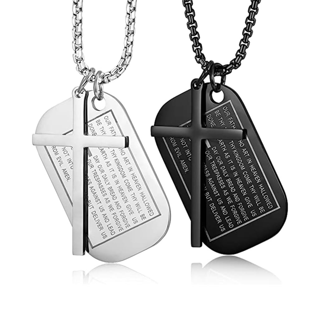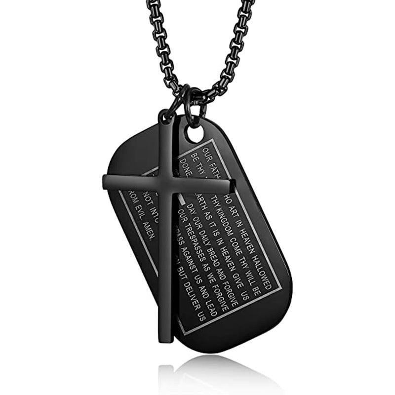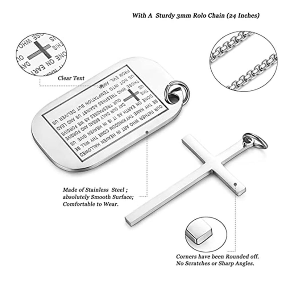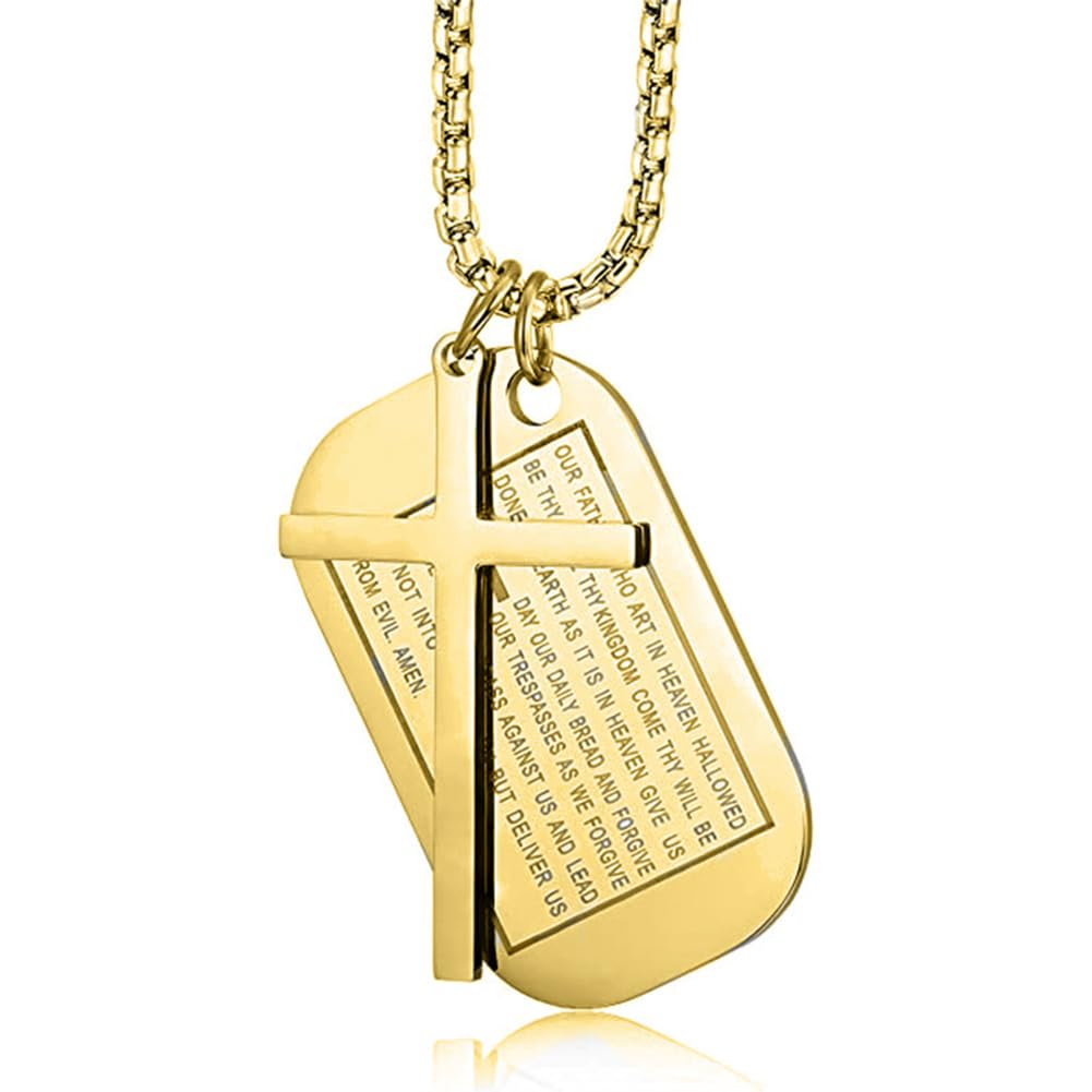 Rockyu メンズネックレス クロス十字架&聖書モチーフ ドッグタグペンダント ステンレス製 ゴールド ブラック シルバー お守り アクセサリー
