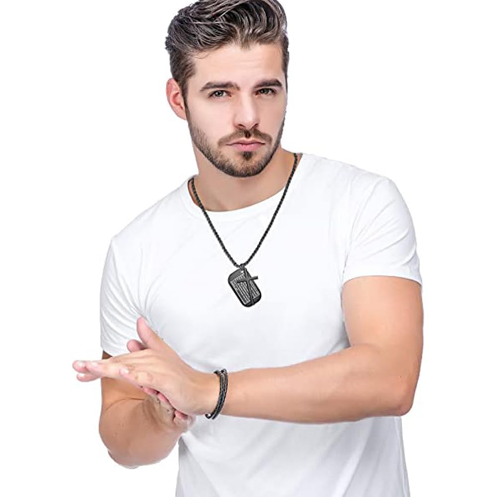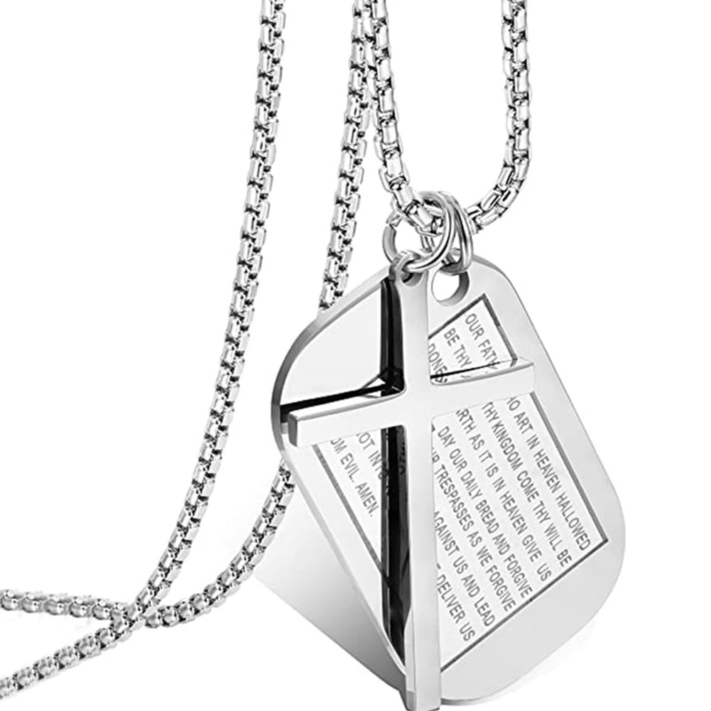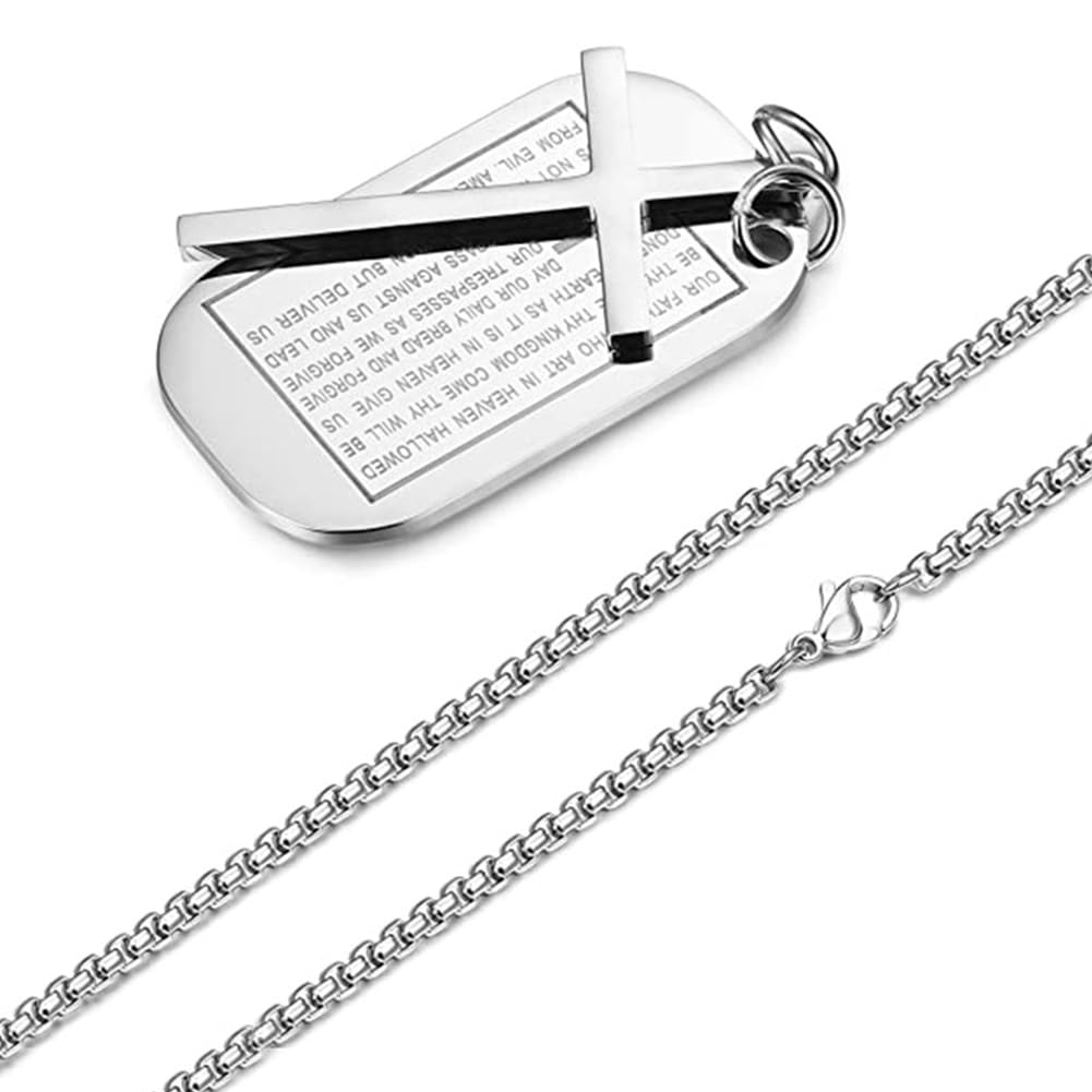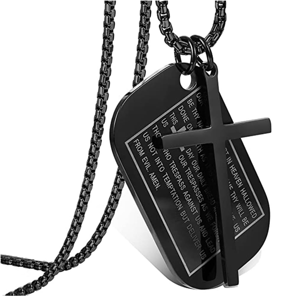 Rockyu メンズネックレス クロス十字架&聖書モチーフ ドッグタグペンダント ステンレス製 ゴールド ブラック シルバー お守り アクセサリー