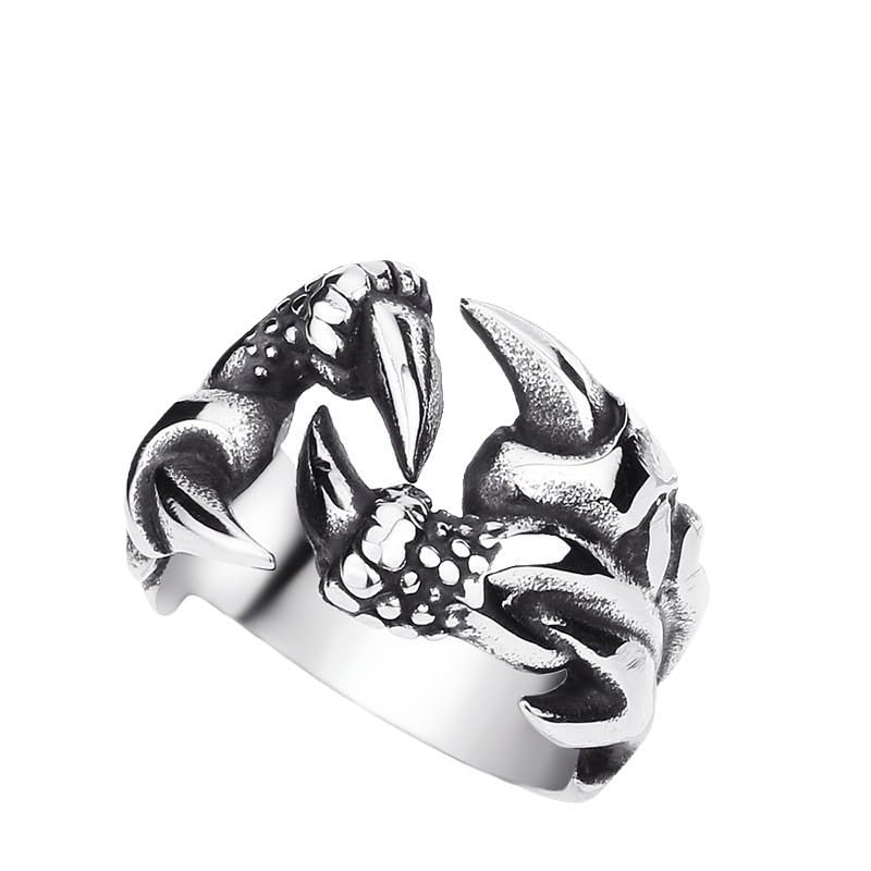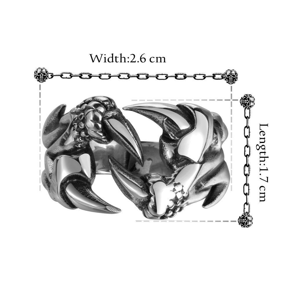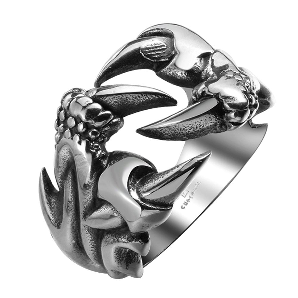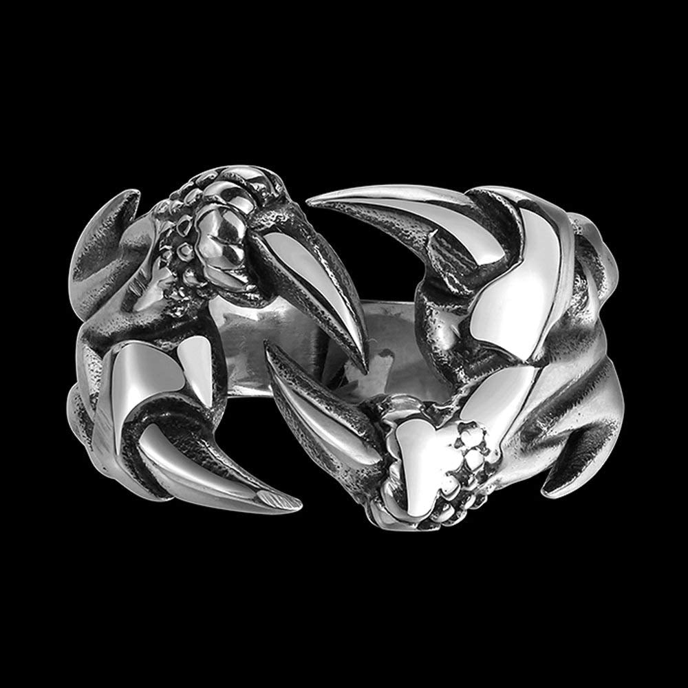 Rockyu メンズリング ステンレス 龍爪デザイン クラブ型 立体彫刻 シルバー レトロアンティーク風アクセサリー
