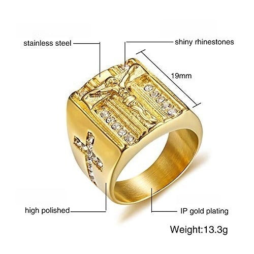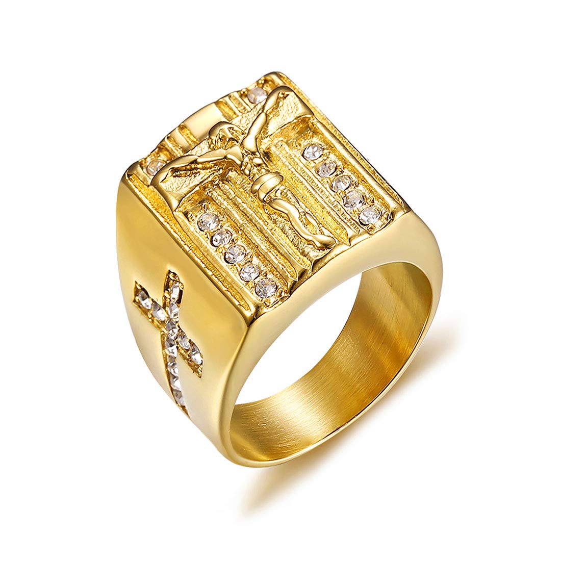 Rockyu メンズ印台リング ステンレス 幅広デザイン IPゴールド 高輝度ラインストーン 金属アレルギー対応
