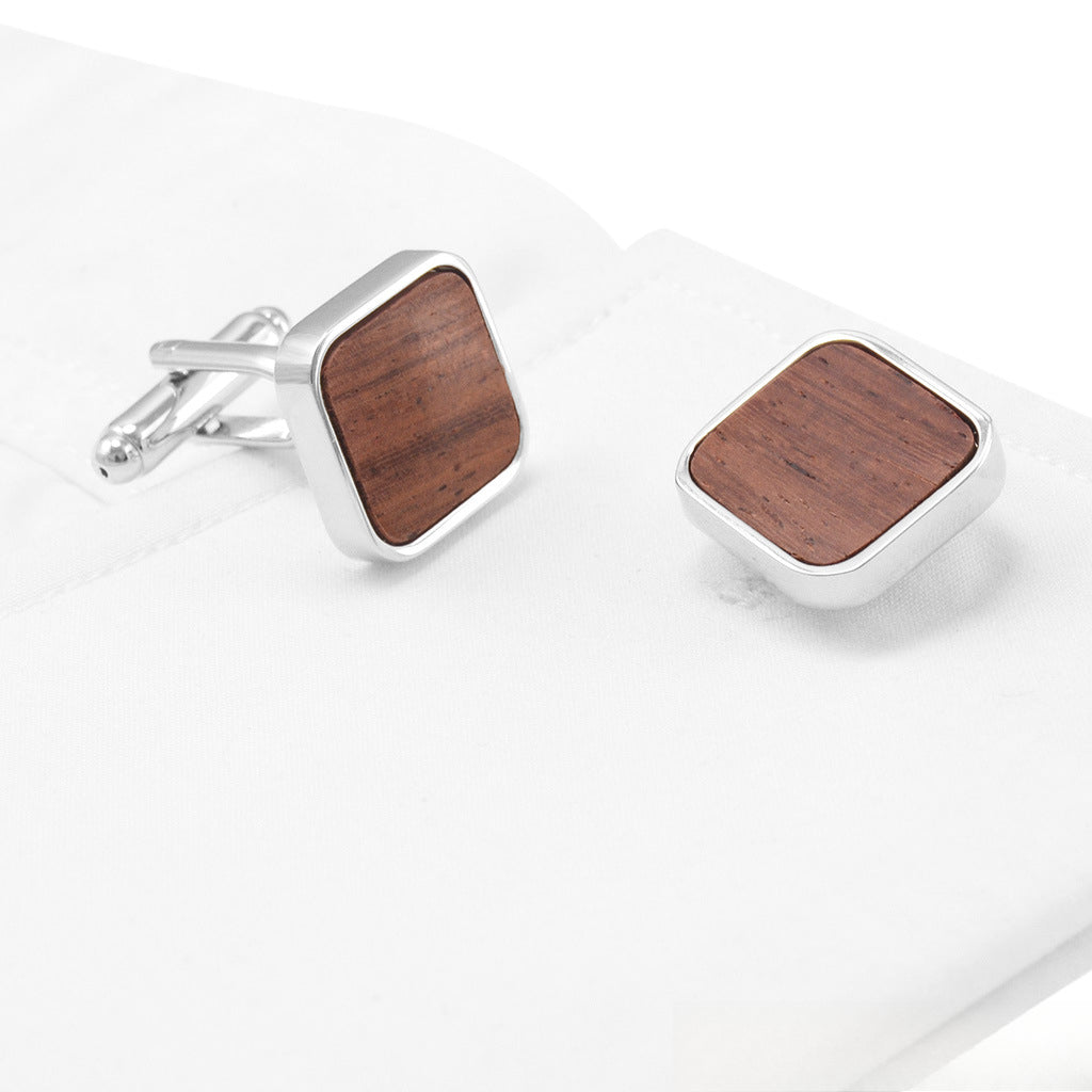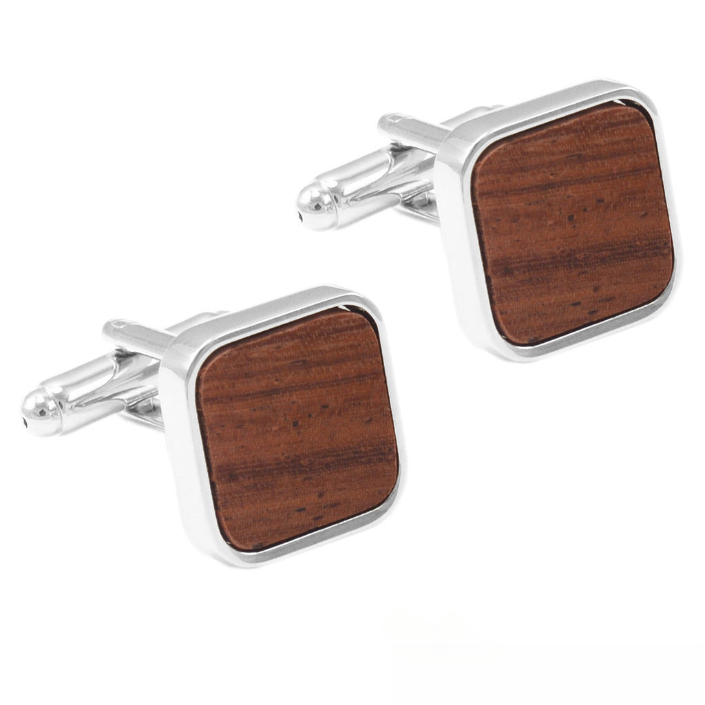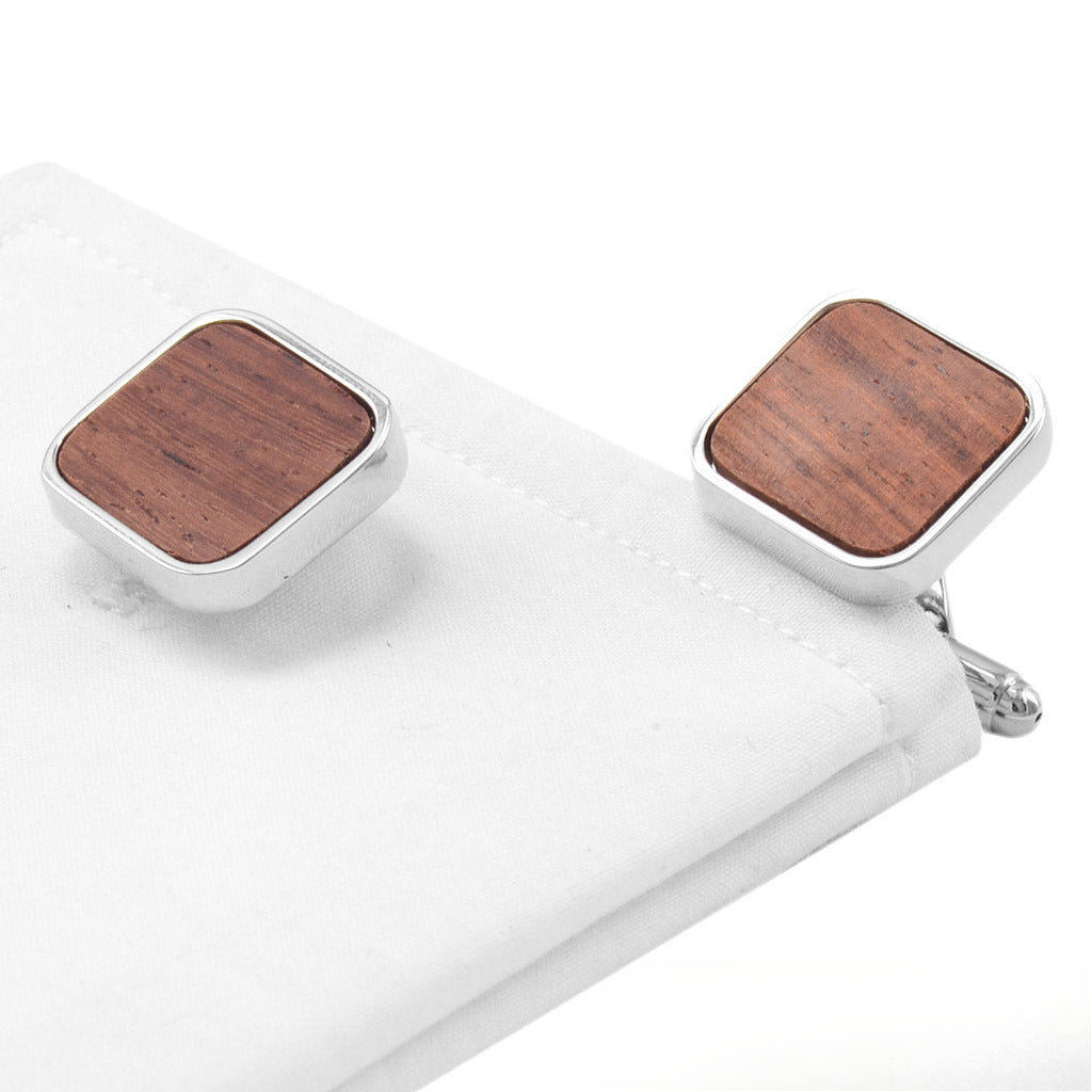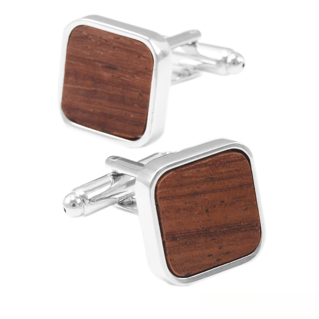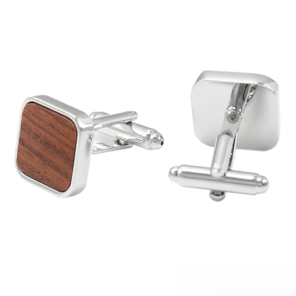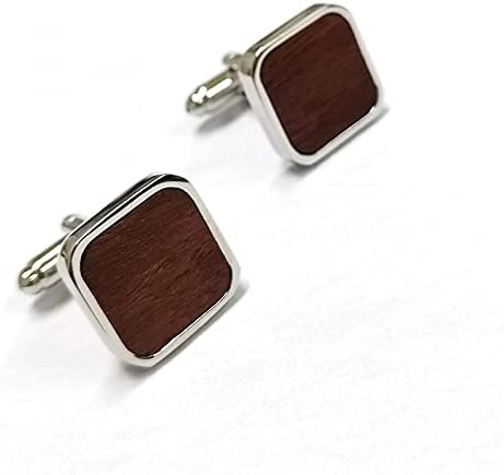 Rockyu カフスボタン メンズ ウッド調 ステンレス製 スクエア型 ビジネス フォーマル用