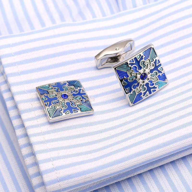 Rockyuから、星空のような幻想を袖元に宿すカフスボタンが登場。繊細な和柄と鮮やかなブルーのコントラストが、まるで夜空に瞬く星のよう。スクエア型のフォルムが知的な印象を与え、ビジネスでもプライベートでも視線を奪う存在感を放ちます。