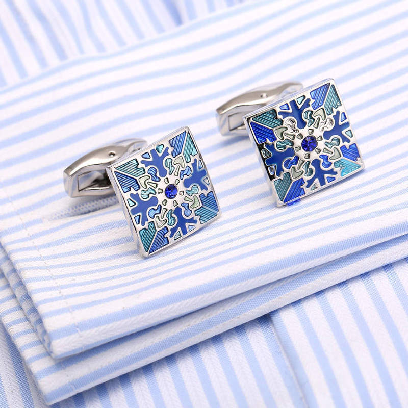 Rockyu カフスボタン メンズ 星模様 ブルー シルバー スクエア 和柄 ステンレス製