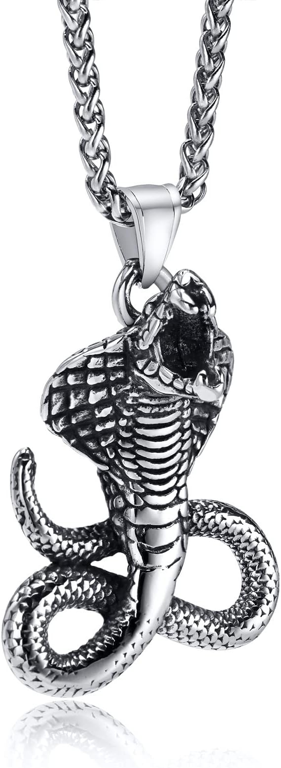 Rockyu メンズ コブラ ステンレス ネックレス アンティーク風