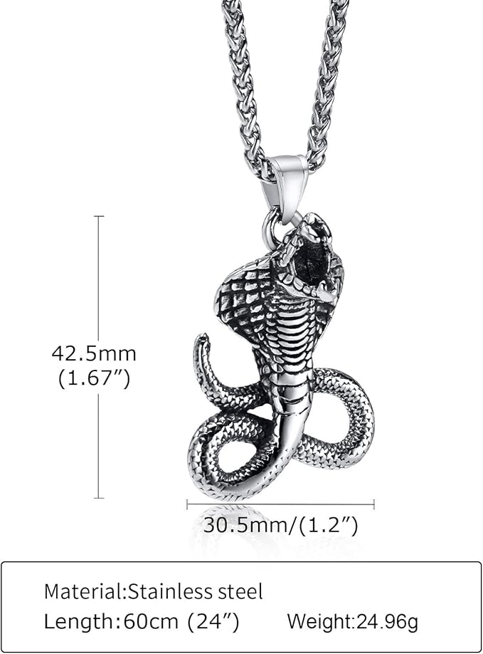 Rockyu メンズ コブラ ステンレス ネックレス アンティーク風PN-1638