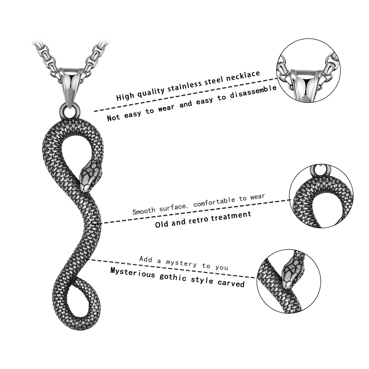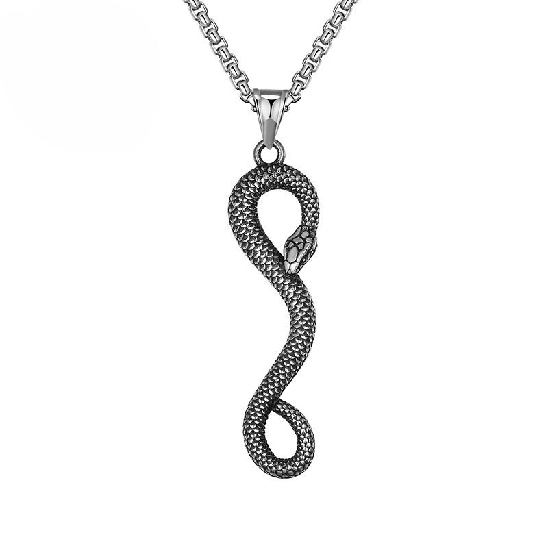 Rockyu メンズ スネーク ネックレス ステンレス製 アンティーク調