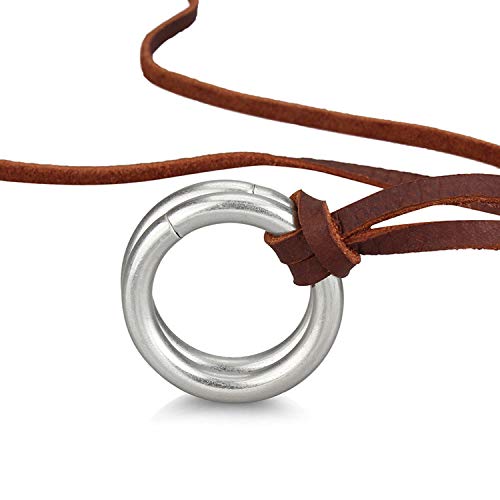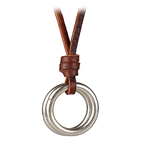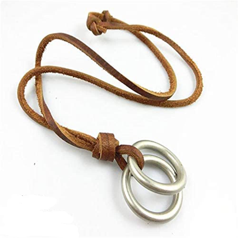 Rockyu メンズ レザーネックレス リングペンダント ロング 紐タイプ 60cm 牛革製