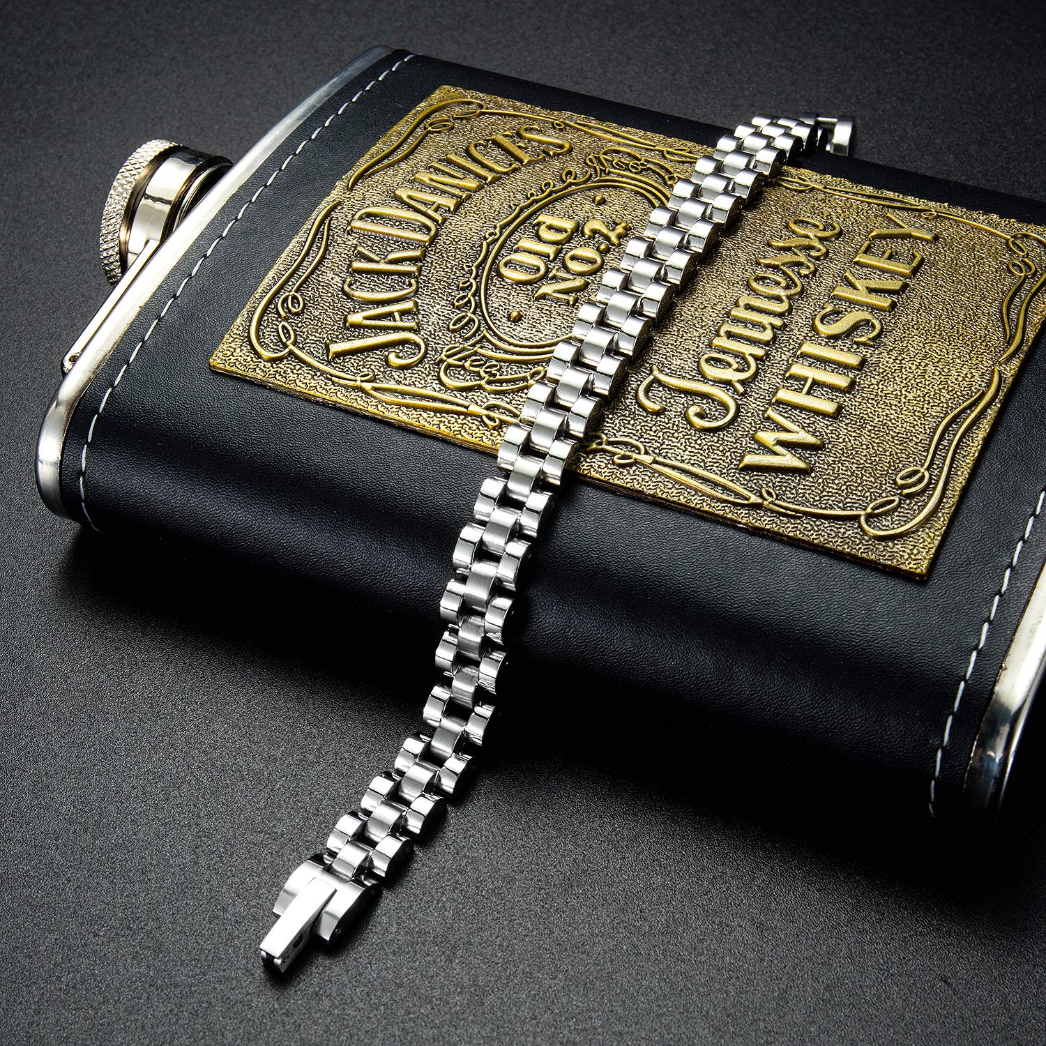 Rockyu メンズ ブレスレット チタン製 時計バンド風 12mm 幅広デザイン 21cm