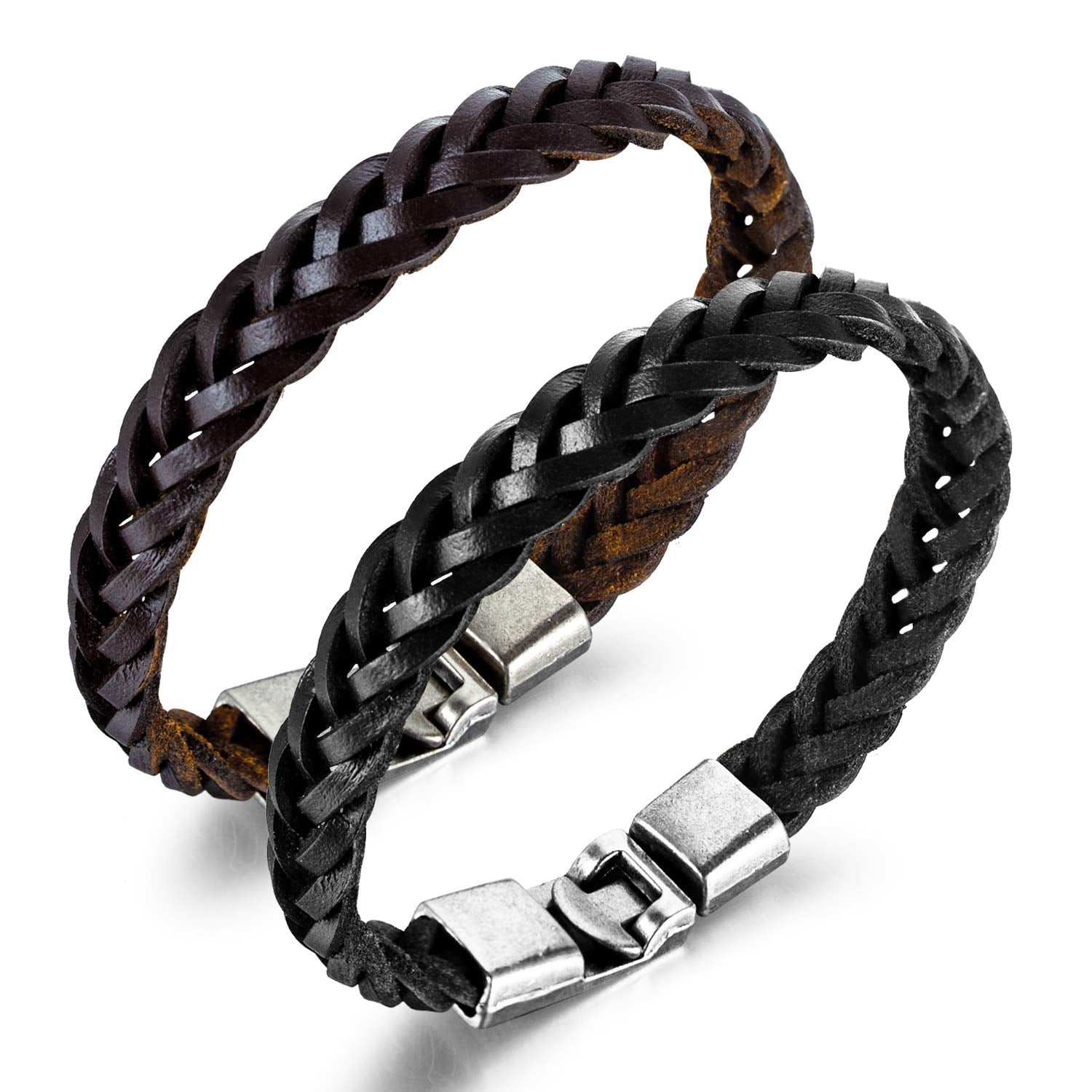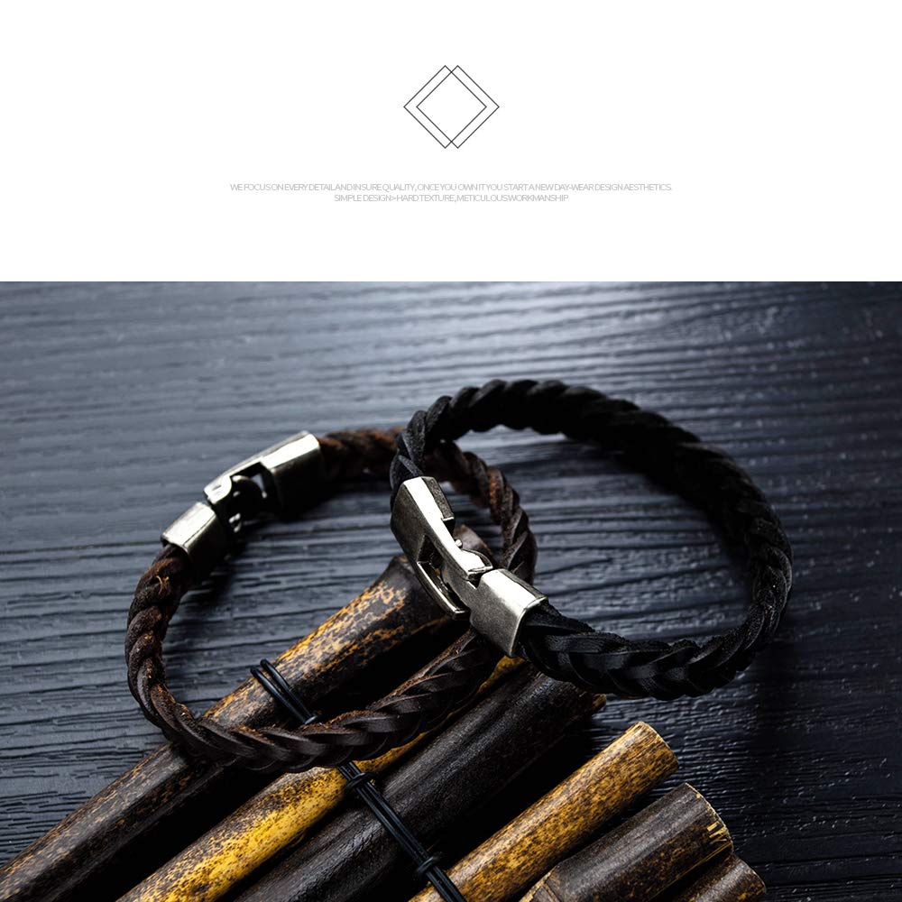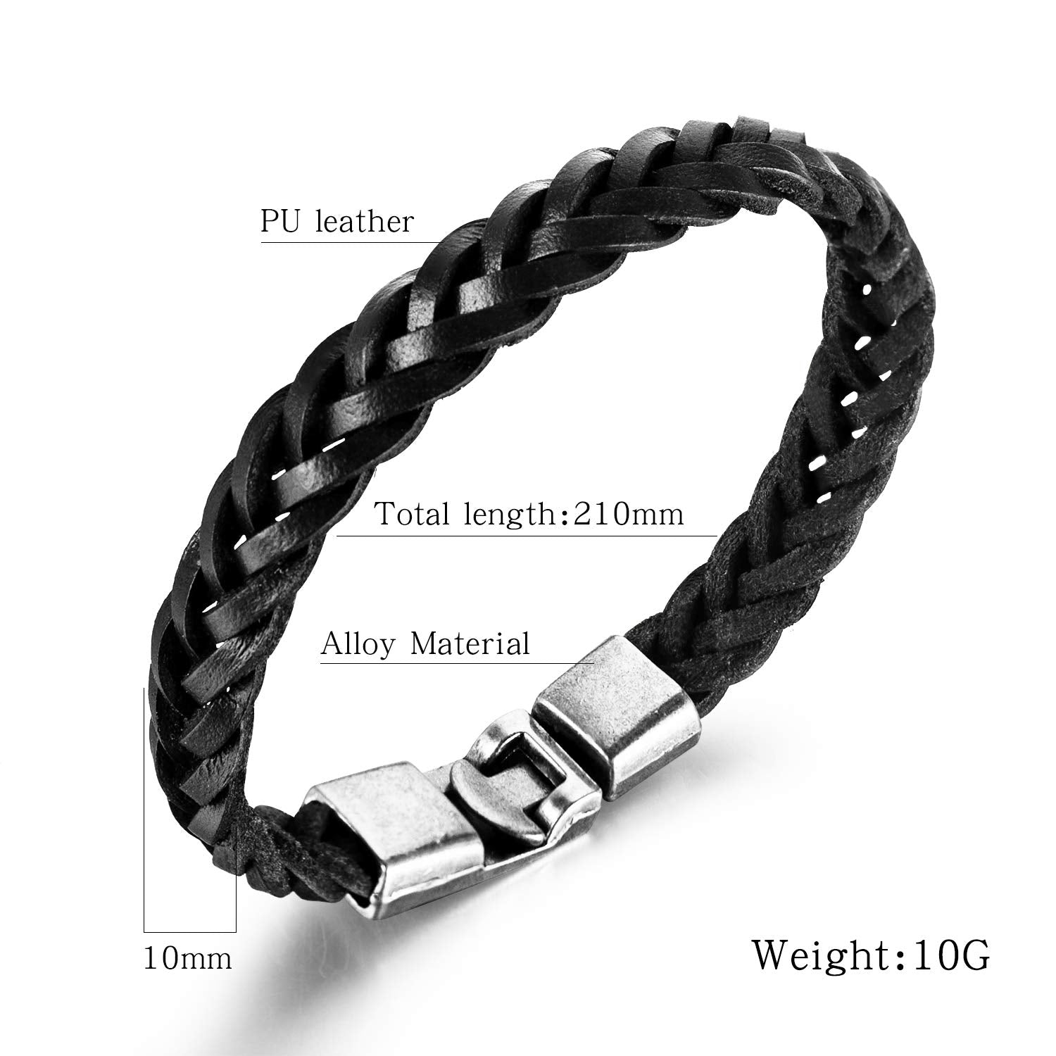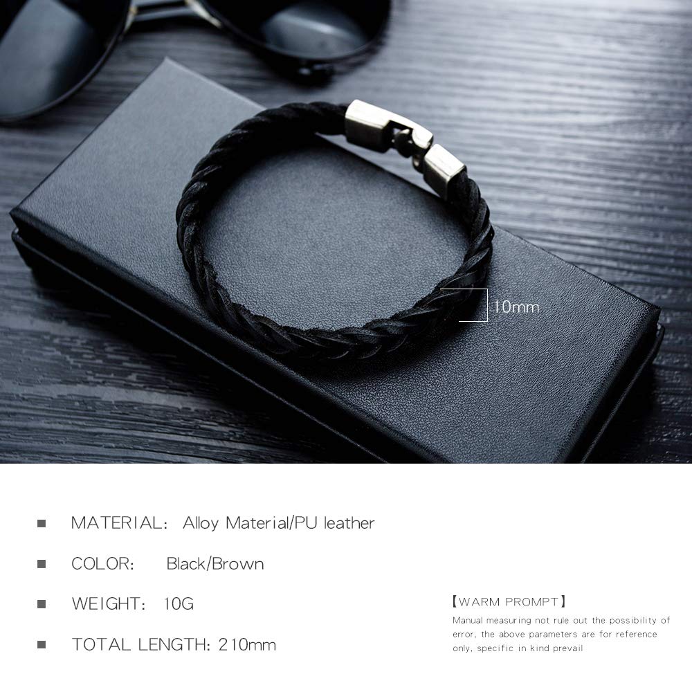 Rockyu メンズ ブレスレット PUレザー 編み込みデザイン シンプル バングル ブラック
