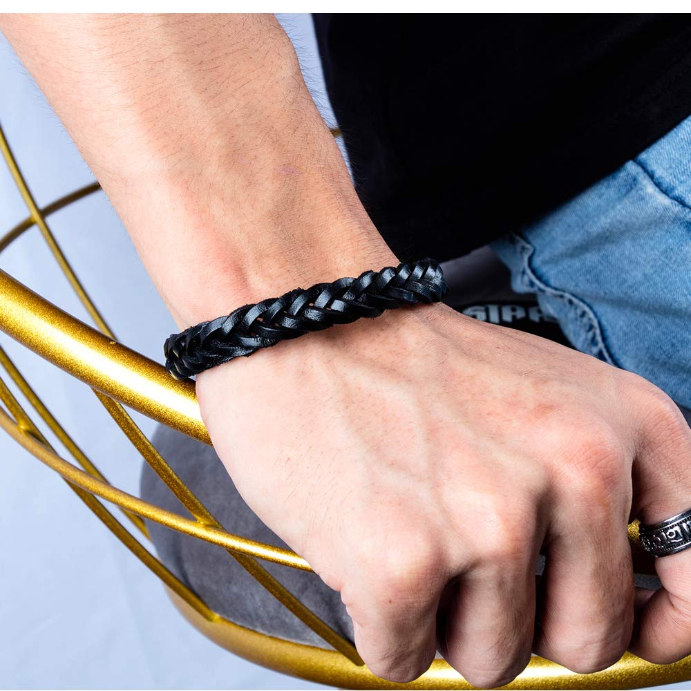 Rockyuの新作レザーブレスレットで、さりげない大人の余裕を演出しませんか?シンプルながらも存在感のある10mm幅の編み込みPUレザーが、手元に深みと男らしさを添えてくれます。重ね付けしなくても、これひとつで十分に“絵になる”デザインが魅力。
