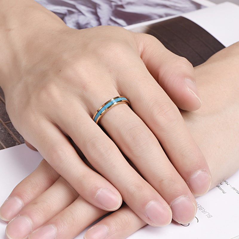 Rockyuの4mm幅タングステンターコイズインレイリングは、鮮やかなターコイズブルーとゴールドの輝きが美しく調和した、洗練されたデザイン。中央には天然石風ターコイズを丁寧にインレイし、両サイドはIPゴールドメッキによる鏡面仕上げでラグジュアリー感を演出。高硬度タングステンカーバイドを採用し、傷や摩耗に強く長く美しさを保ちます。4mmの細身デザインとコンフォートフィット構造で、指なじみが良く長時間の着用でも快適。男女問わず、カジュアルからフォーマルまで幅広いシーンに対応し、ペアリングやギフトにも最適。Rockyuならではのエレガンスと高耐久性で、日常の指元を鮮やかに彩ります。