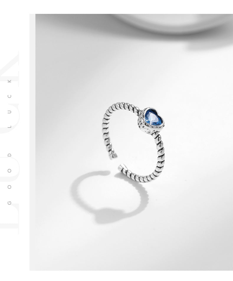 Rockyu リング レディース 925シルバー ハート&ドロップ型 ブルーストーン 開口式