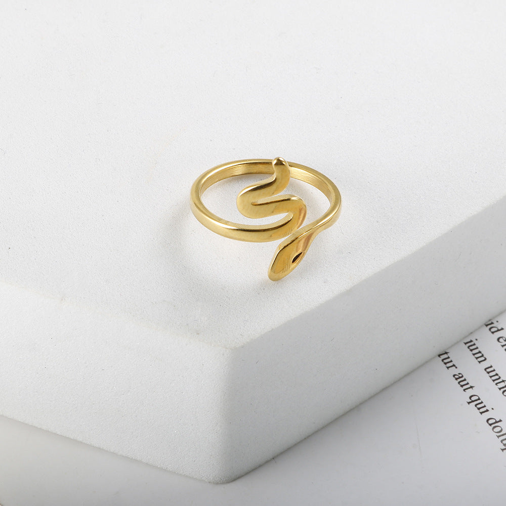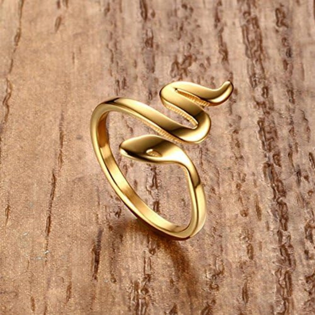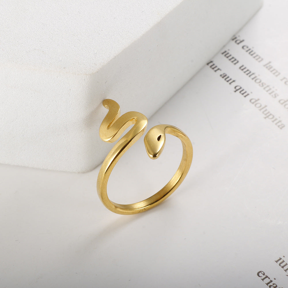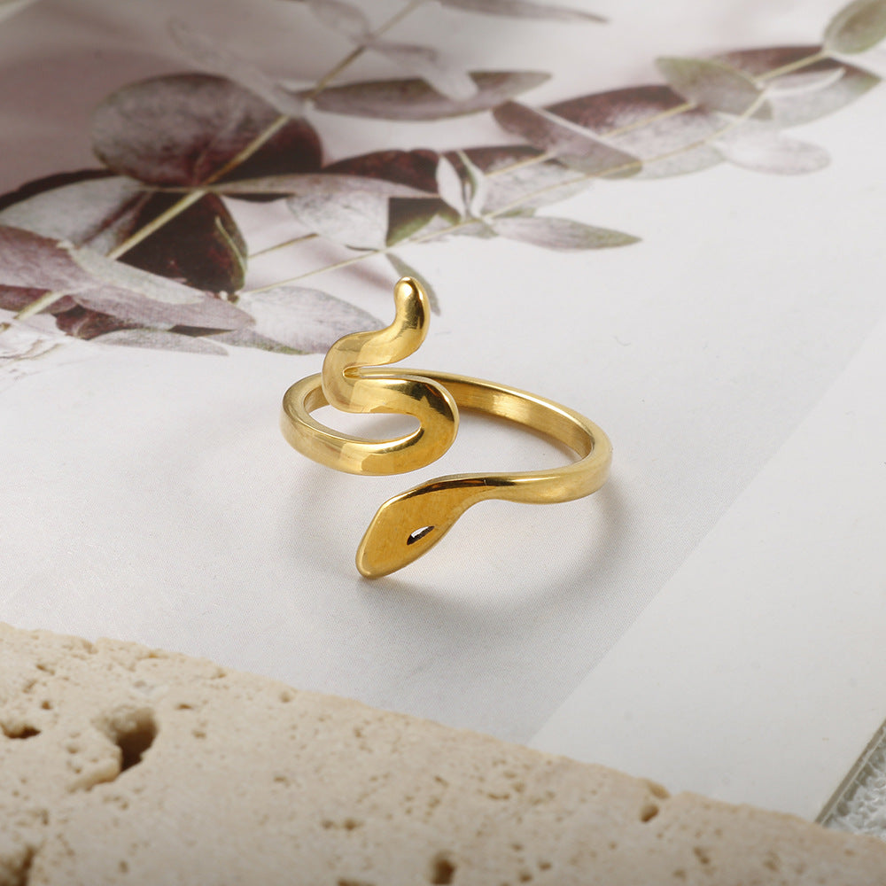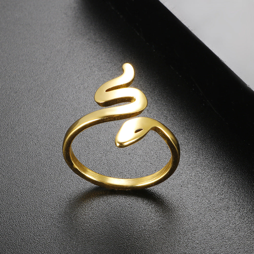 レディース スネークリング|チタン製 ゴールド IPメッキ 指輪 フリーサイズ