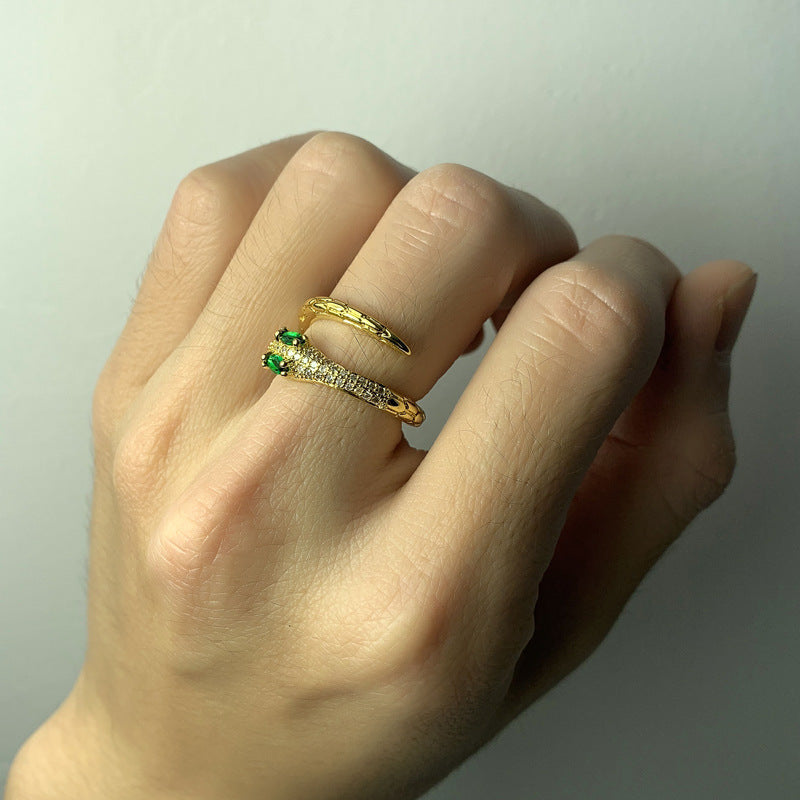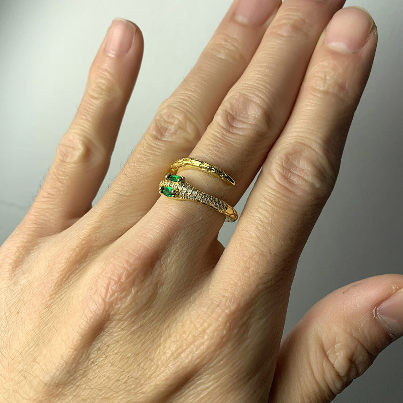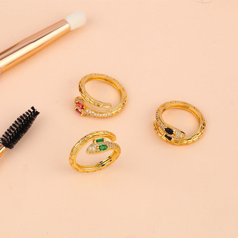 魅了されずにはいられない──Rockyuの蛇モチーフリングは、ニューヨークスタイルのラグジュアリーと神秘性が交差する、存在感抜群の一本。滑らかな蛇のフォルムにカラーストーンの瞳がきらめき、まるであなたの運命を見つめているかのよう。