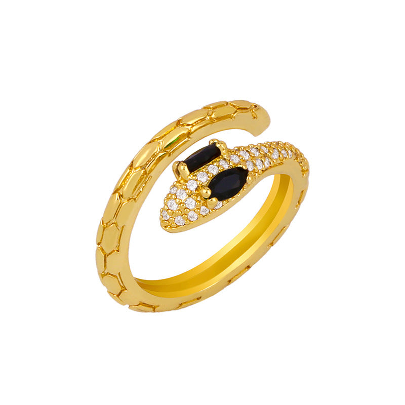 Rockyu 蛇モチーフリング レディース フリーサイズ 18金メッキ 厄除けデザイン