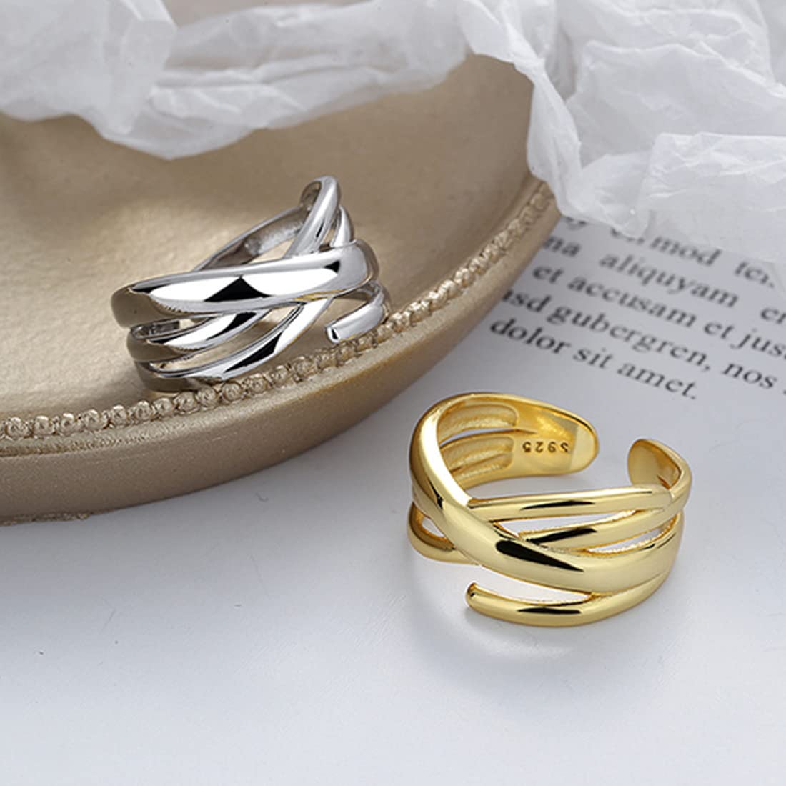 指先にアートを纏う感覚。Rockyuの多連クロスリングは、一本でレイヤード風の立体感が楽しめる欲張りデザイン。シルバーとゴールド、どちらも魅力的で選ぶのが悩ましい。フリーサイズ仕様で指にやさしくフィットし、着脱もストレスフリー。