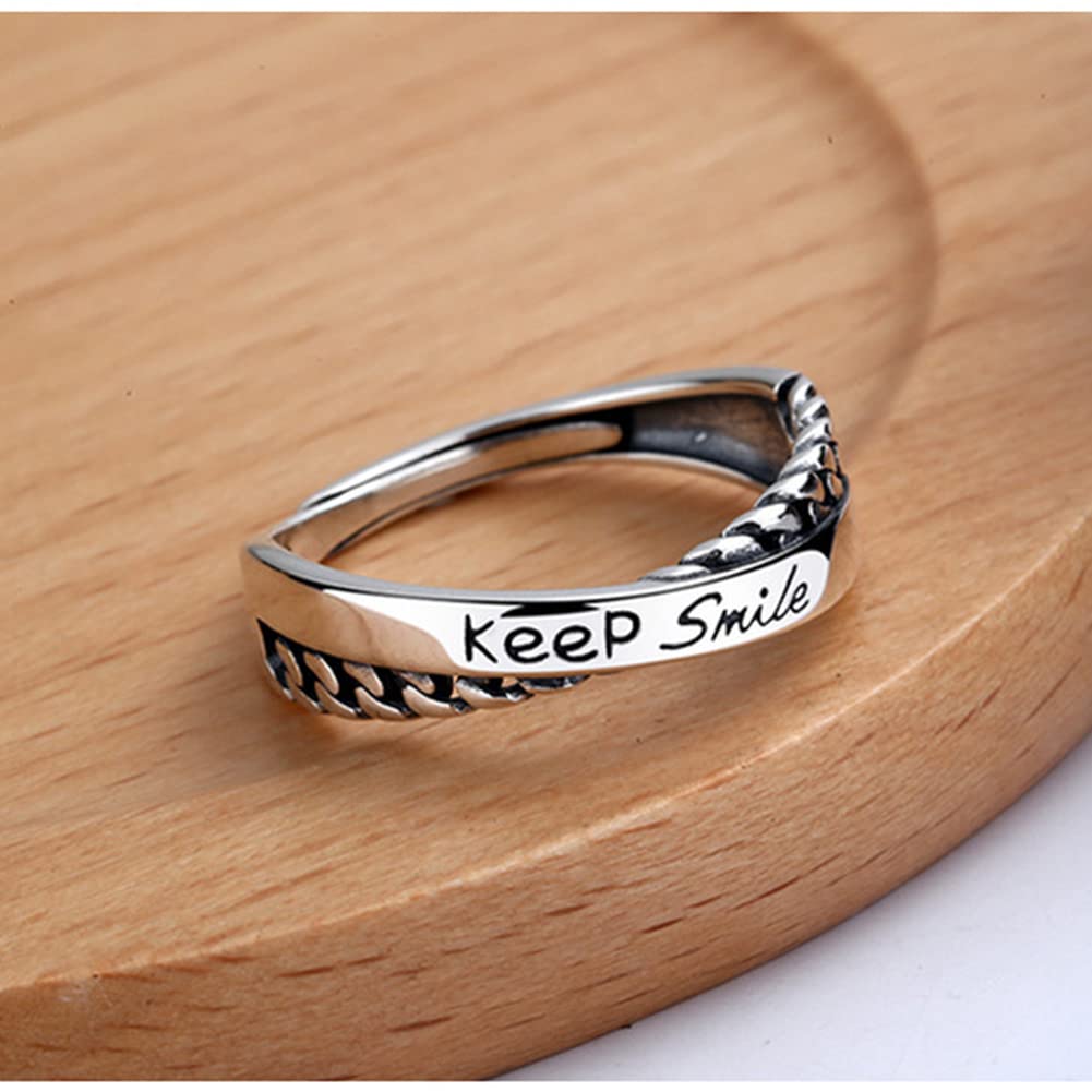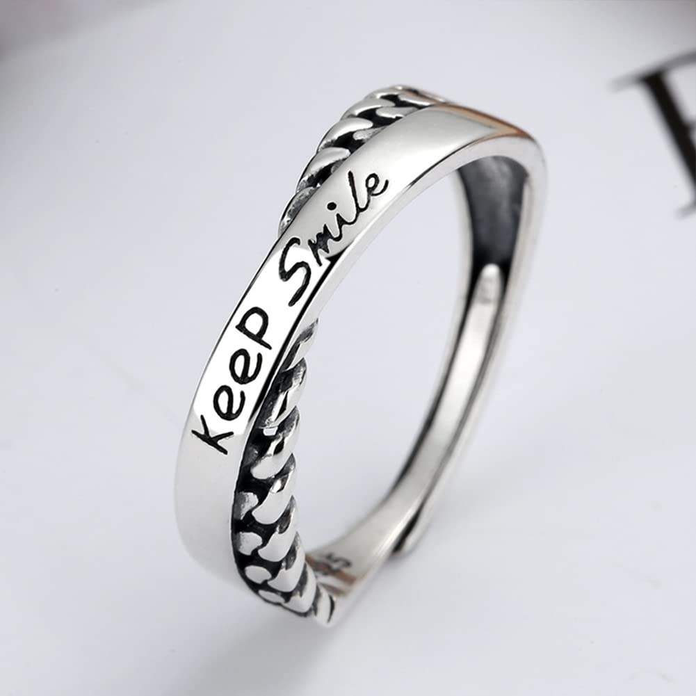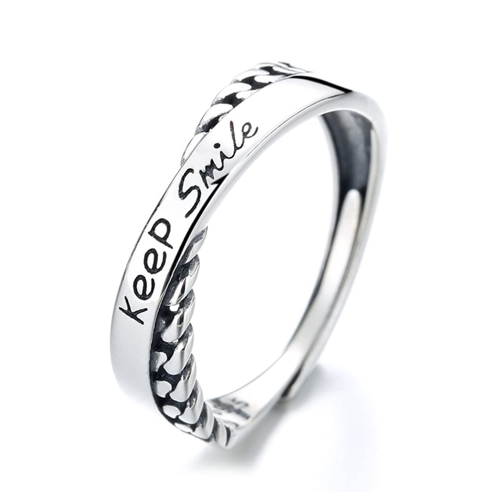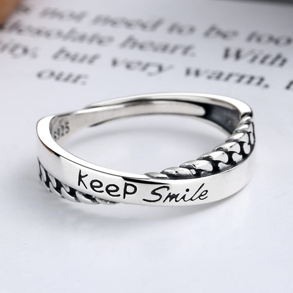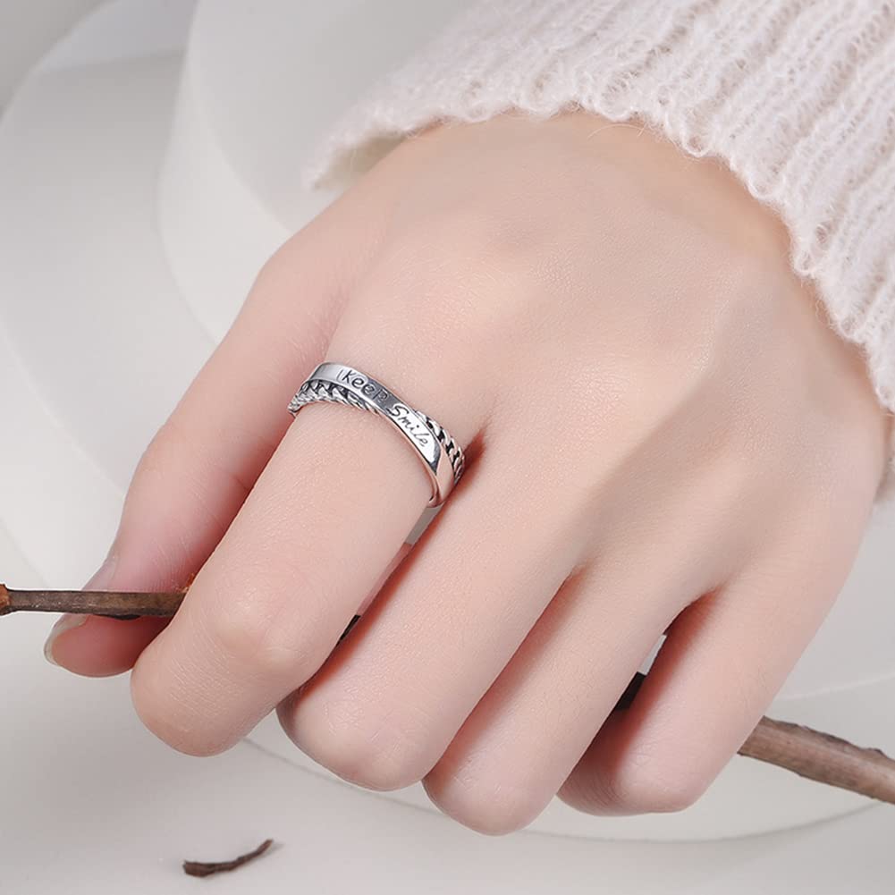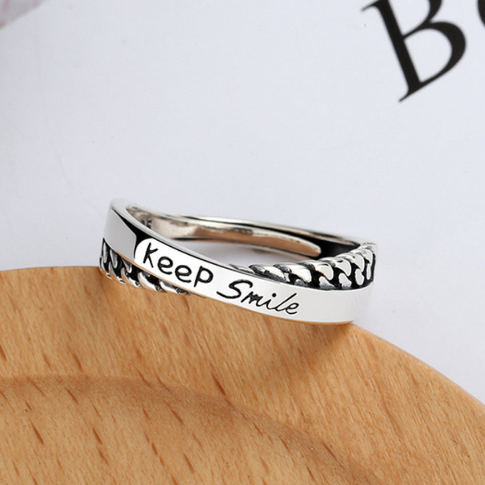 Rockyuが贈る、さりげなく前向きなメッセージを指元に宿すシルバー925リング。柔らかく交差するデザインに「Keep Smile」の英字刻印を施し、毎日の装いに小さな元気をプラスします。繊細ながらも存在感のあるフォルムは、カジュアルにもフェミニンにも合わせやすく、韓国風コーデにも好相性。フリーサイズ仕様で指のサイズに合わせやすく、金属アレルギー対応だから安心して長時間着用できます。自分用はもちろん、大切な人への誕生日や記念日のプレゼントにも最適。Rockyuの交差デザインリングで、日常に笑顔と輝きを。