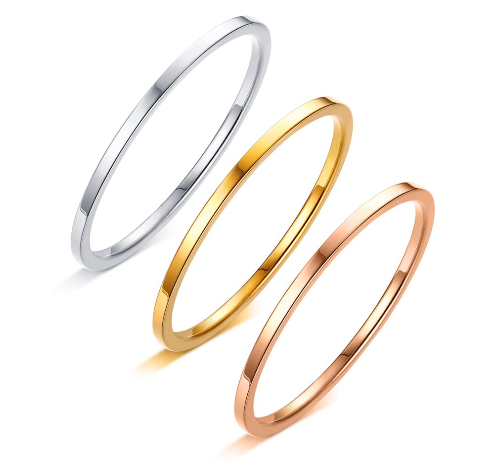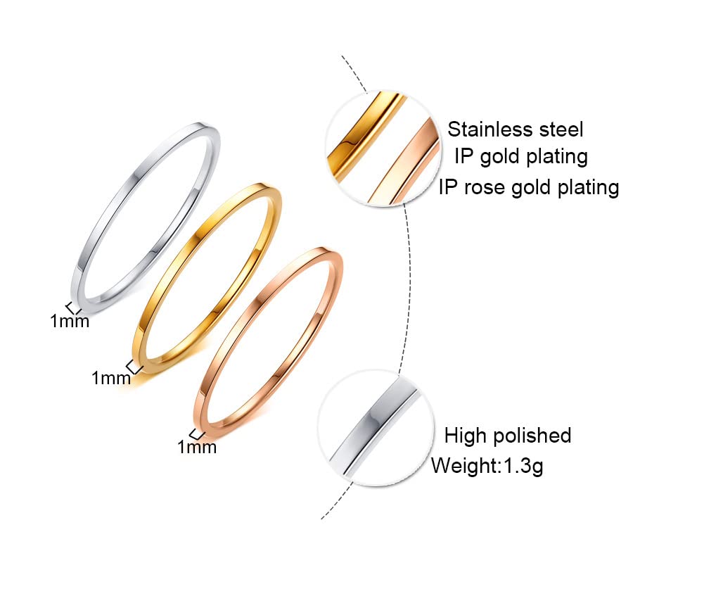 RoseGold-幅1mm / US-3Rinwo-R0229-RoseGold-幅1mm-US-3
