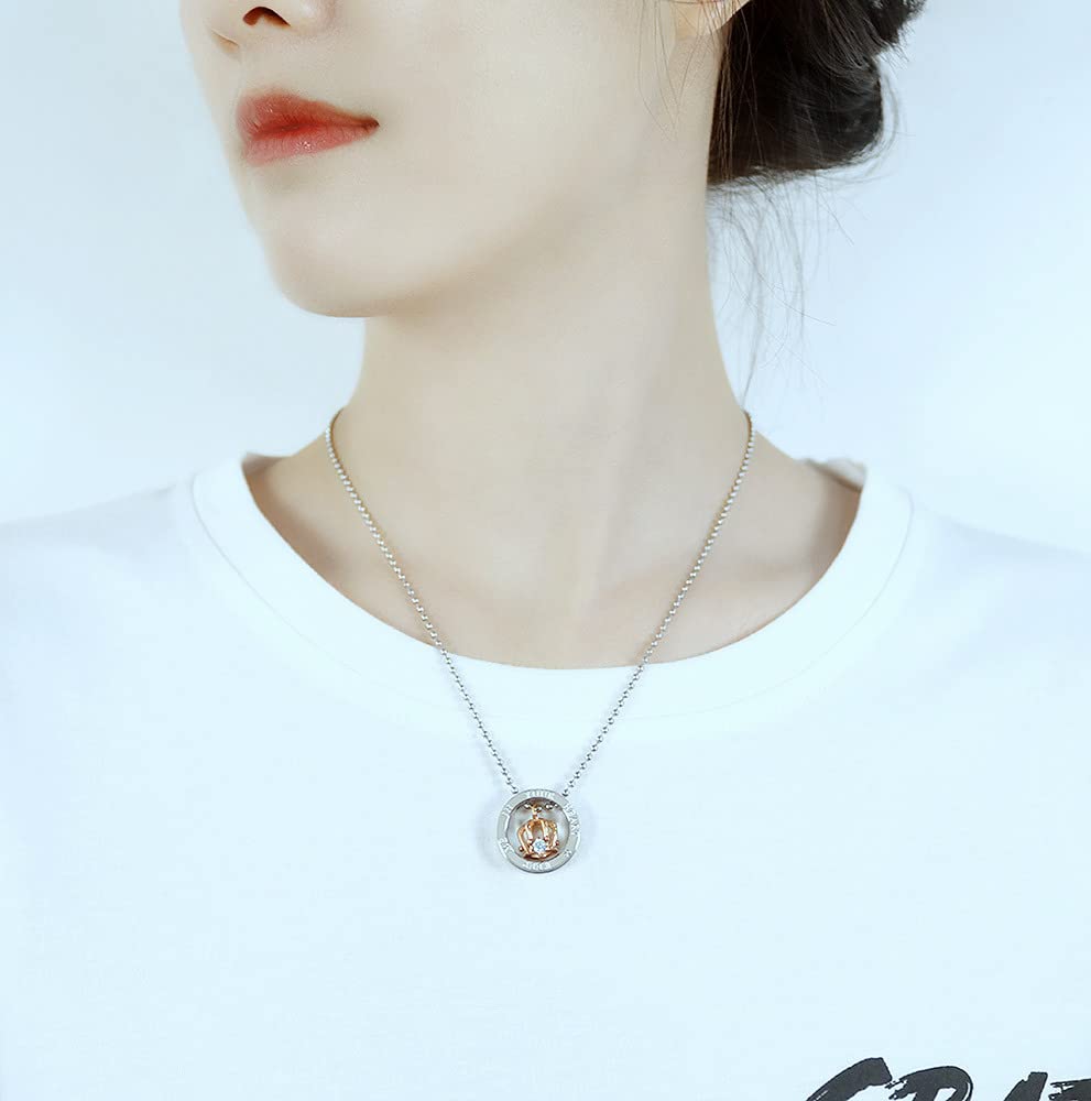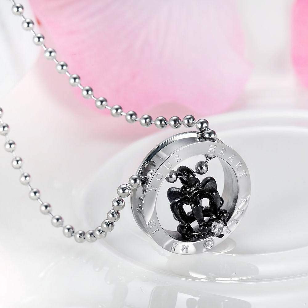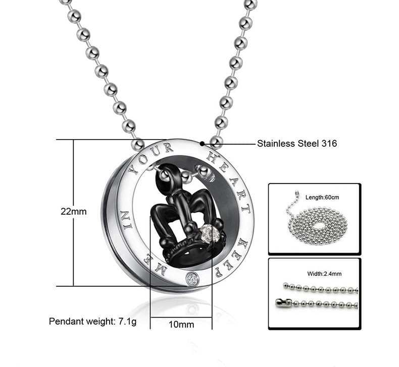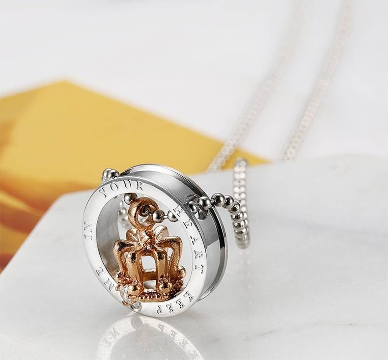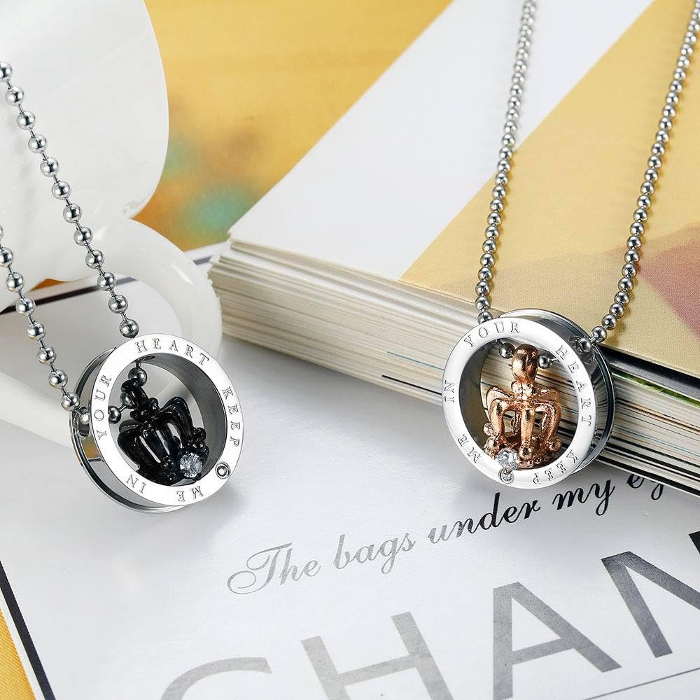 Rockyuのクラウンリングペンダントネックレスは、立体的な王冠モチーフをジルコニアで飾ったラグジュアリーなデザイン。リング部分には「KEEP ME IN YOUR HEART」の文字が刻まれ、恋人や大切な人への想いを形にします。ピンクゴールドとブラックの2カラー展開で、カップルやペアアクセサリーとしても人気。高品質ステンレス316Lを使用し、金属アレルギーに配慮した安心仕様。チェーン長60cm、男女兼用でカジュアルからフォーマルまで幅広く活躍します。記念日や誕生日のプレゼントにぴったりの特別な一品です。