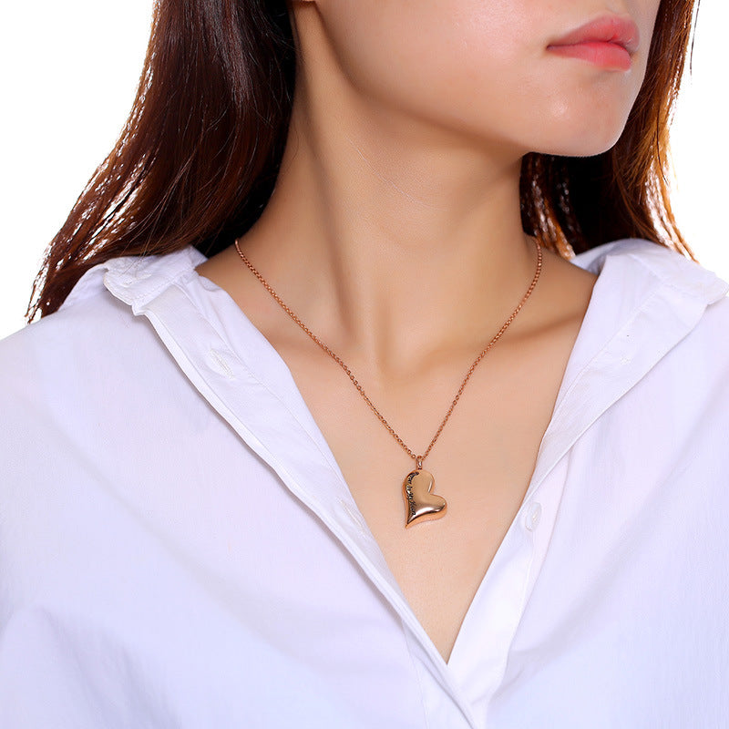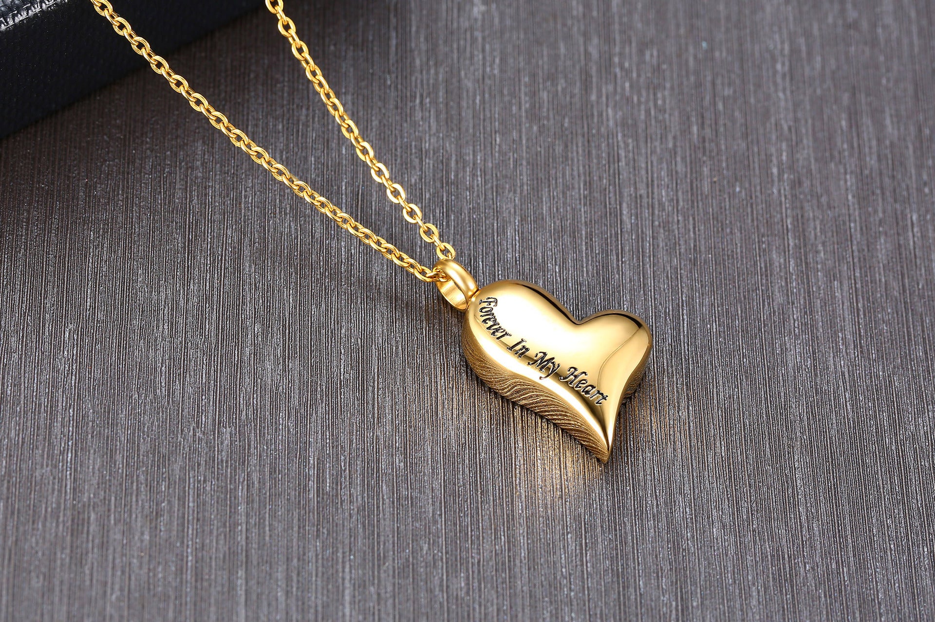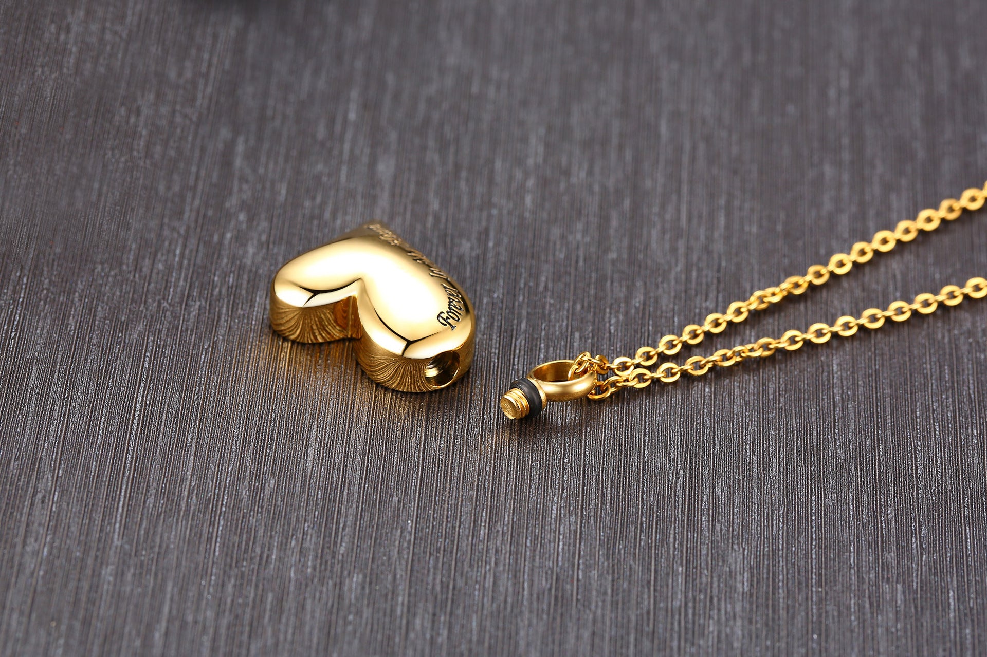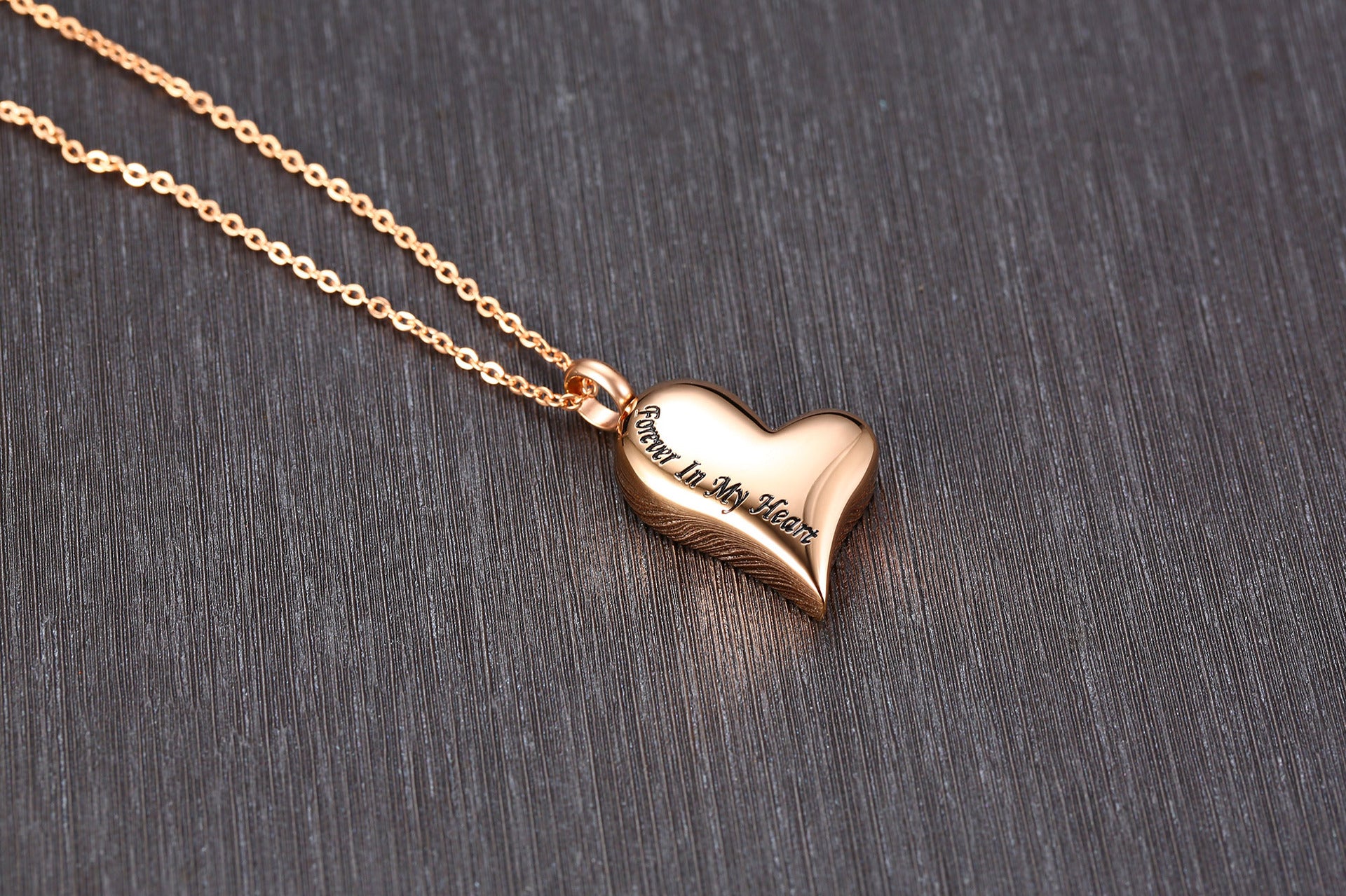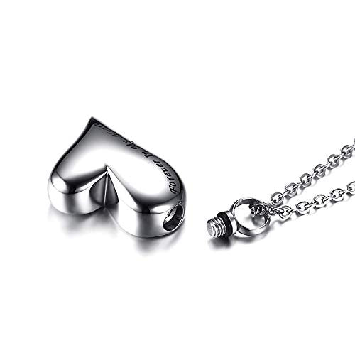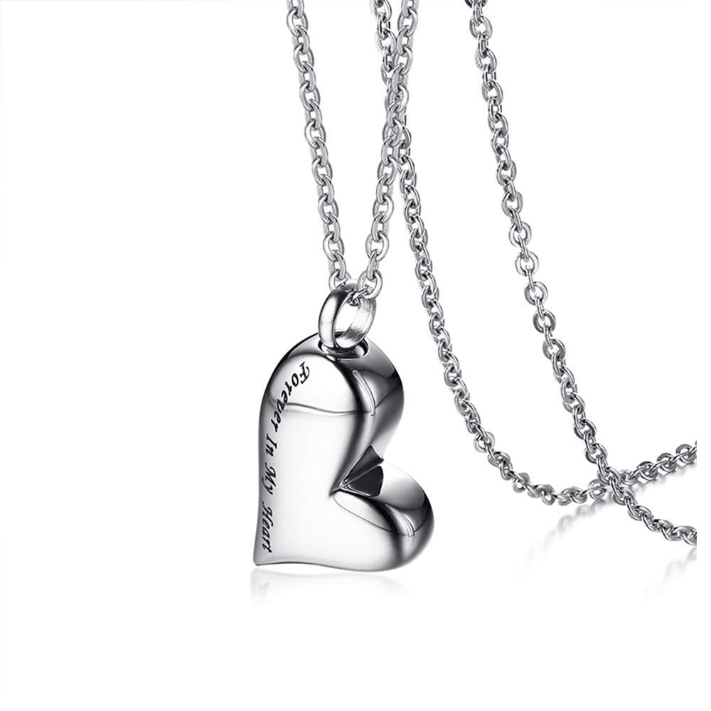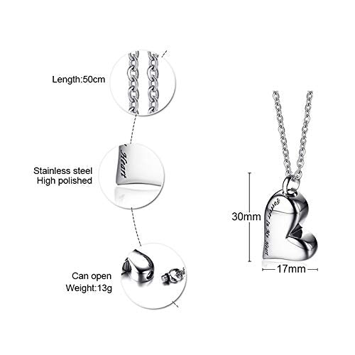 Rockyu ハート型メモリアルネックレス ステンレス製 刻印入り 遺骨ペンダント 50cmチェーン