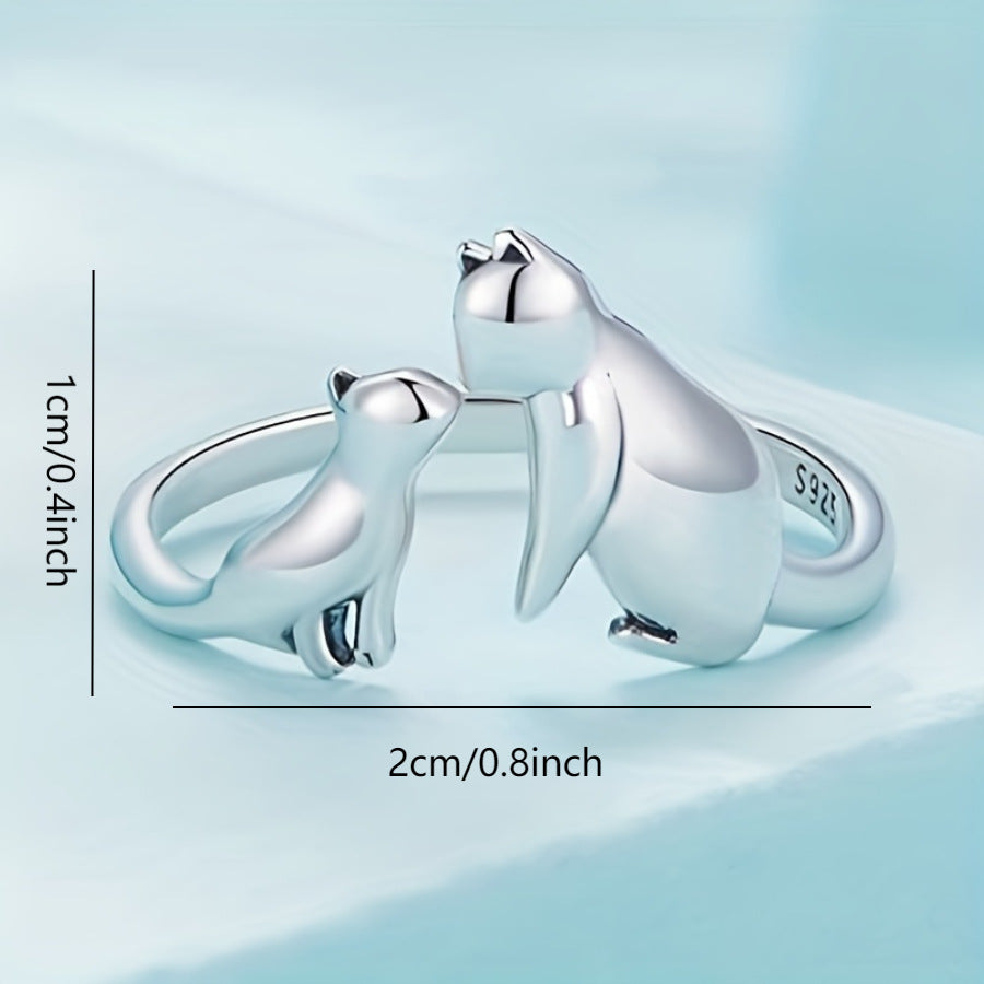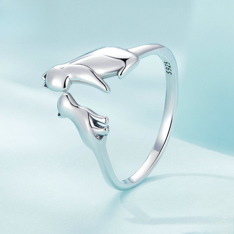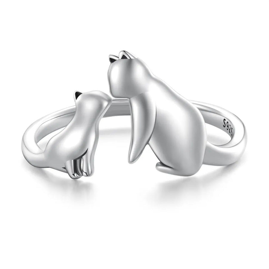 Rockyu 猫リング レディース フリーサイズ シルバー925 親子猫デザイン