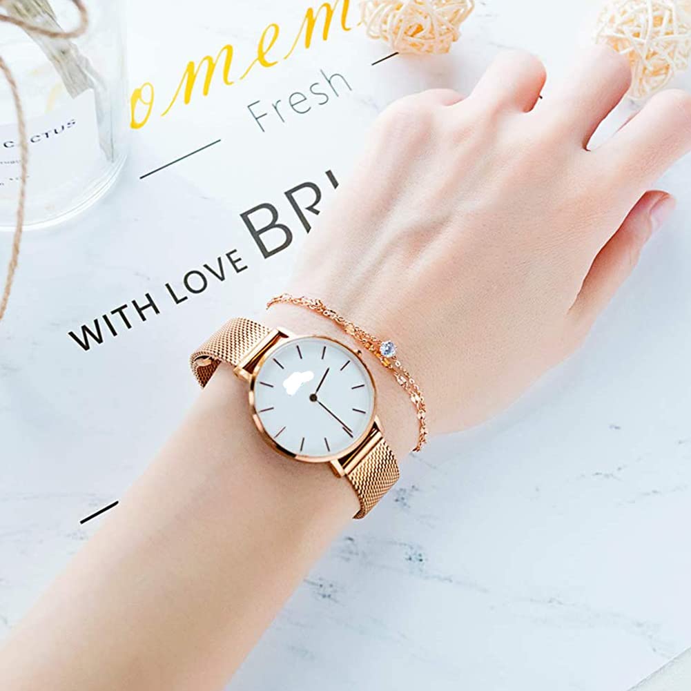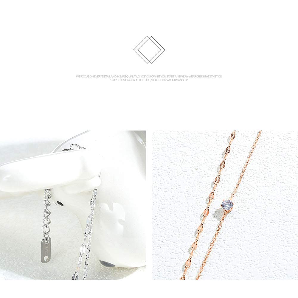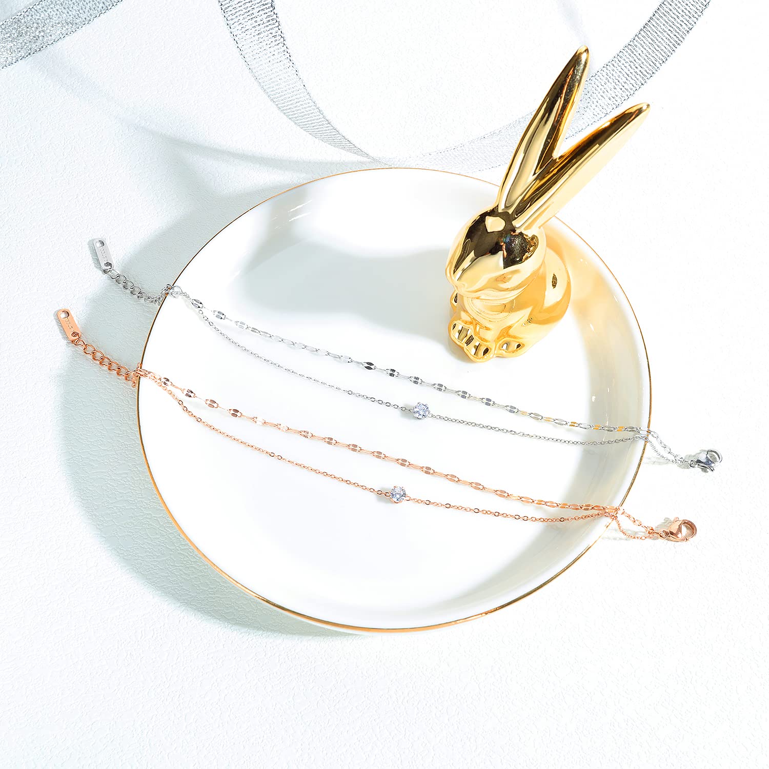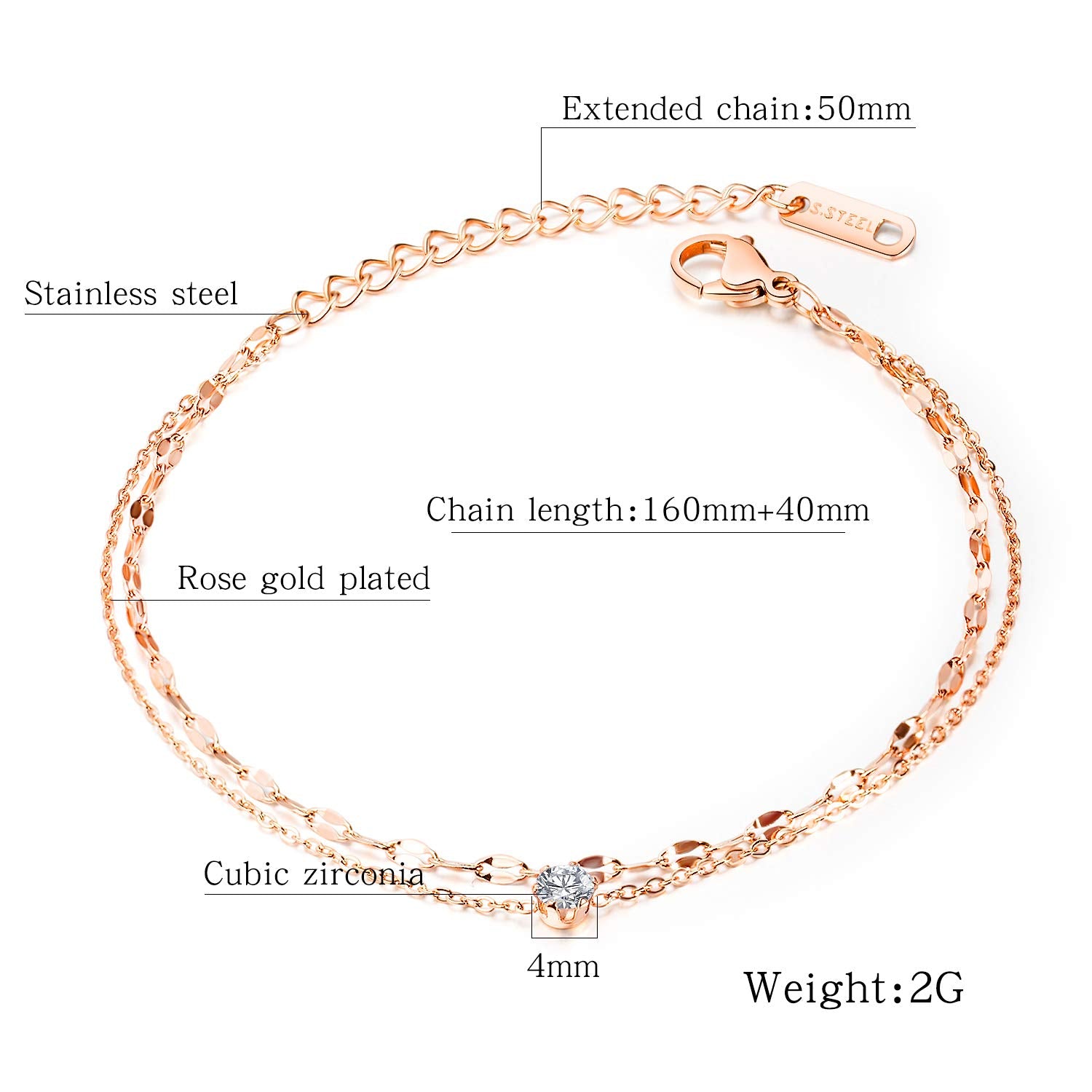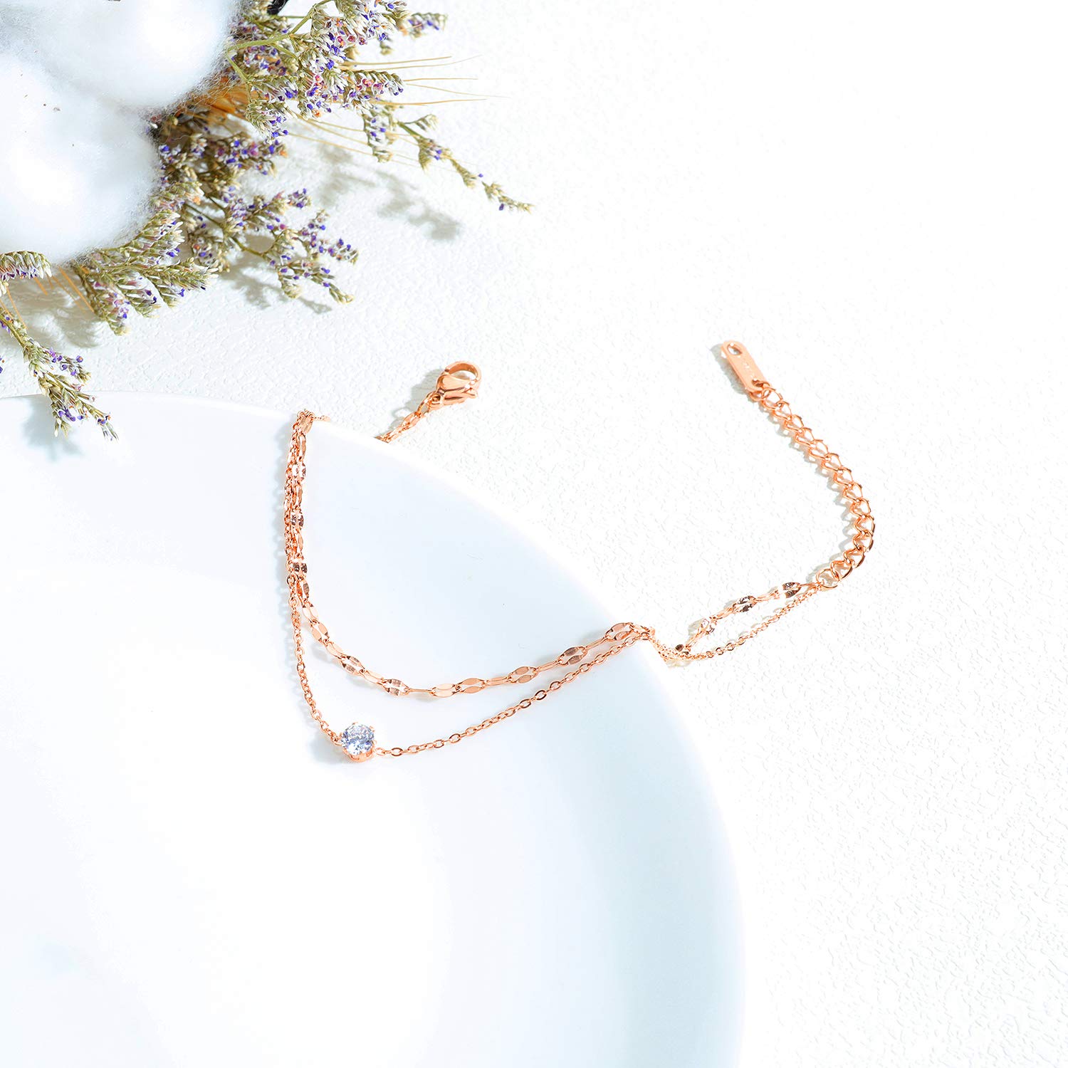 Rockyu ブレスレット レディース ピンクゴールド 2連チェーン ジルコニア付き 細身ジュエリー アレルギー対応