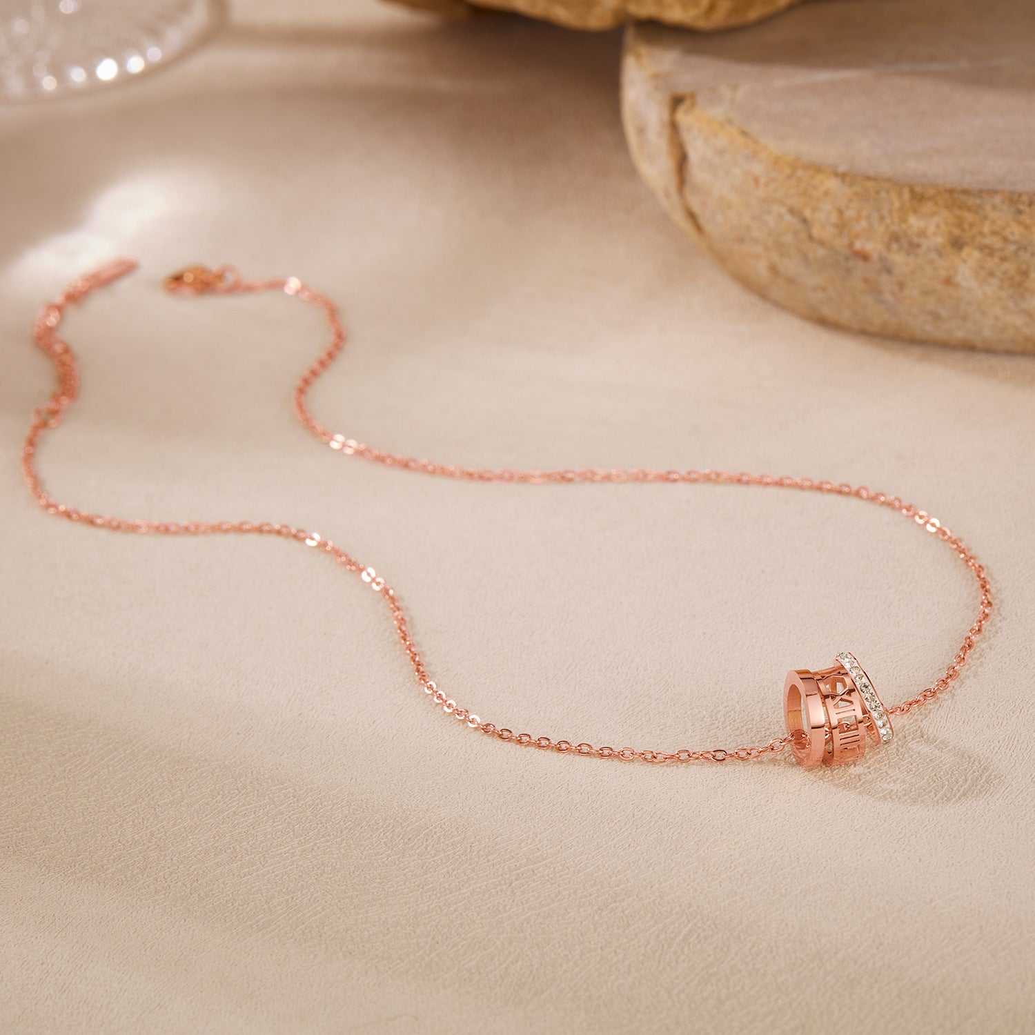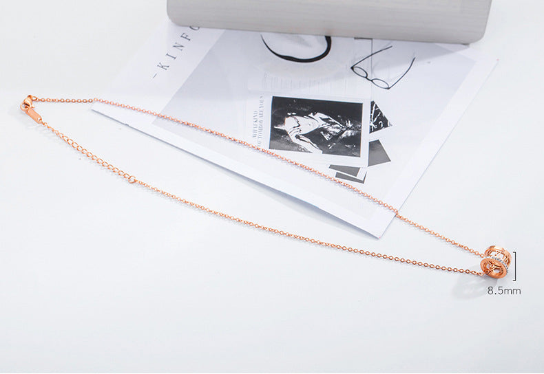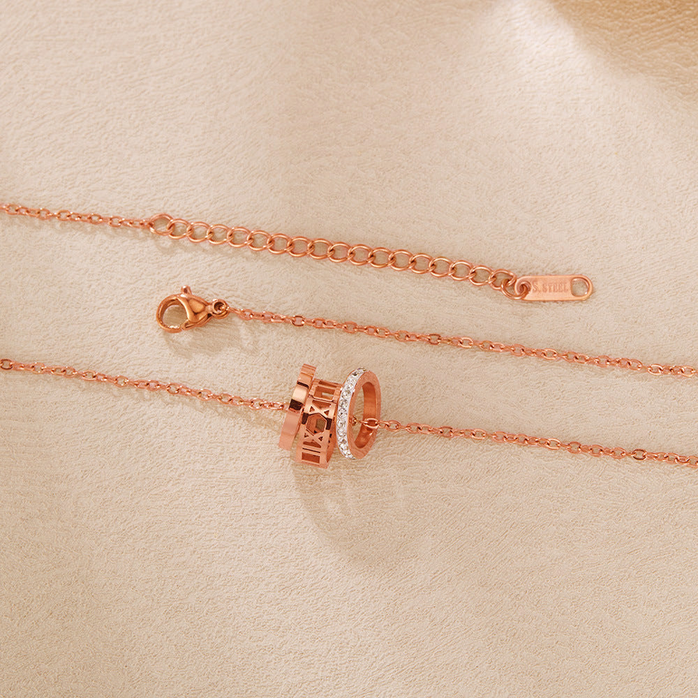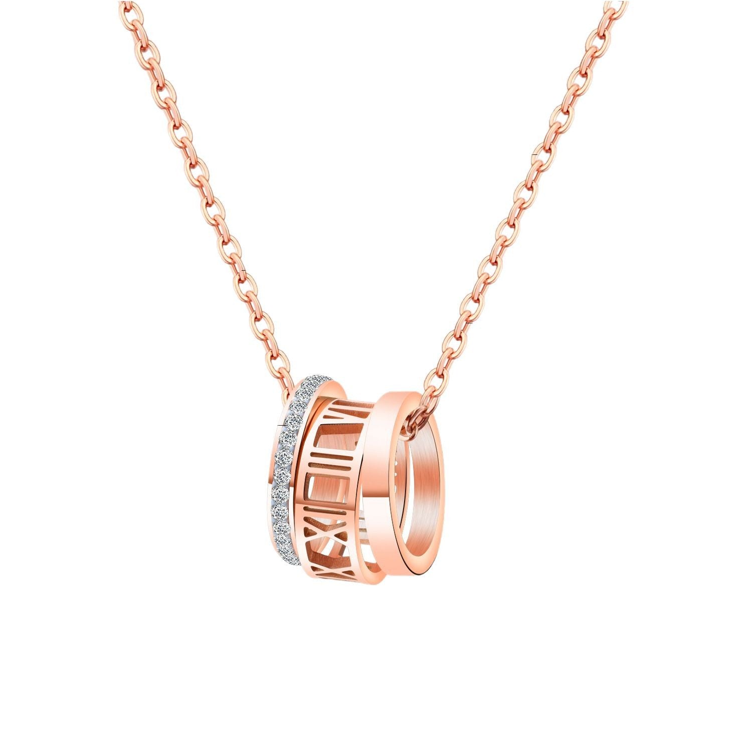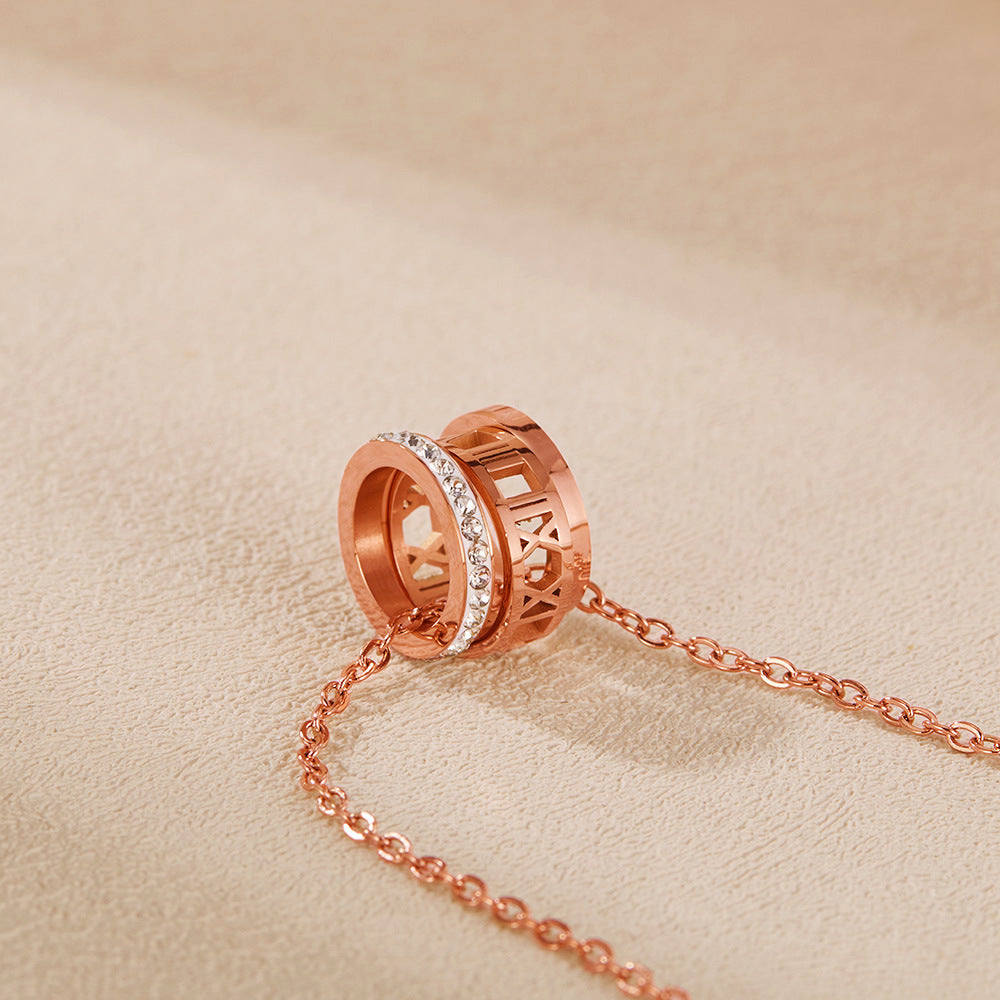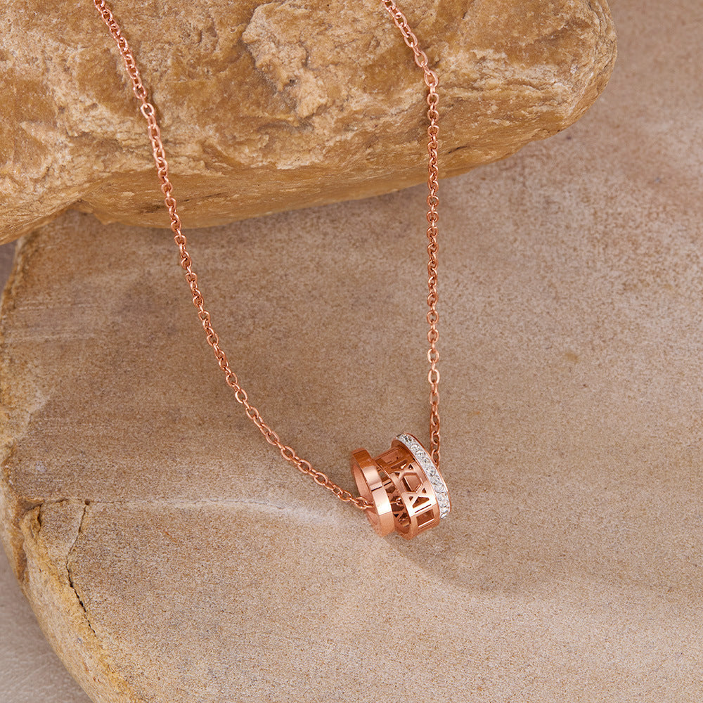 Rockyu ネックレス レディース ローマ数字 3連リングネックレス 18Kピンクゴールド キュービックジルコニア付