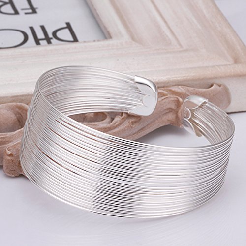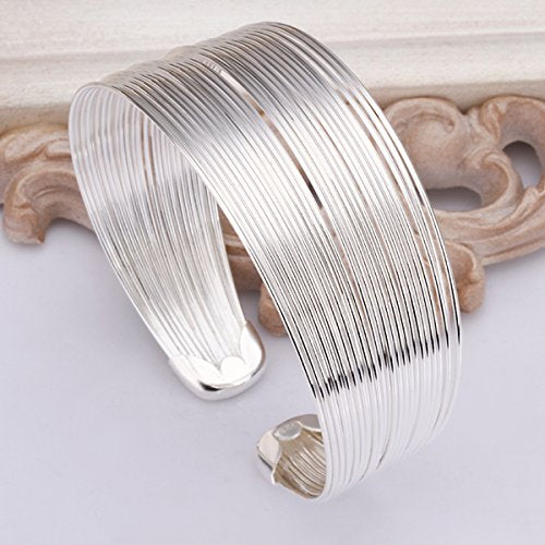 Rockyu シルバープレート バングル レディース 幅広デザイン アンティーク調 太めブレスレット