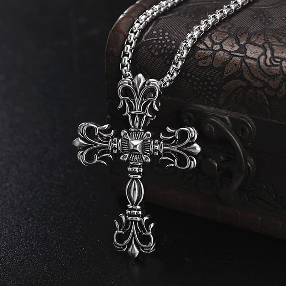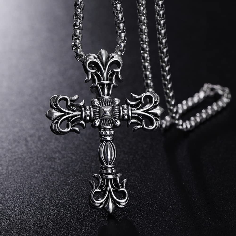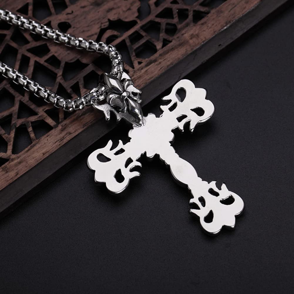 【クラシック重厚感】十字架ネックレス メンズ|ステンレス製クロスペンダント(シルバー)