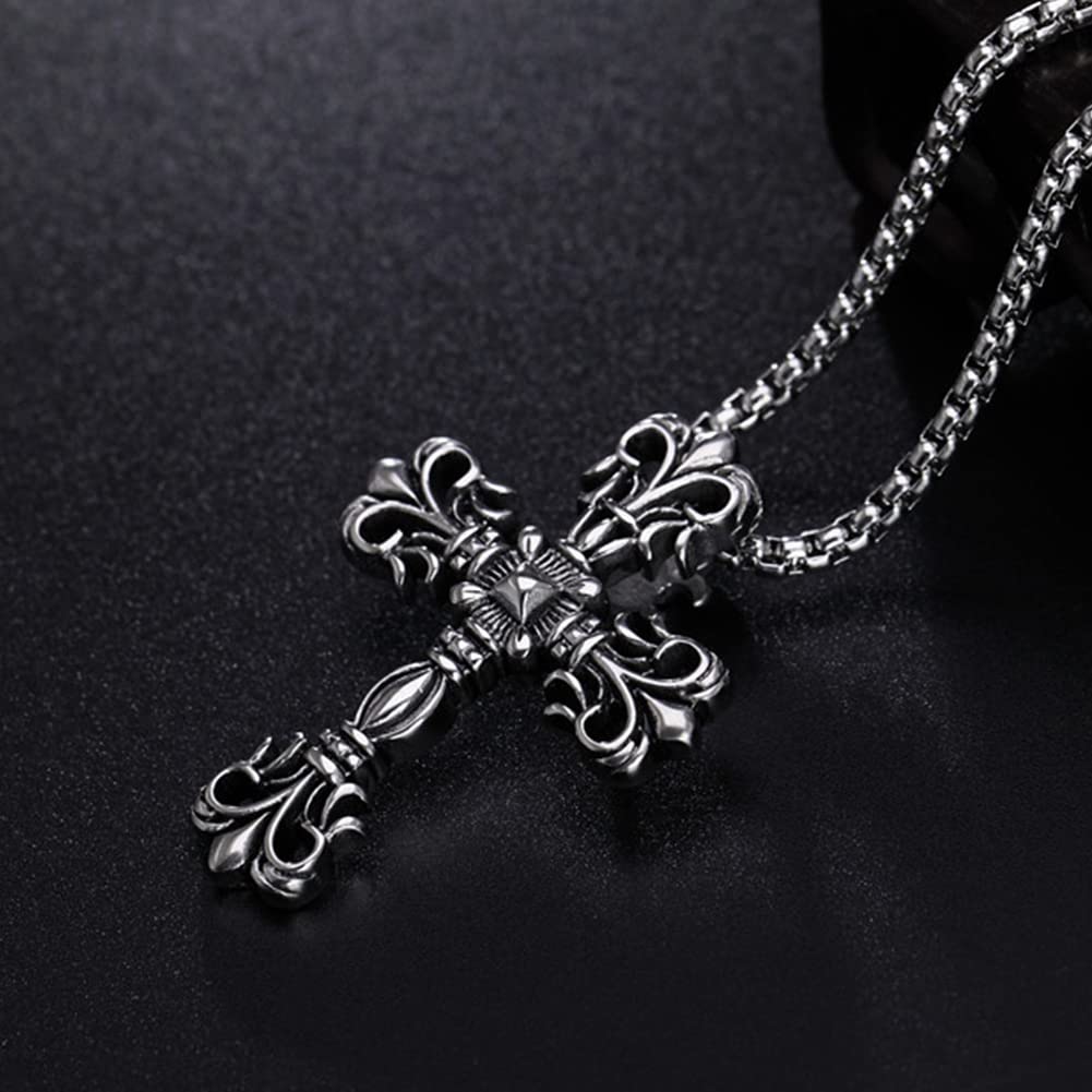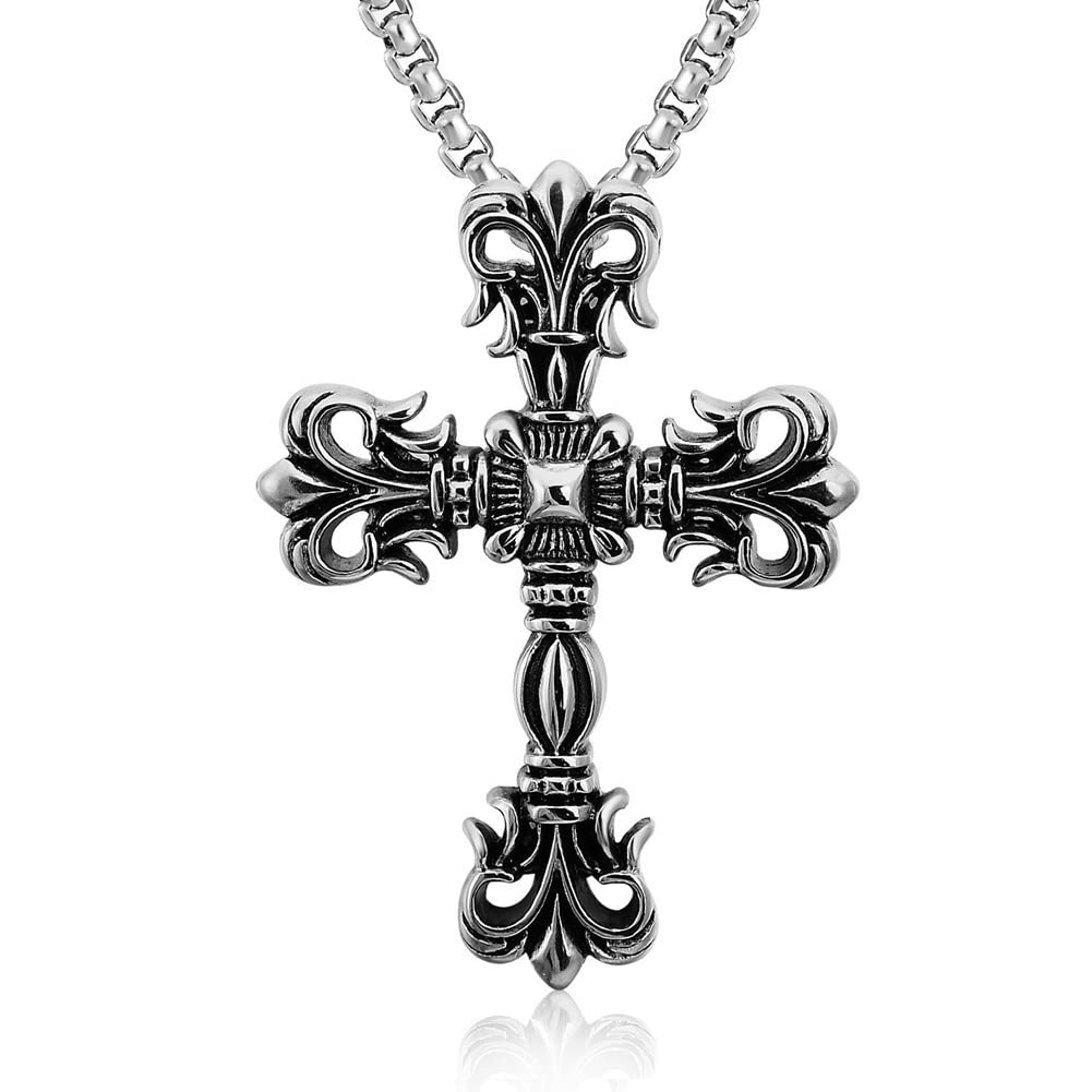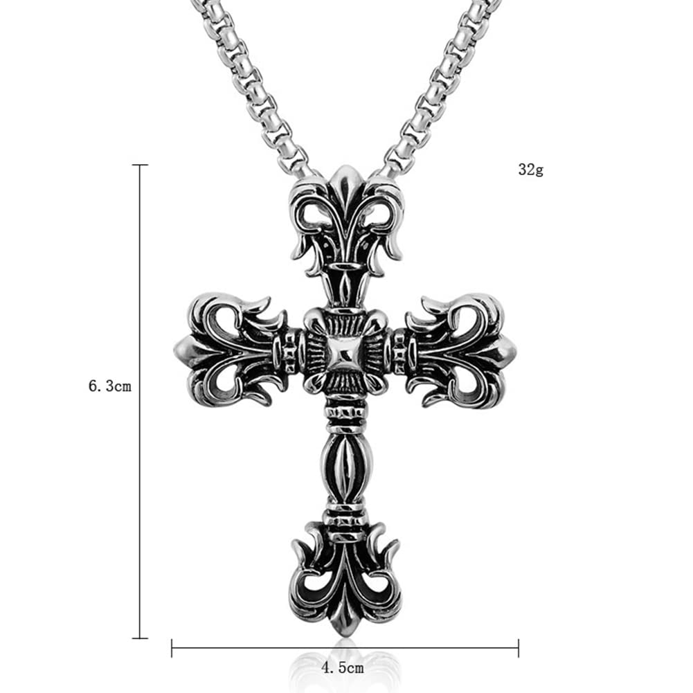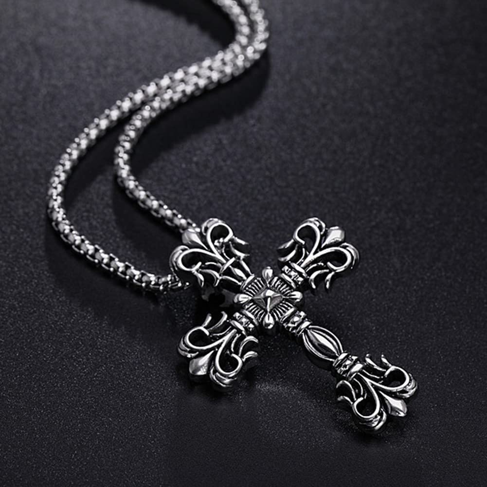 【クラシック重厚感】十字架ネックレス メンズ|ステンレス製クロスペンダント(シルバー)