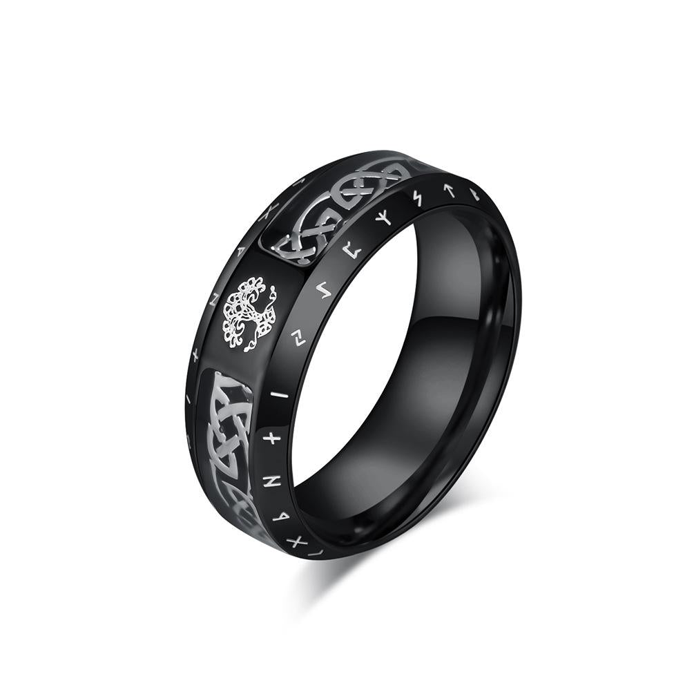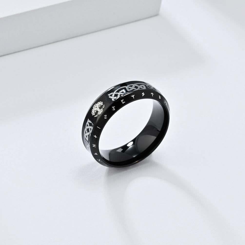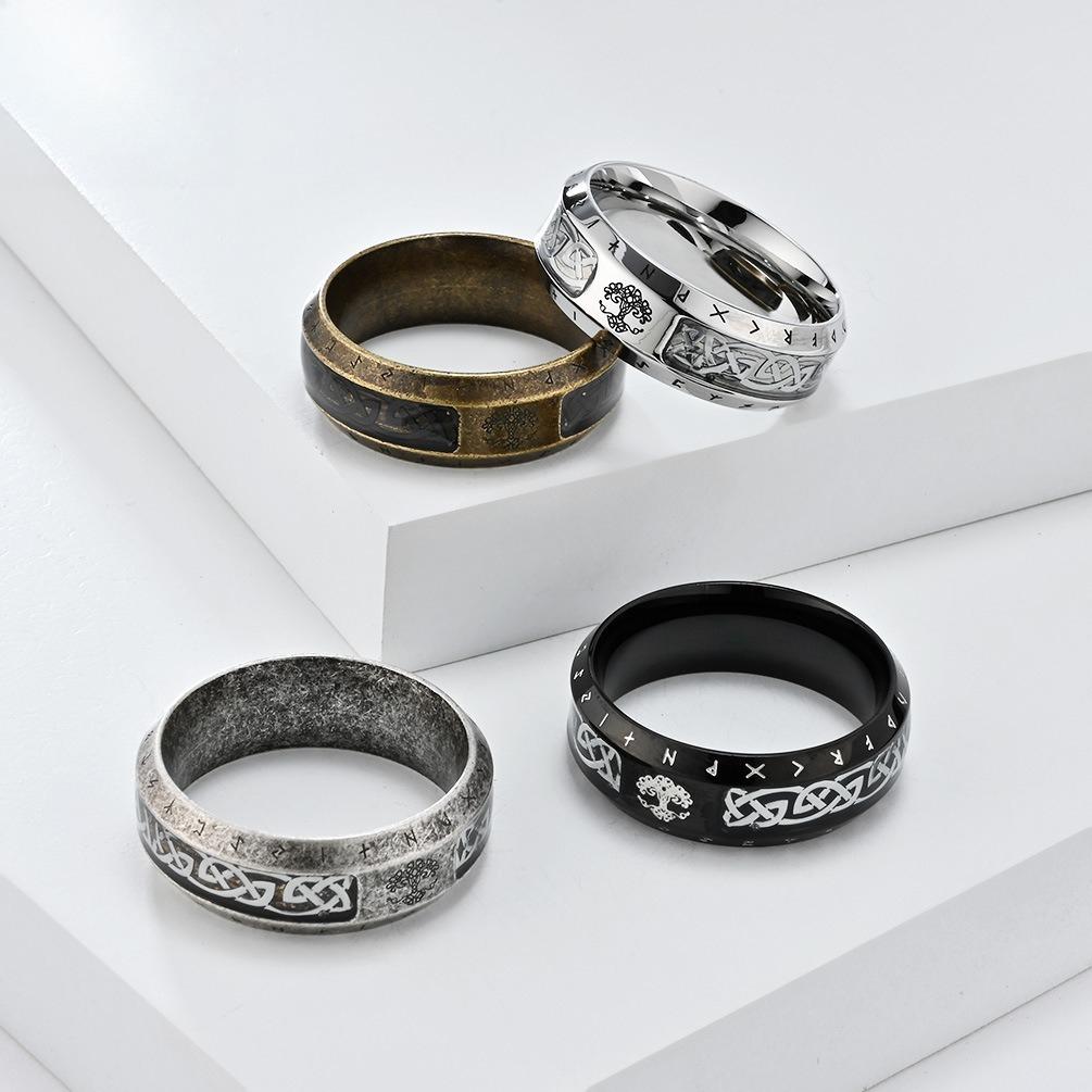 Rockyu 北欧ルーン×ケルト結び ステンレススチールリング