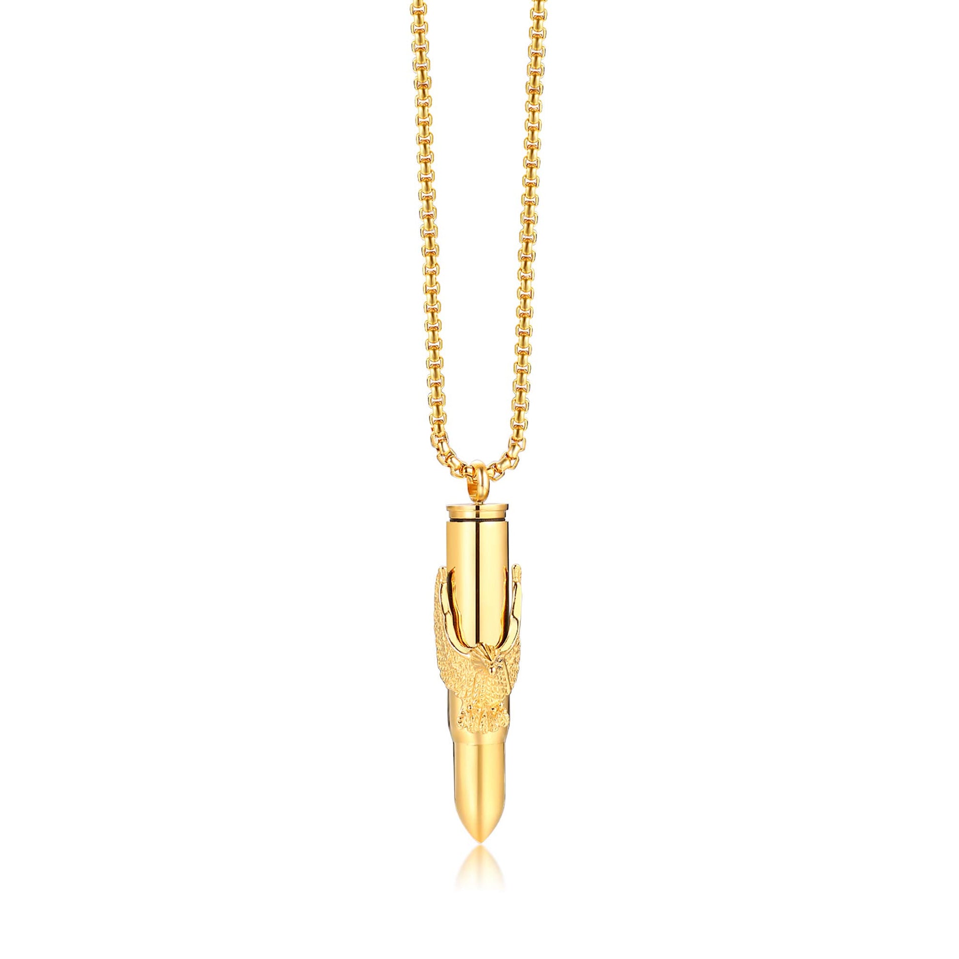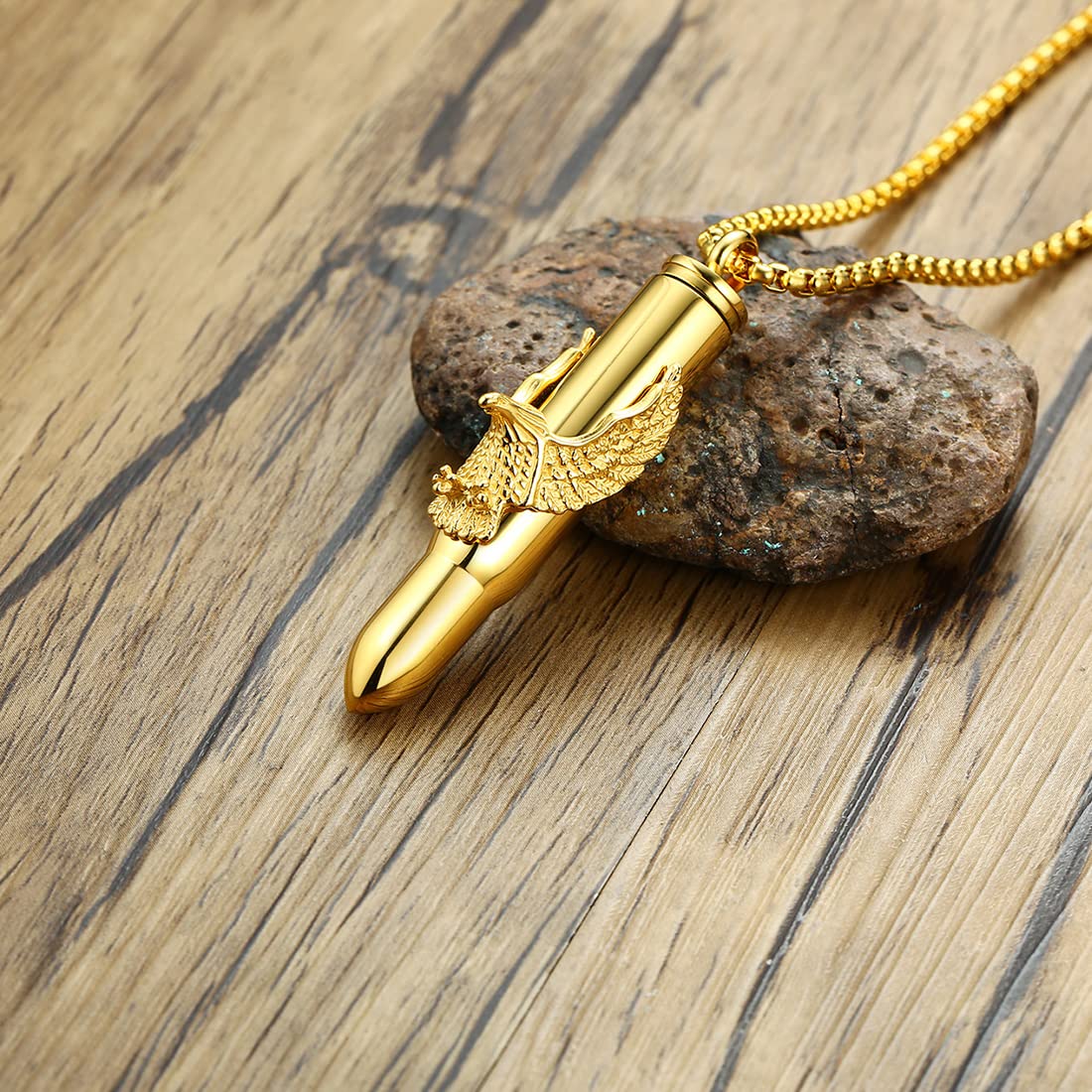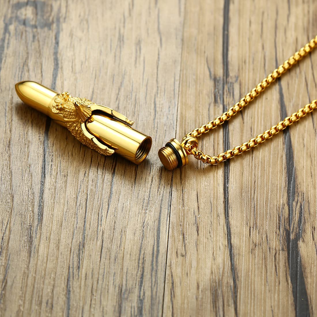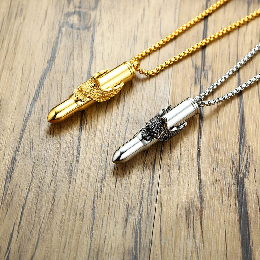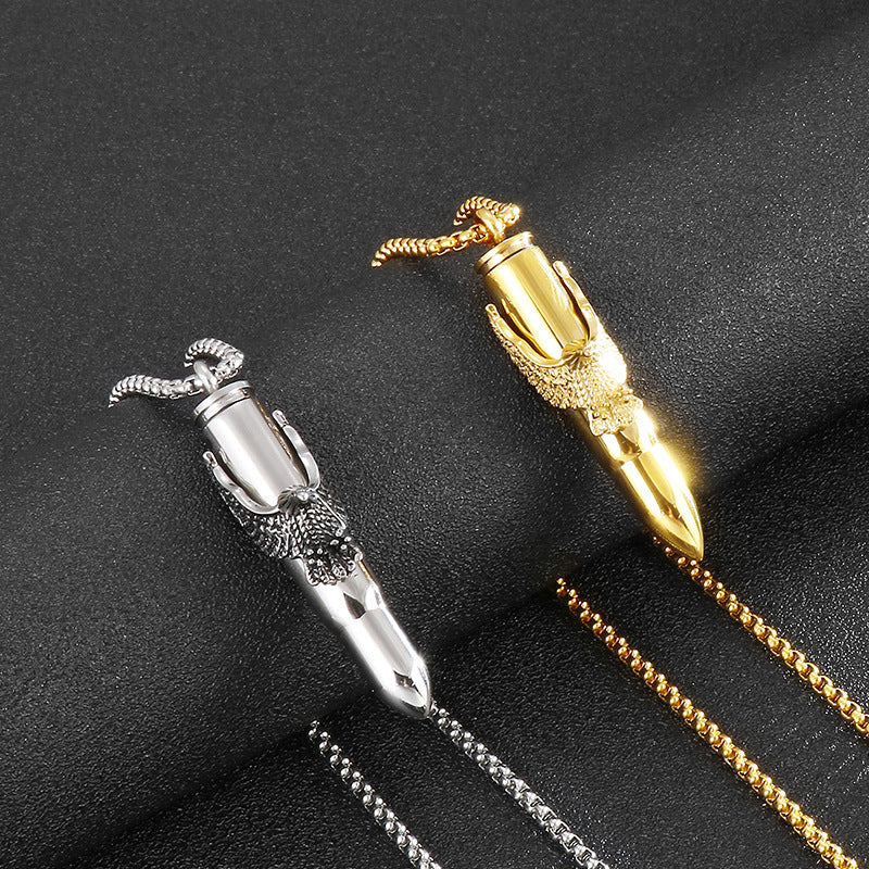 Rockyu 弾丸ネックレス メンズ 鷲の爪デザイン ステンレス製 遺骨入れ シルバー&ゴールド