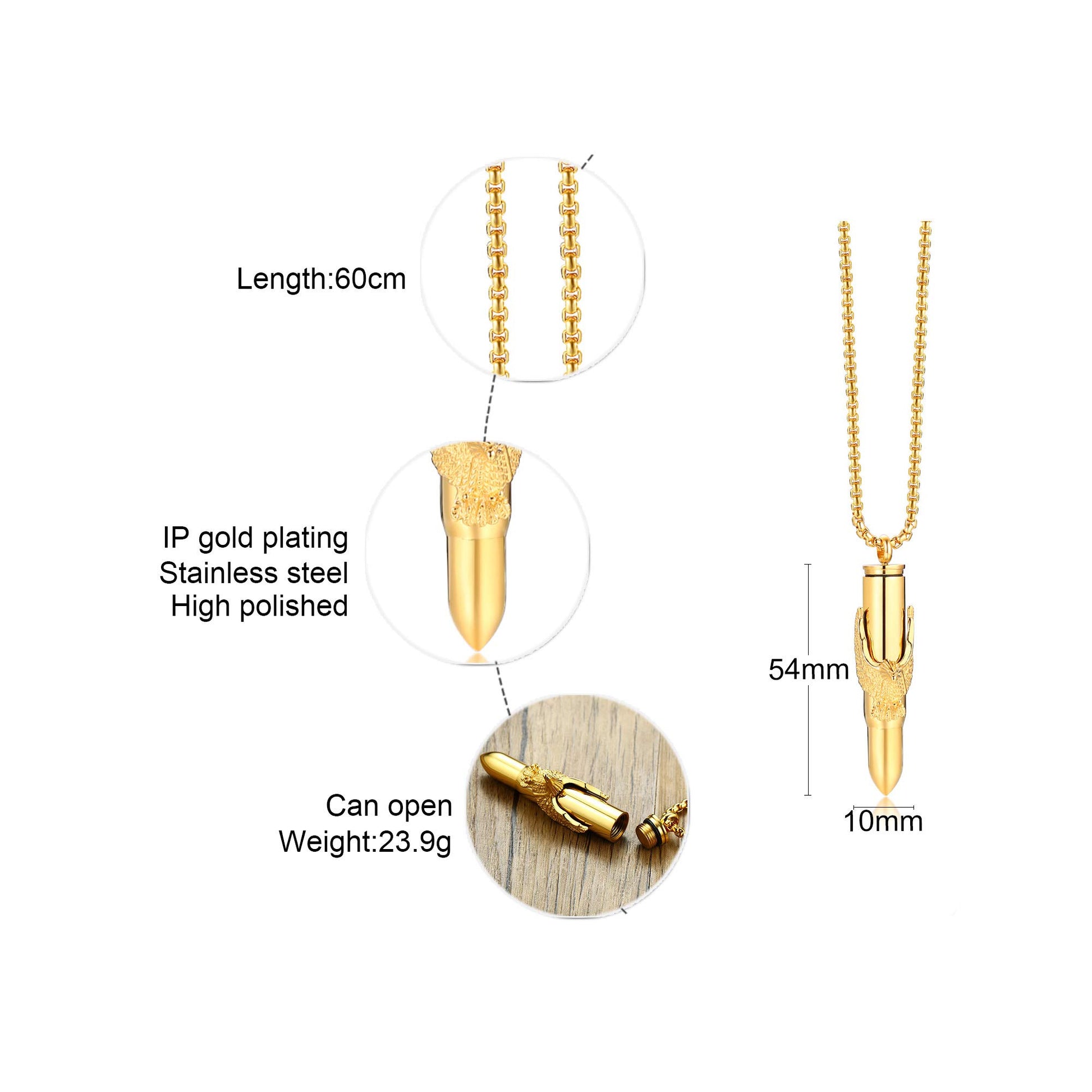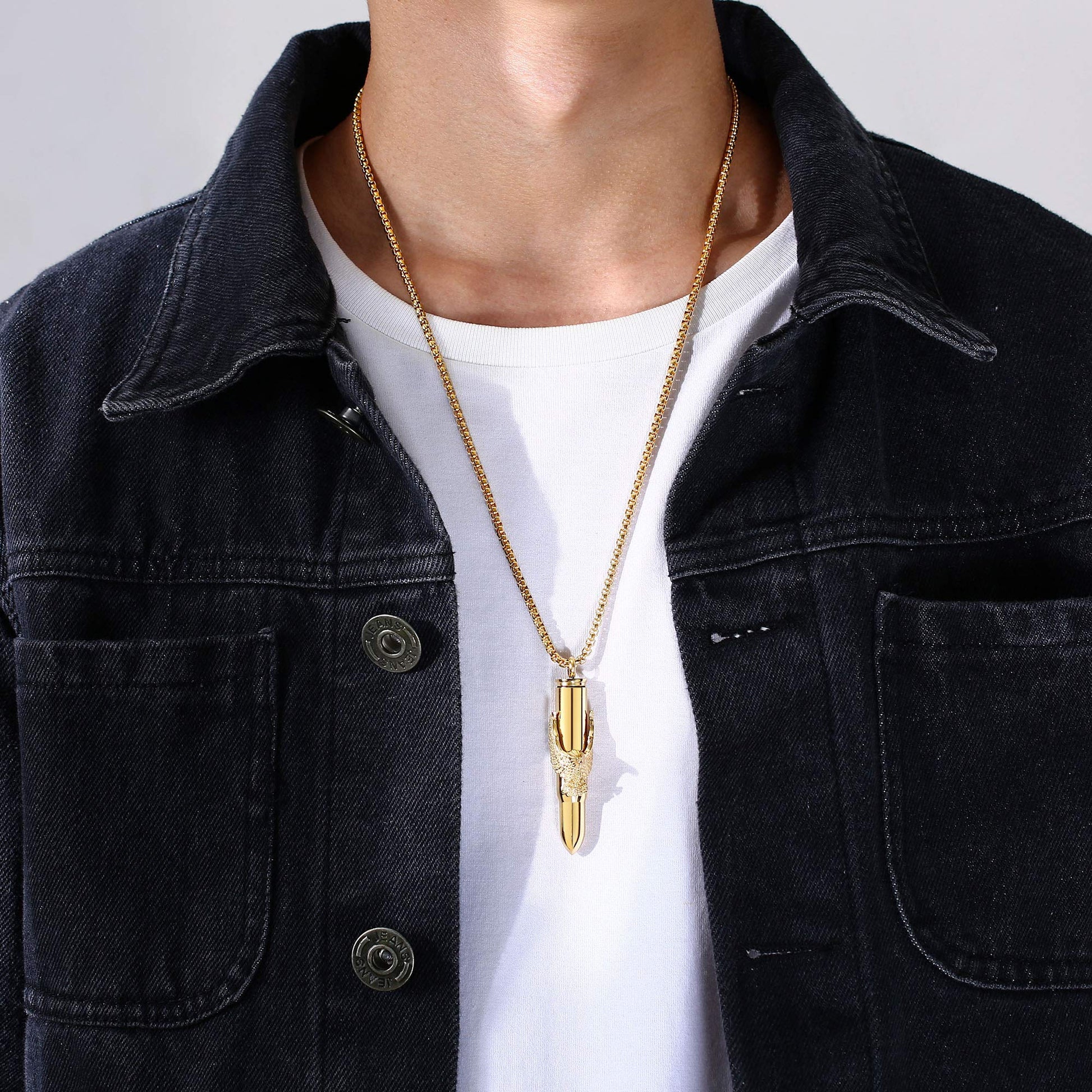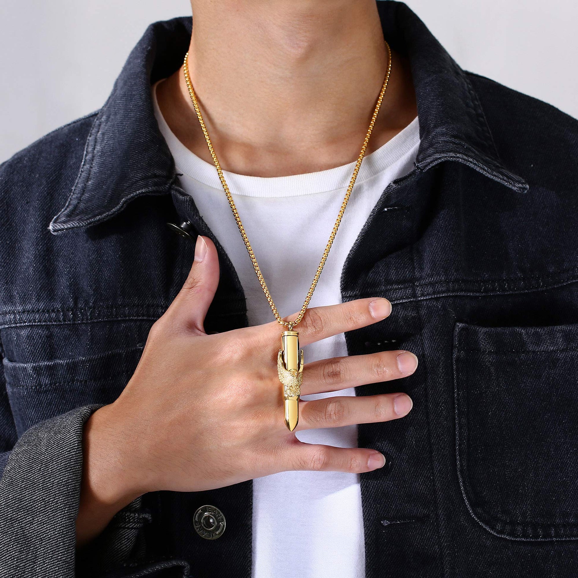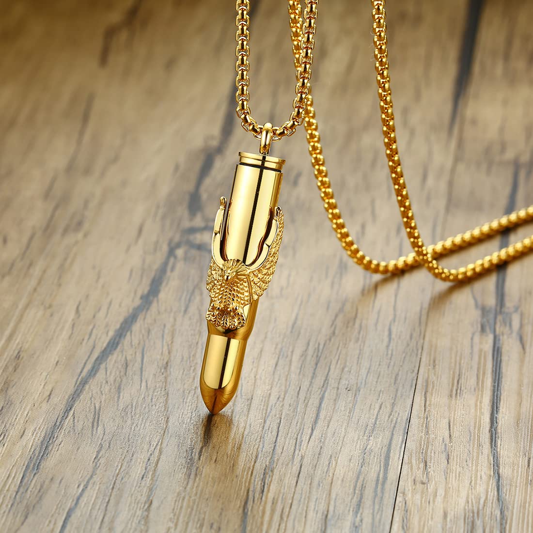 Rockyu 弾丸ネックレス メンズ 鷲の爪デザイン ステンレス製 遺骨入れ シルバー&ゴールド