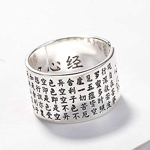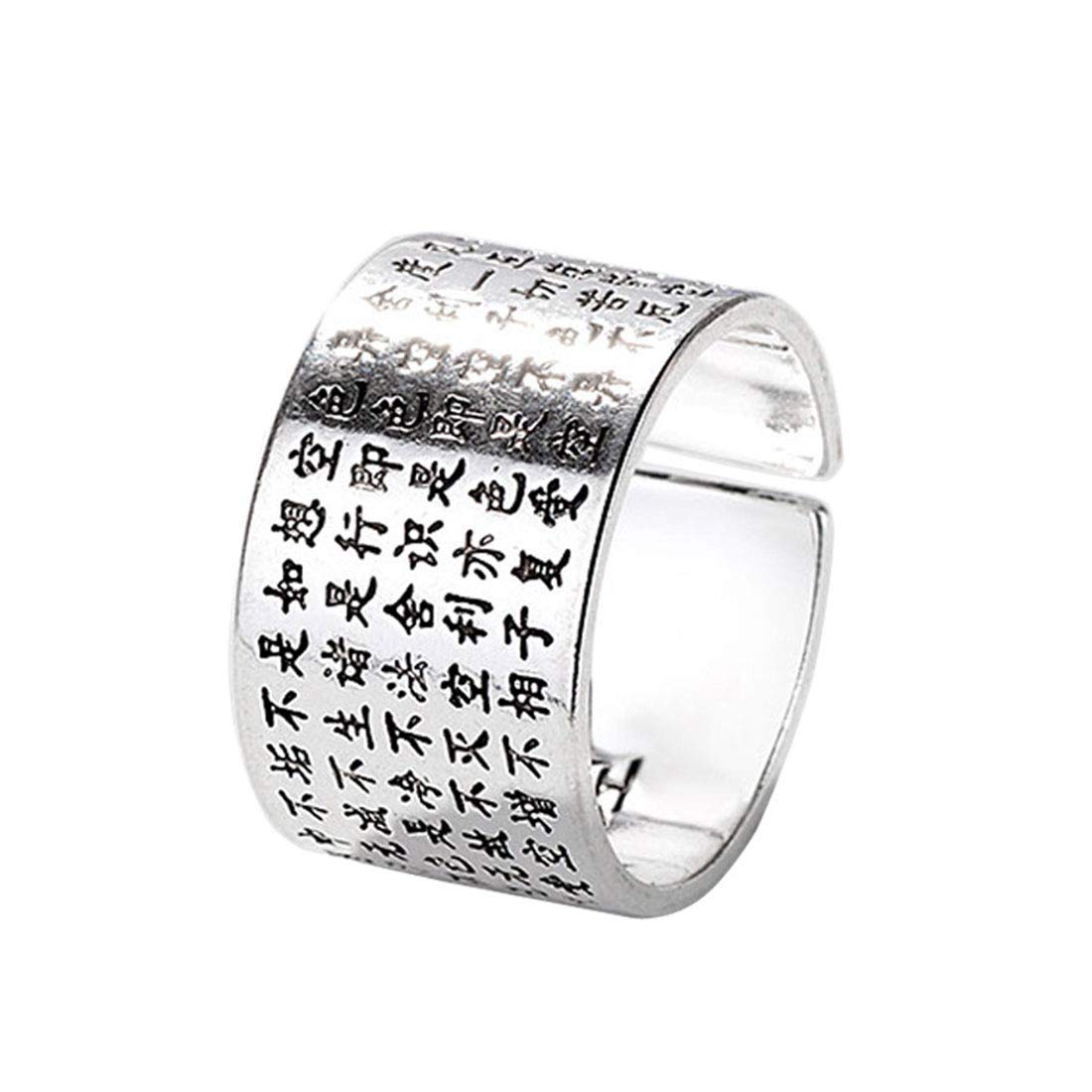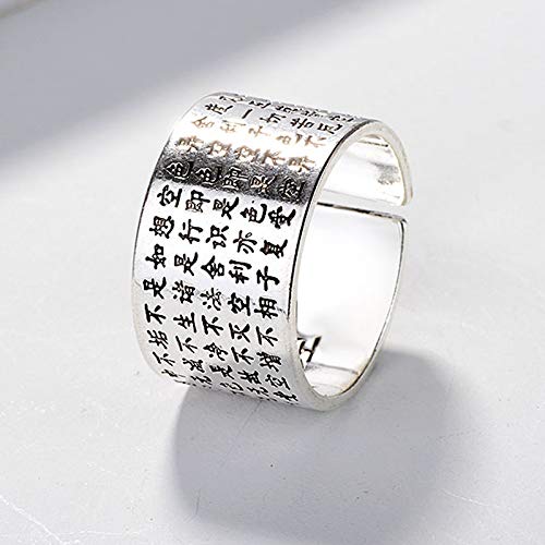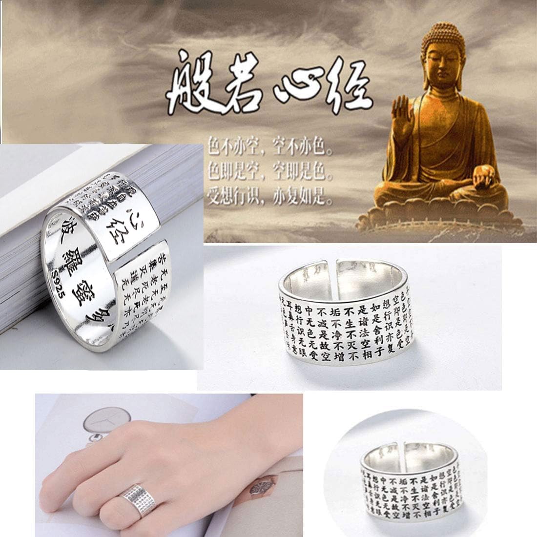 925純銀 般若心経リング|仏教マントラ刻印のスピリチュアル指輪
