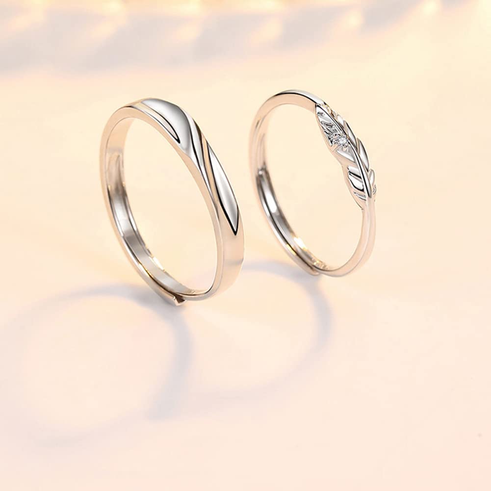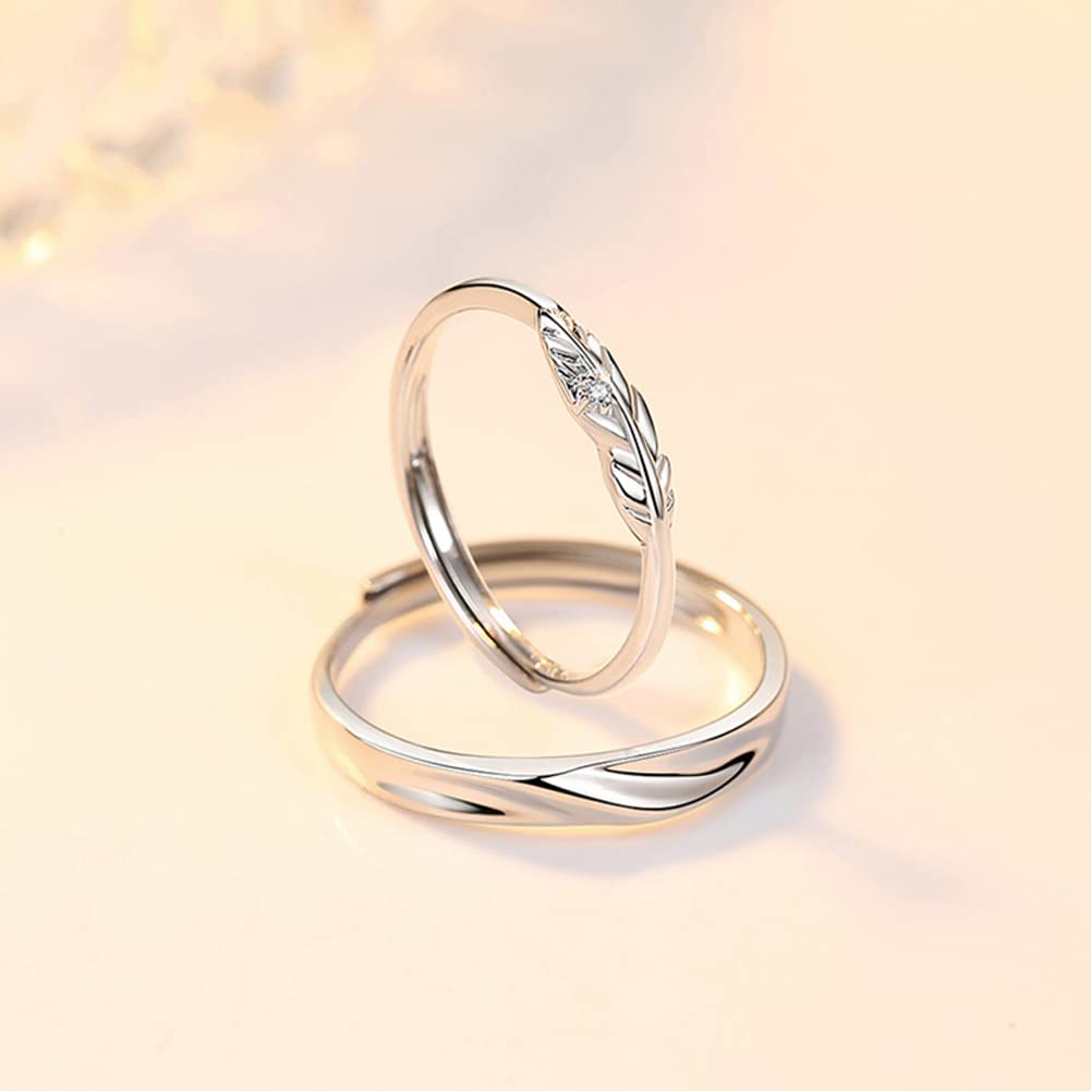 Rockyu 指輪 カップル ペアリング メンズ レディース シルバー925 羽モチーフ ジルコニア 調整可能 純銀製 リング