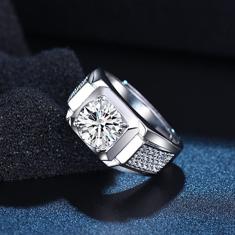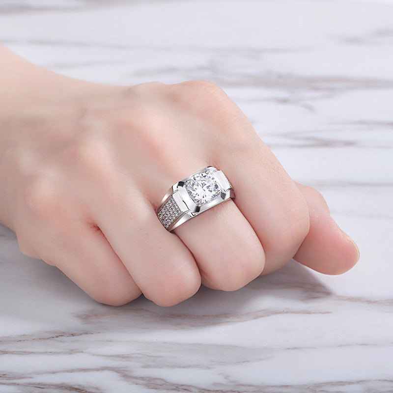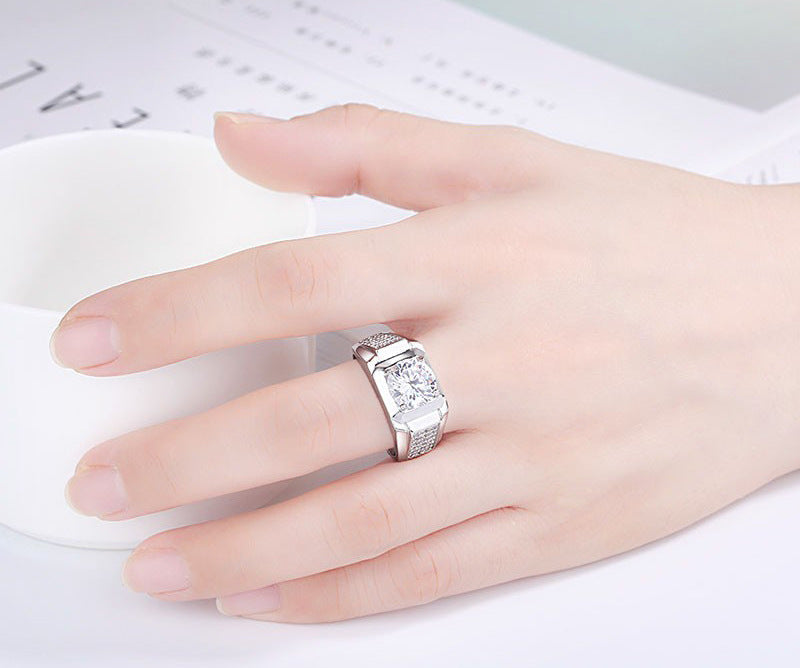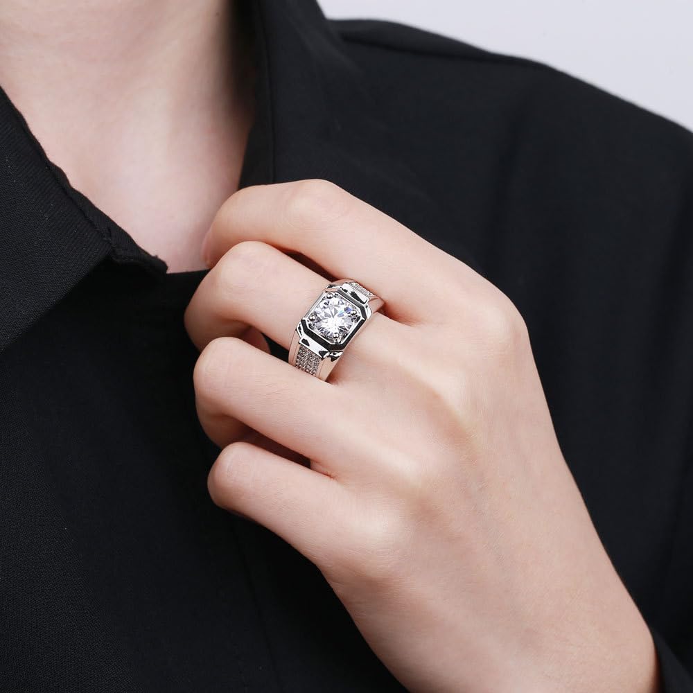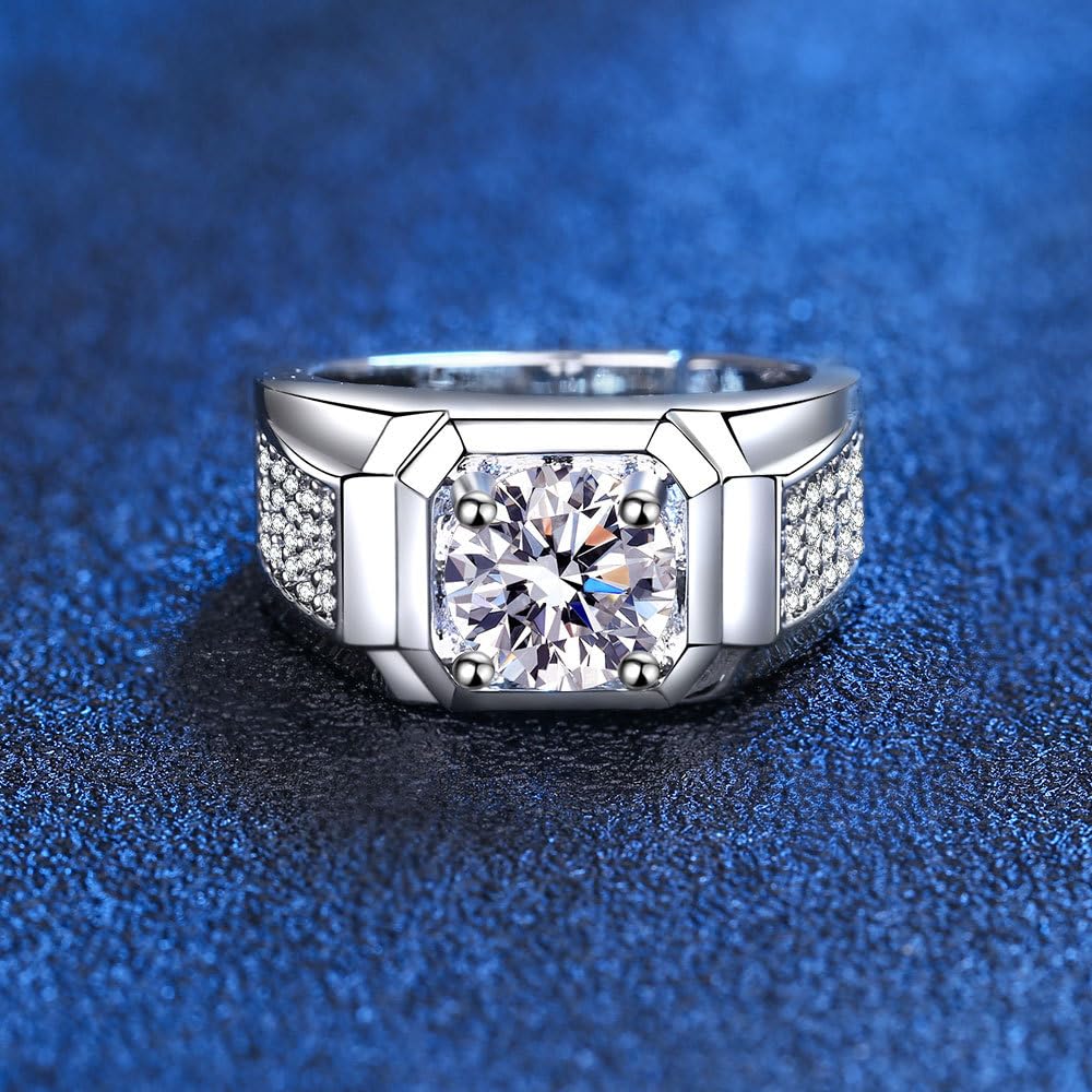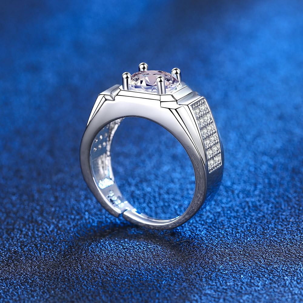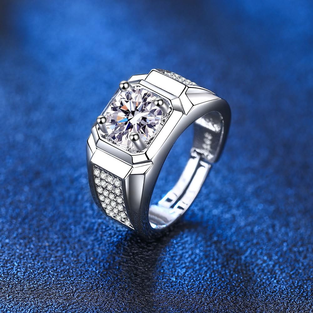 Rockyu メンズリング 大粒ジルコニア シルバー調 フリーサイズ 光沢仕上げ
