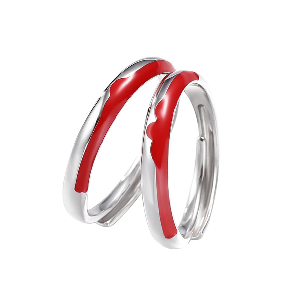Rockyu の血色エナメルデザイン・ペアリングは、恋人や夫婦の絆を指先に宿すシンプルで洗練されたデザインのカップルリングです。シルバー925をベースに、鮮やかな赤いエナメルをあしらったラインがアクセントとなり、二人の強い絆と情熱を象徴します。