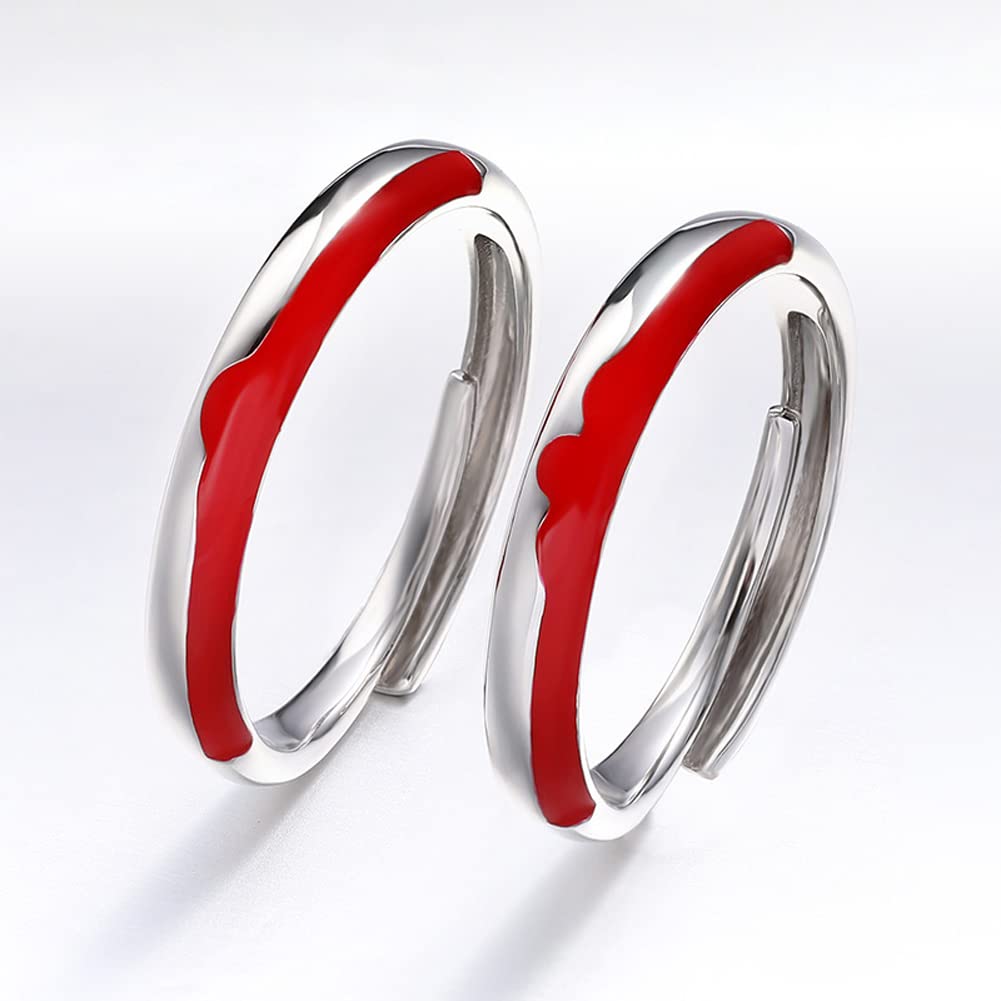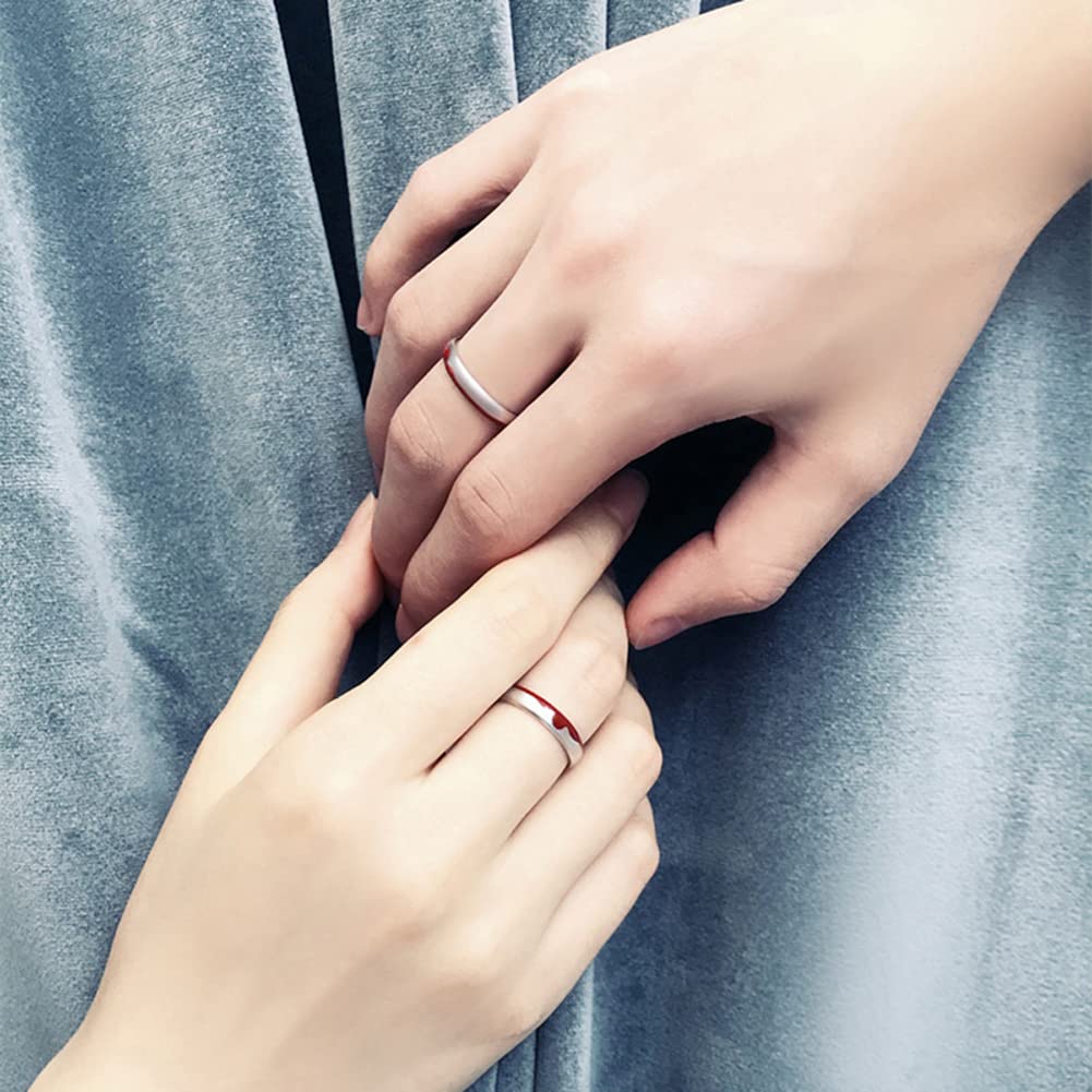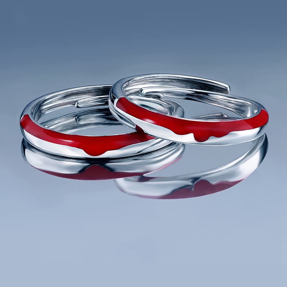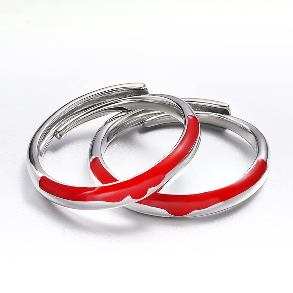 Rockyu ペアリング カップルリング 2個セット メンズ レディース シルバー925 純銀 血色エナメル サイズ調整可能