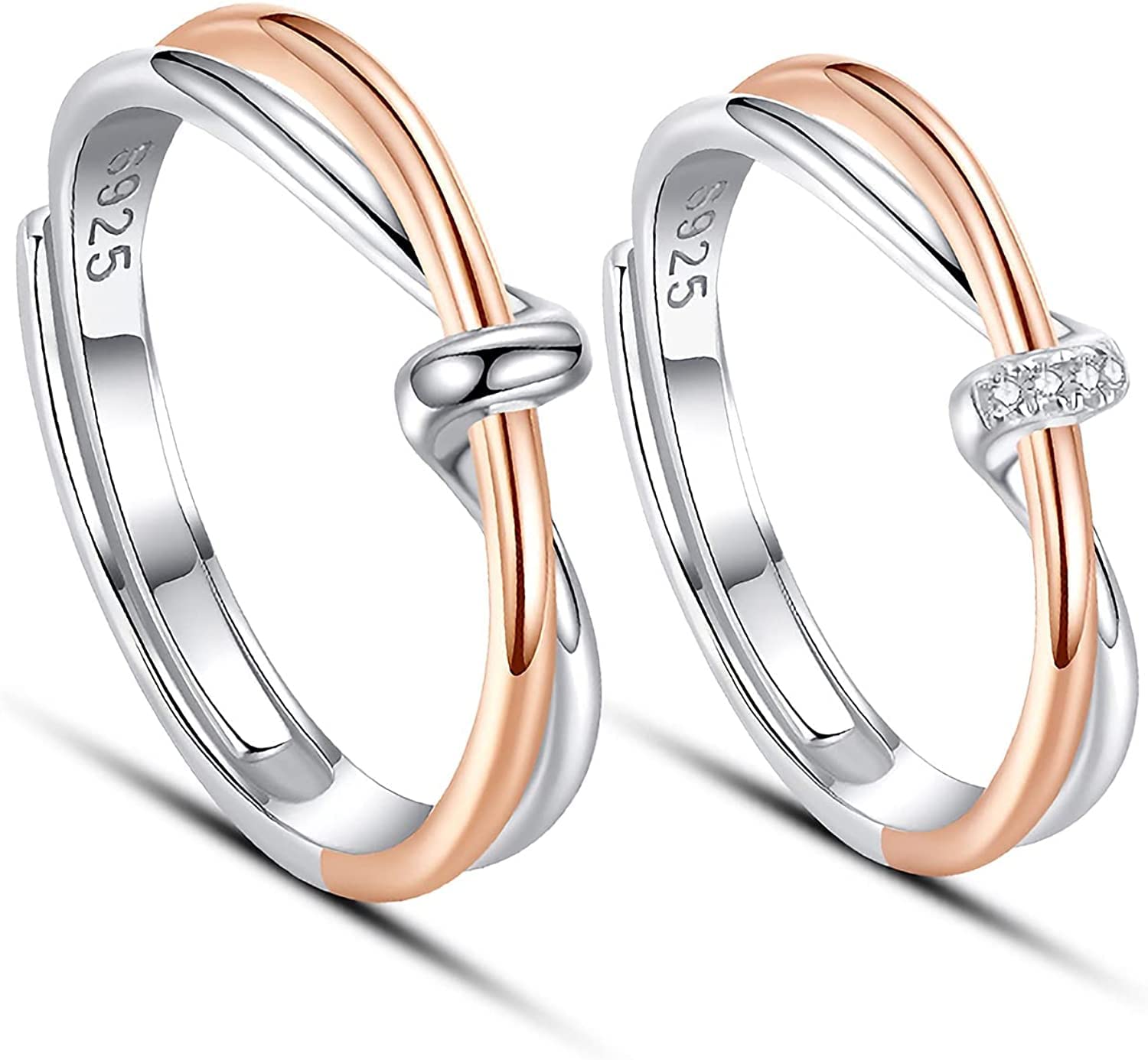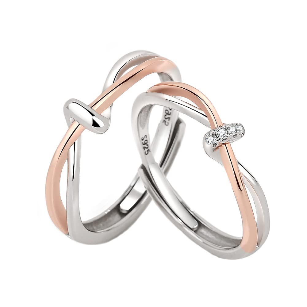 Rockyu 結びデザイン ペアリング シルバー925 ピンクゴールド調 フリーサイズ