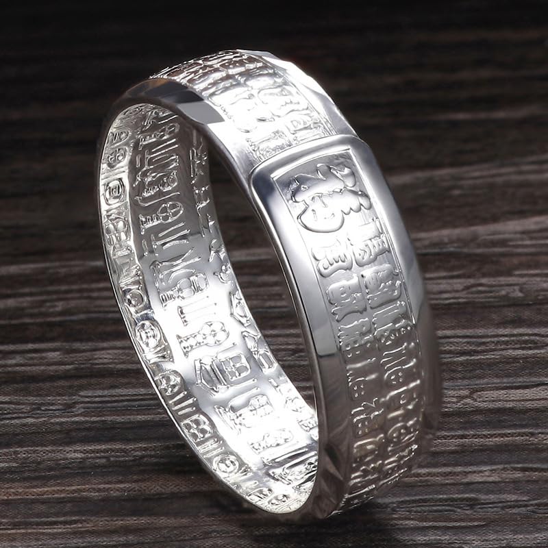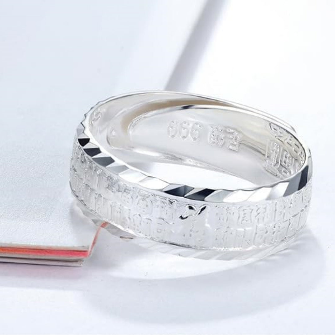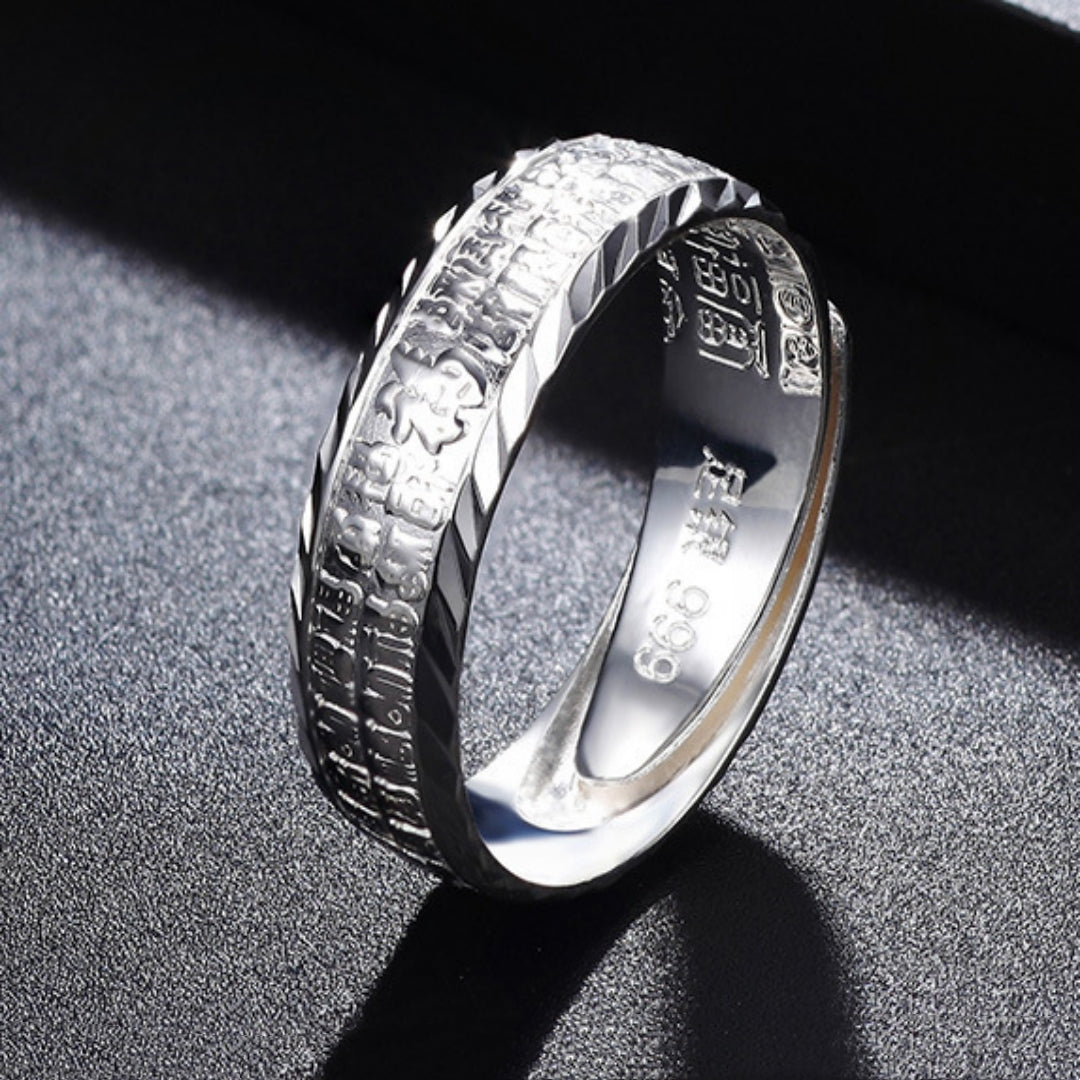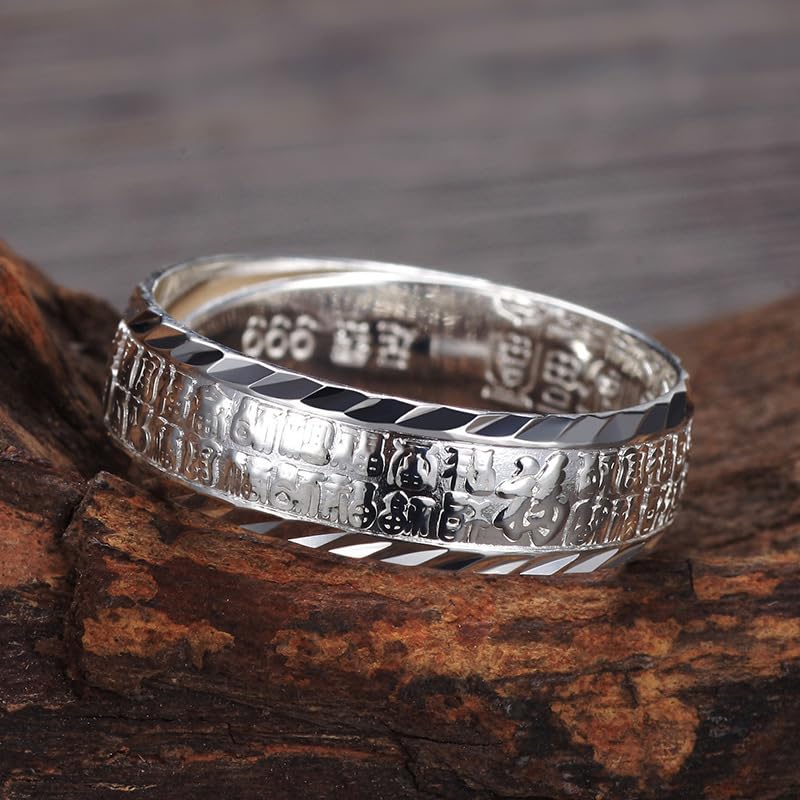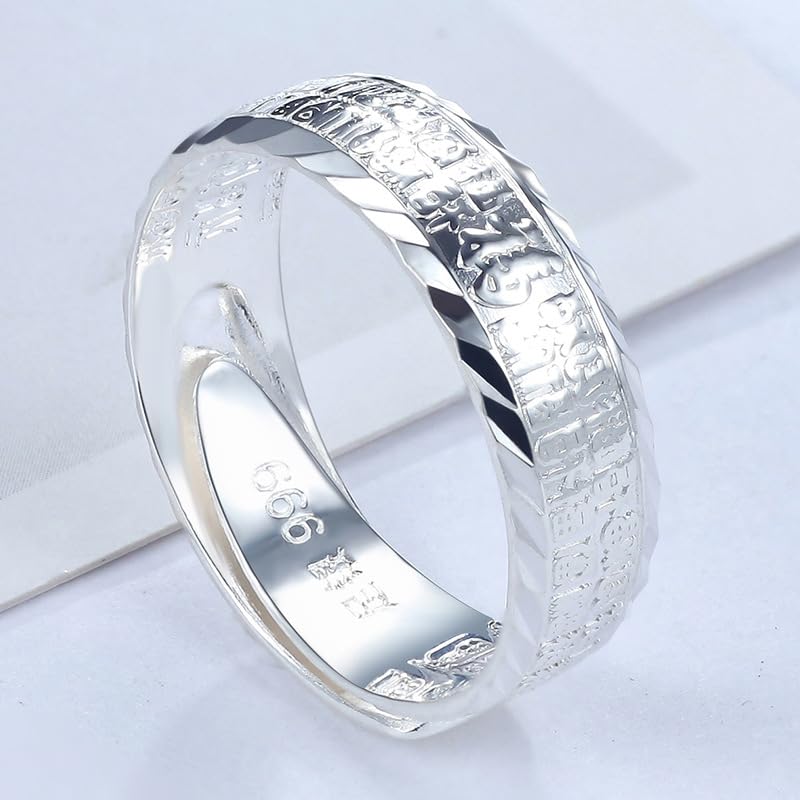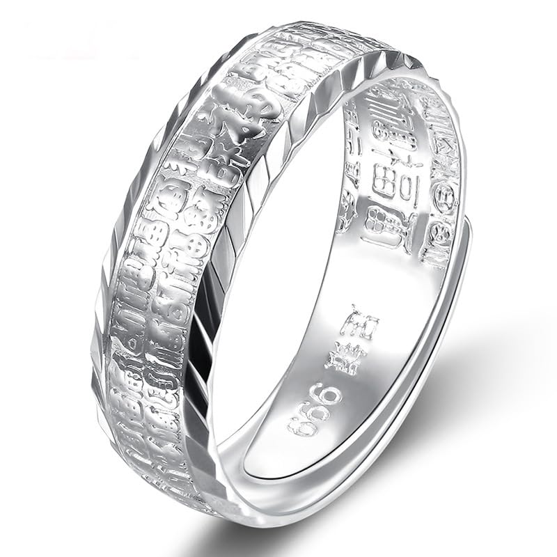 Rockyu 福字刻印 メンズリング シルバー999 フリーサイズ 純銀製指輪