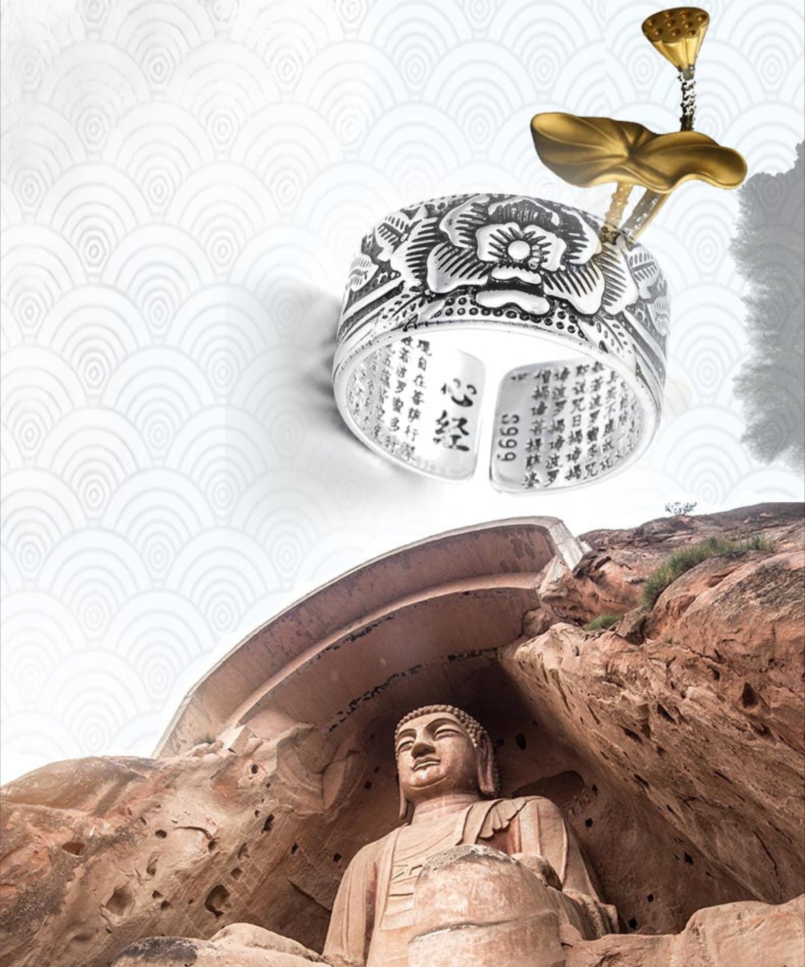 Rockyuから、蓮の花と経文が織りなすスピリチュアルなリングが登場。中心には気品ある蓮の花が浮かび上がり、内側には般若心経がびっしりと刻印された神聖なデザイン。仏教の美と意味を詰め込んだ一本は、ただのアクセサリーにとどまらず、日常を穏やかに整えるお守りのような存在感を放ちます。