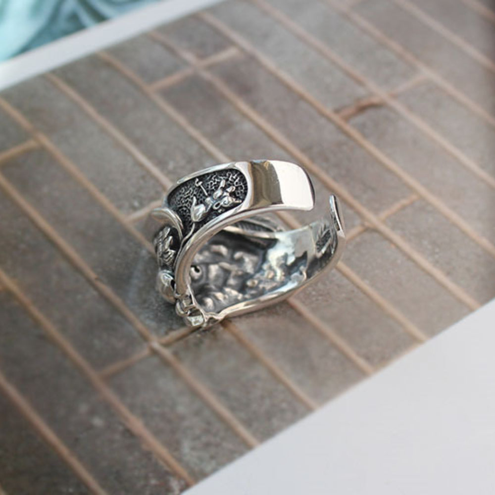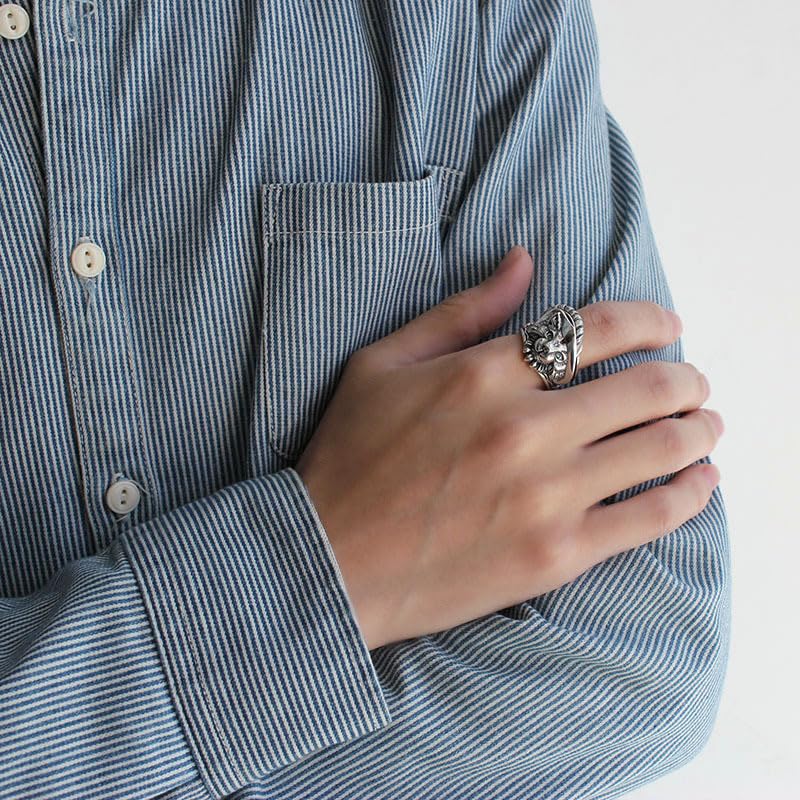 Rockyuから登場したこの猫リングは、ただのアクセサリーじゃありません。シルバーの深みある輝きに、まるで森の奥からこちらを見つめるようなグリーンジルコニアの瞳。猫の凛とした表情と、しっかりした太めのデザインが、手元に圧倒的な存在感を与えます。男女問わず身につけられるユニセックス仕様で、フリーサイズだから気軽にフィット。レトロでありながら、都会的なエッジを効かせたこのリングは、日常のカジュアルにも特別な日のコーデにもマッチ。Rockyuの猫があなたの指元で静かに、でも確かに主張します。