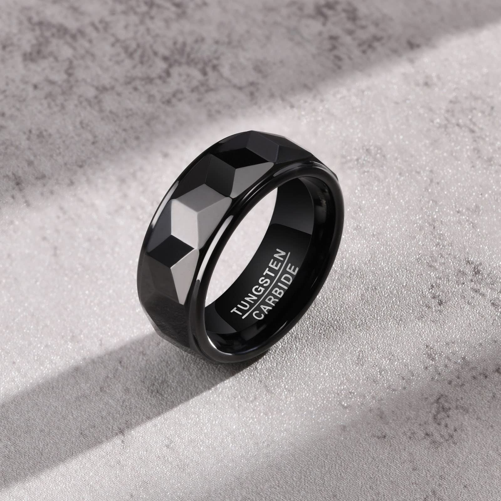 Rockyuが贈るこのタングステンカーバイド製の多面カットリングは、まさに「硬派」を体現したアクセサリー。直線的な面が織りなすシャープな輝きが、手元に洗練された存在感をもたらします。