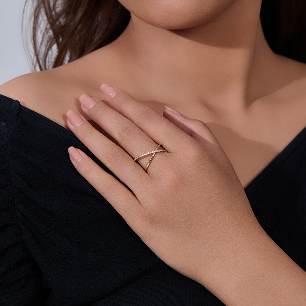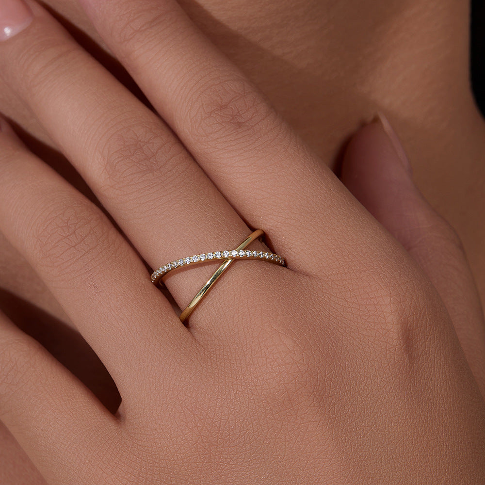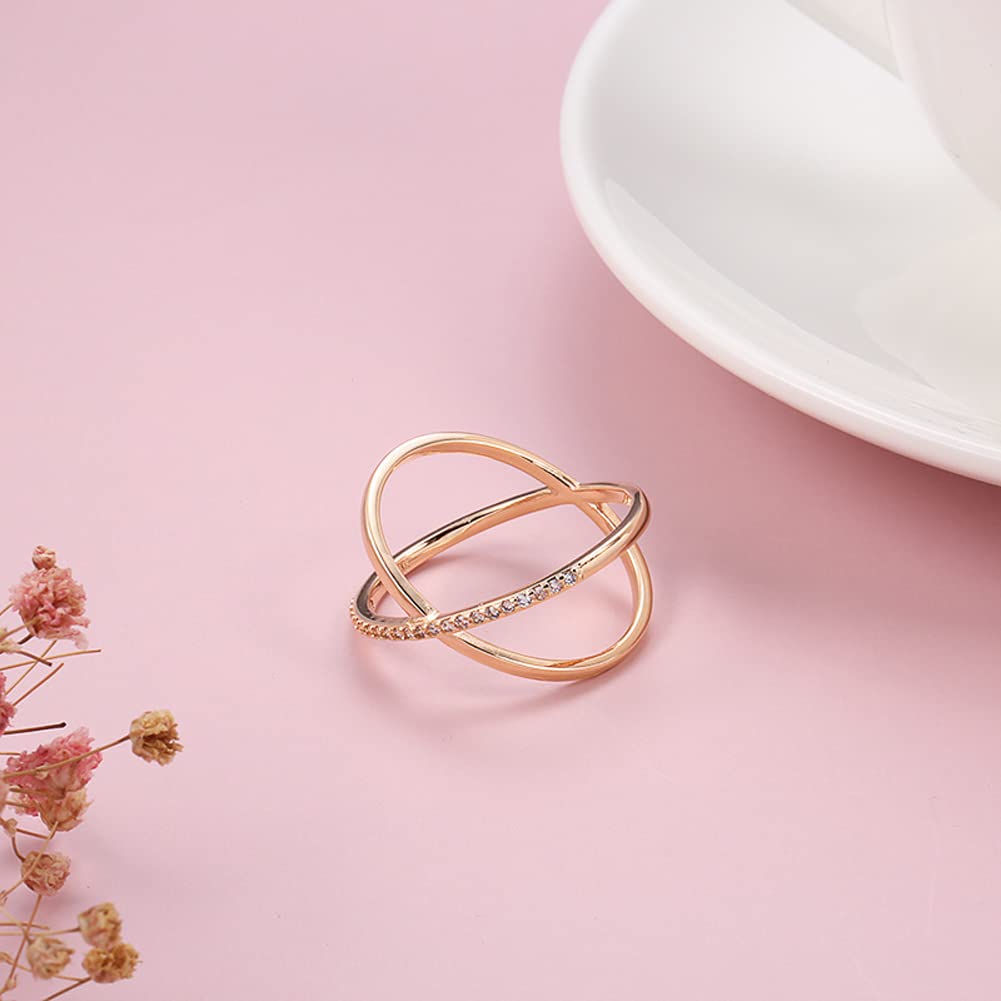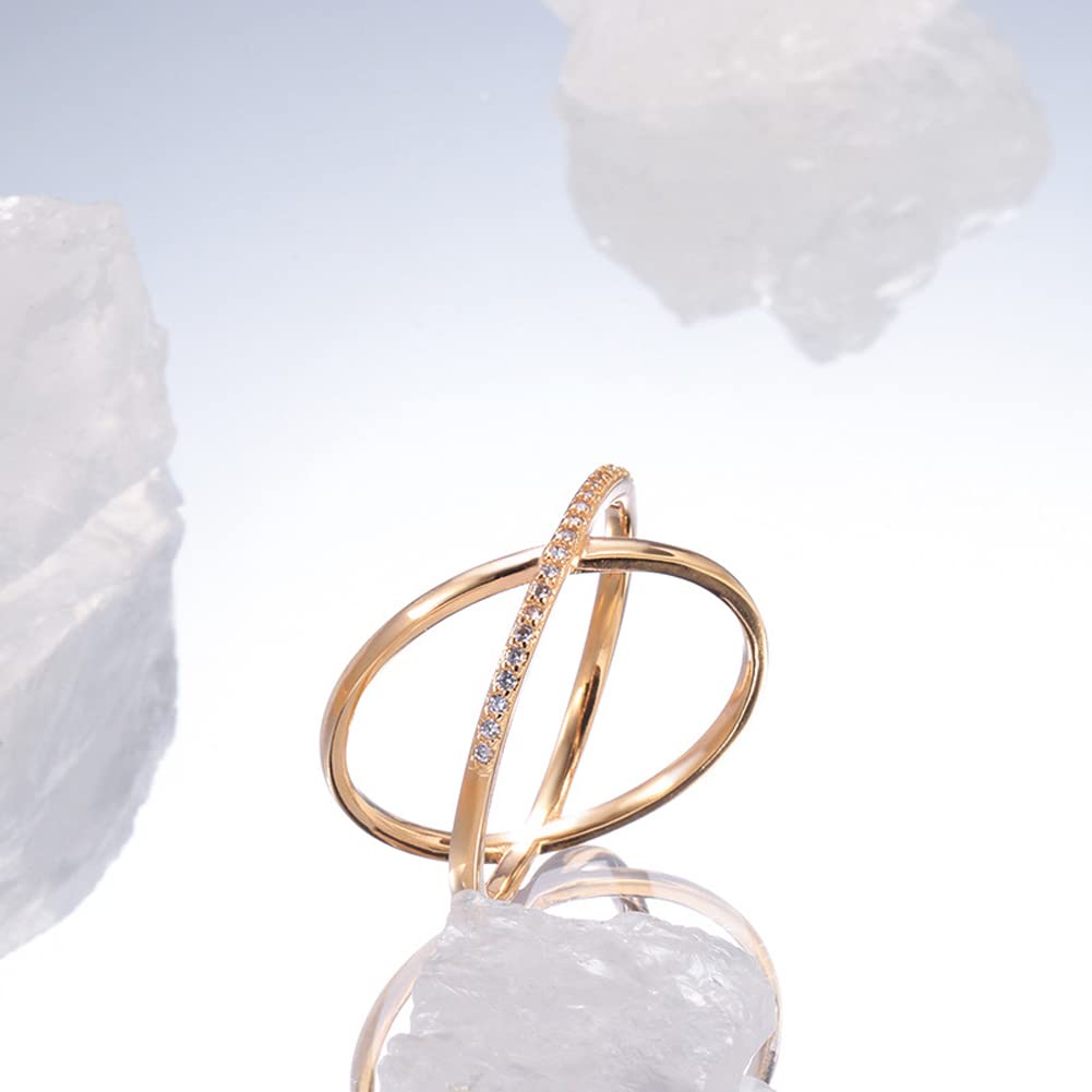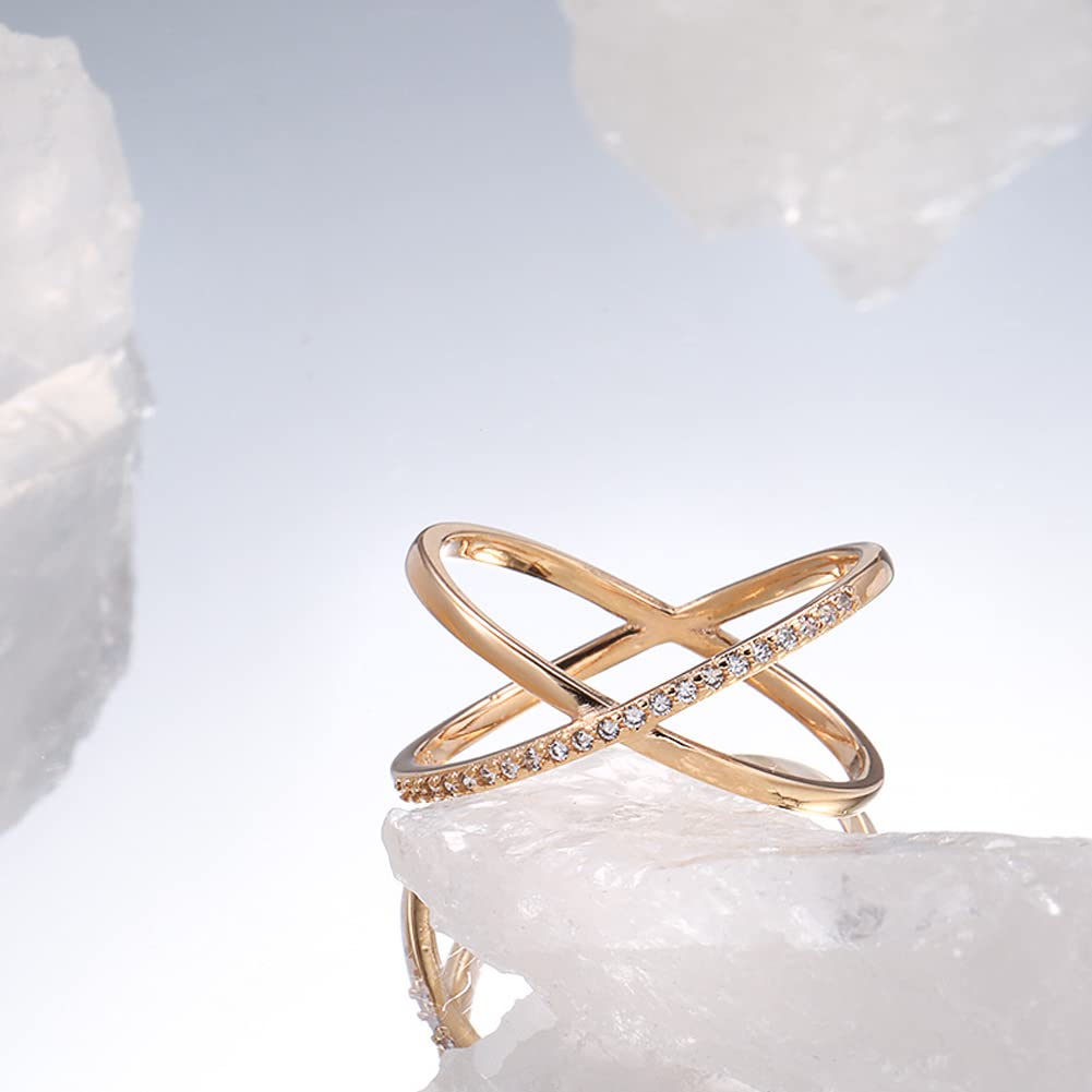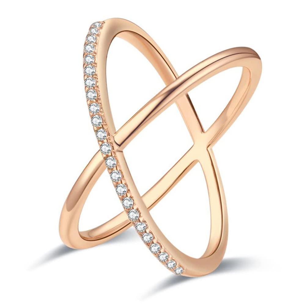 Rockyu レディースリング ステンレス クロスデザイン ジルコニア入り 金属アレルギー対応 おしゃれ指輪 パーティーギフト