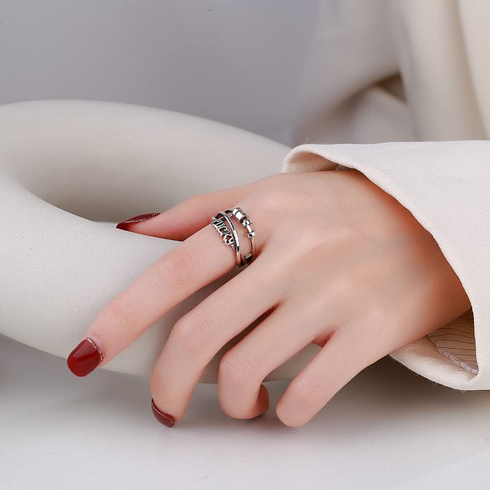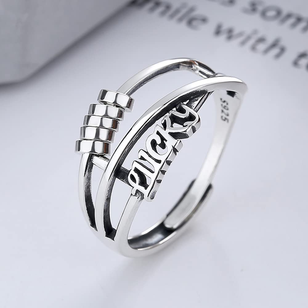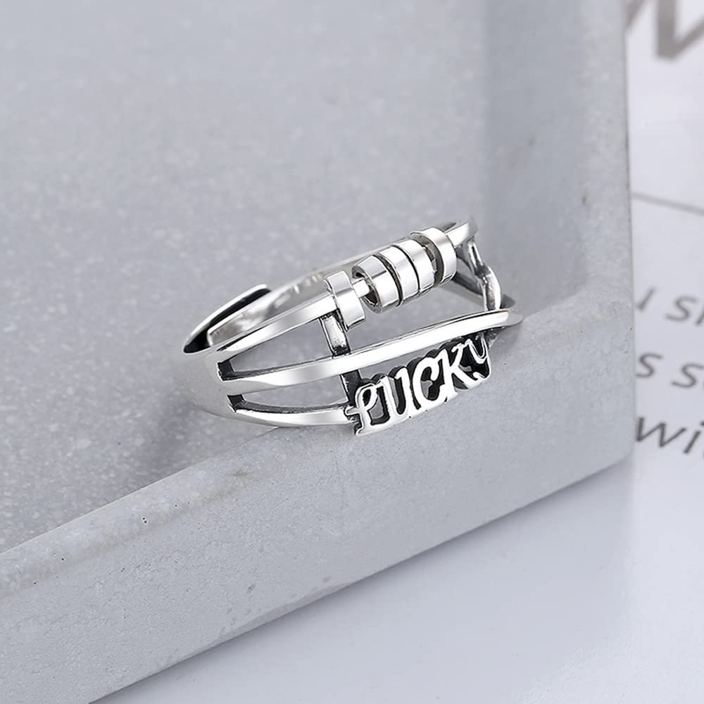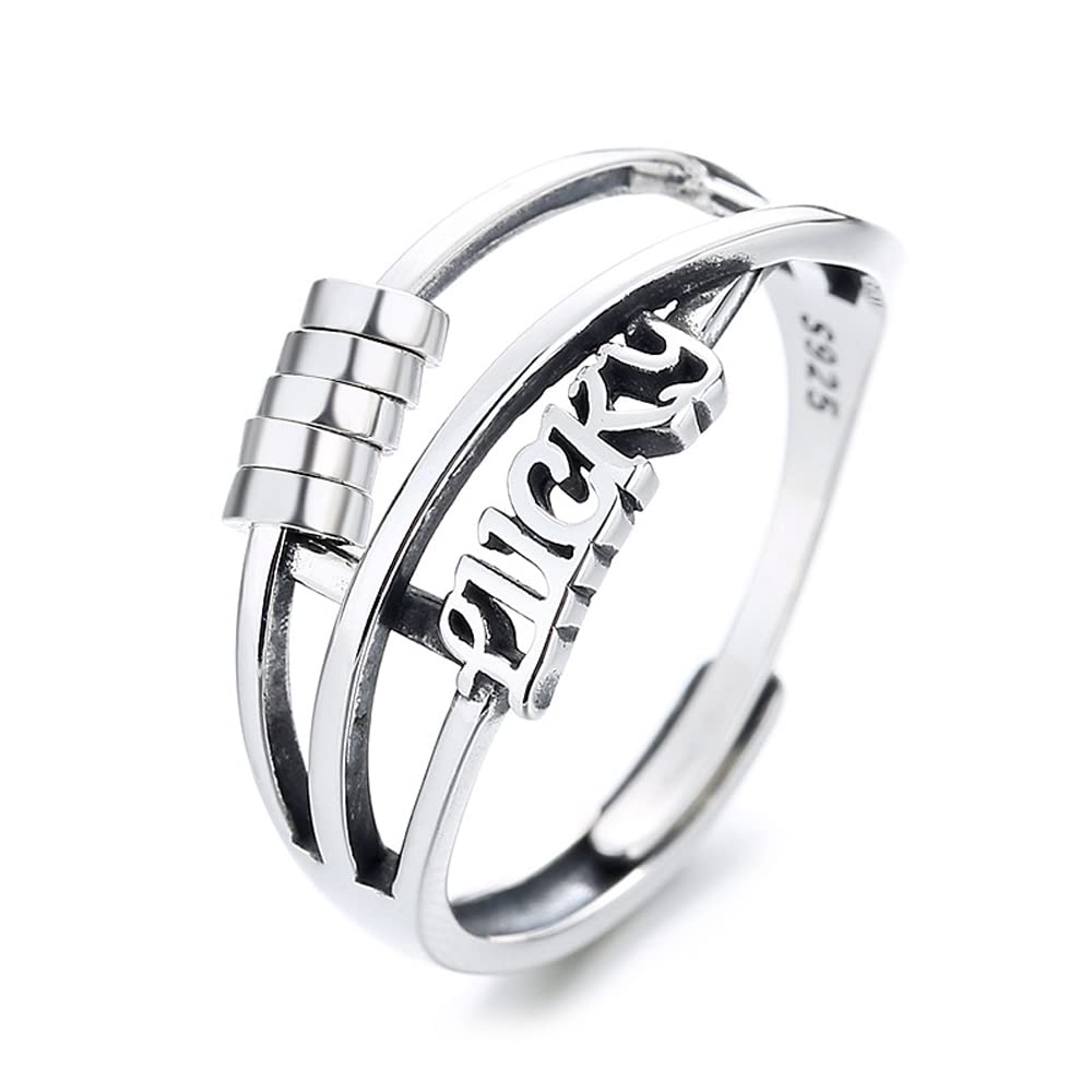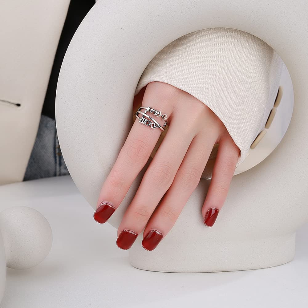 「ついてる私が、最強説。」——RockyuのLucky三連リングは、そんな気分を指先でアピールする洒落た一本。大胆に配置された「Lucky」の文字と、中継玉のようなアクセントが、遊び心たっぷりに手元を飾ります。
