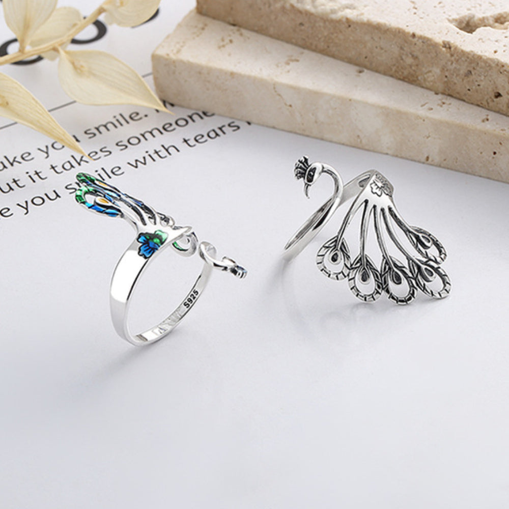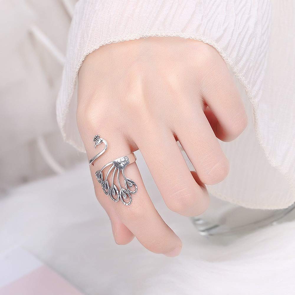 Rockyu 指輪 レディース フリーサイズ おしゃれ シルバー925 リング 可愛い 個性的 クジャク指輪物語 結婚指輪 婚約指輪 フリー サイズ調節可能 恋人 ファッション アクセサリー